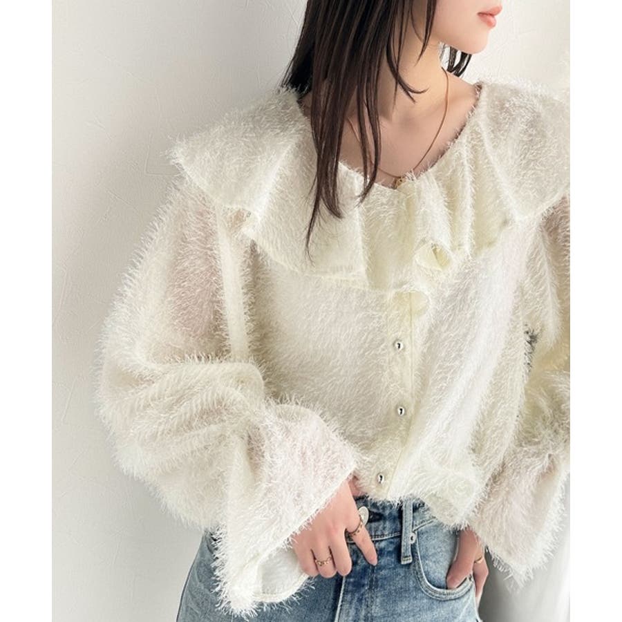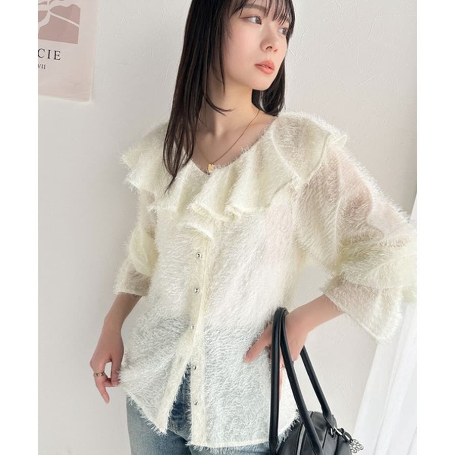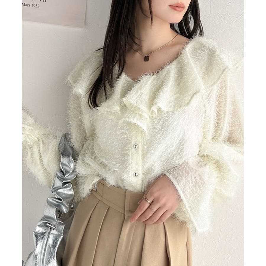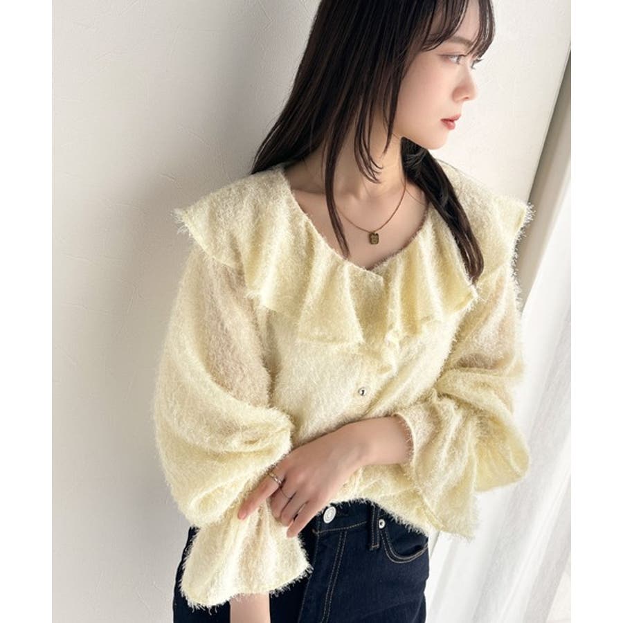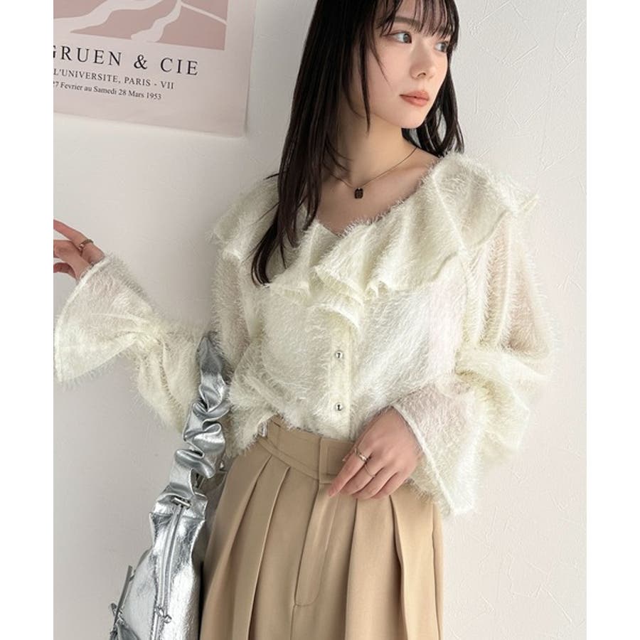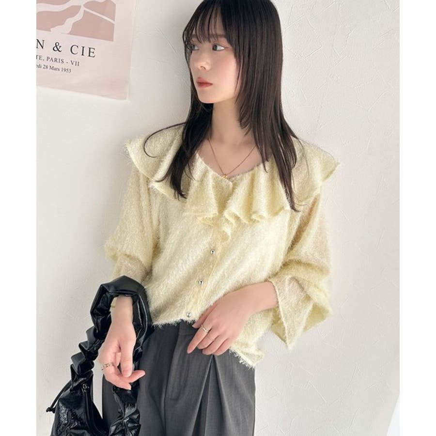 歩くたびにふわっと踊るラッフルカラーが愛らしいガーリーブラウス。