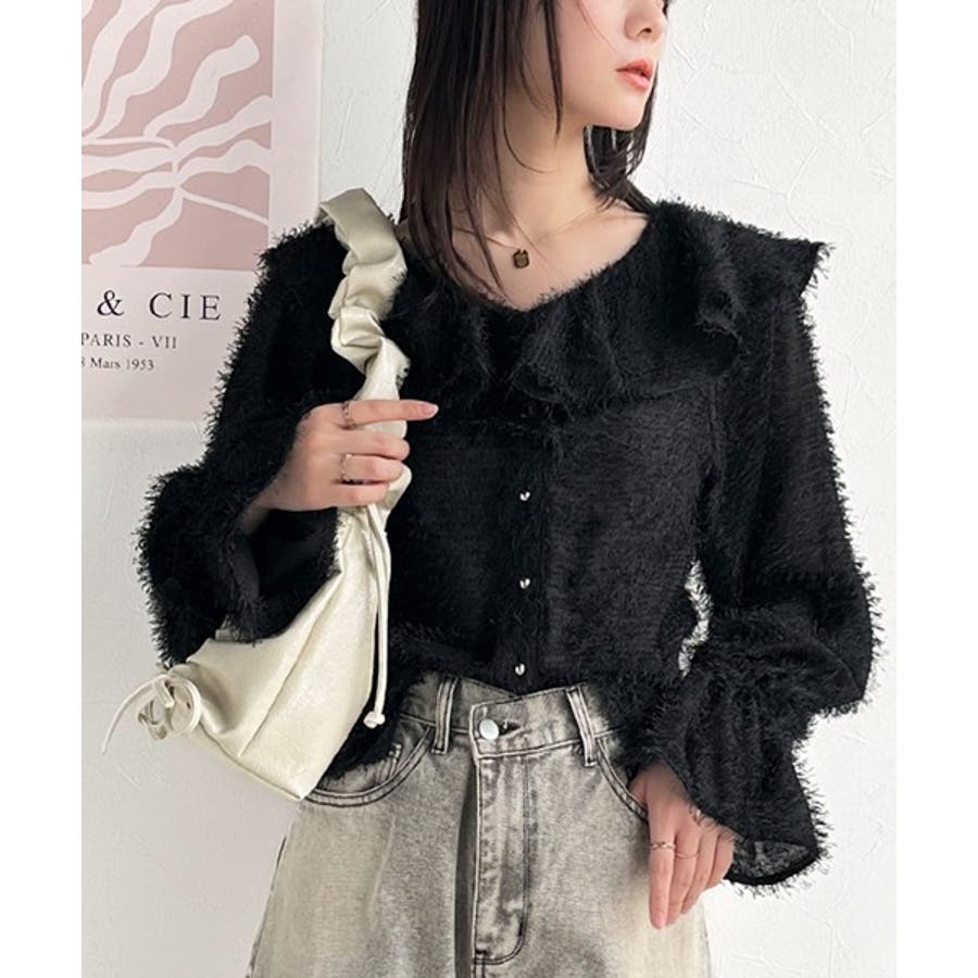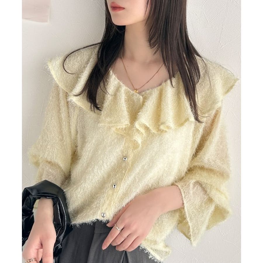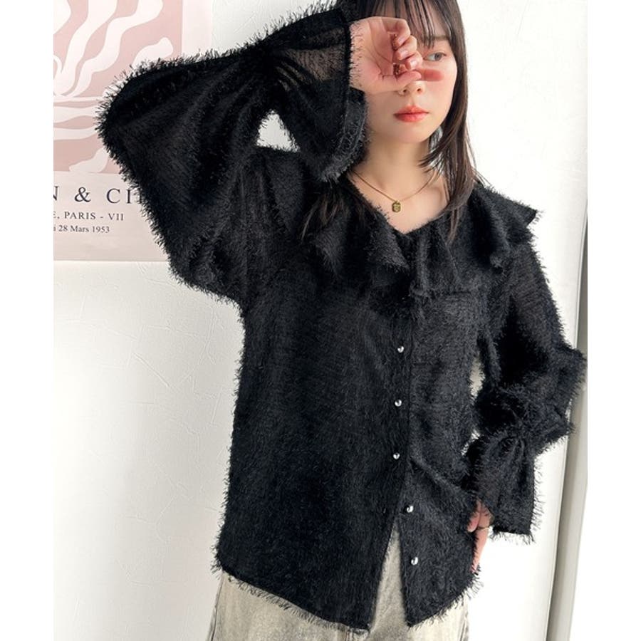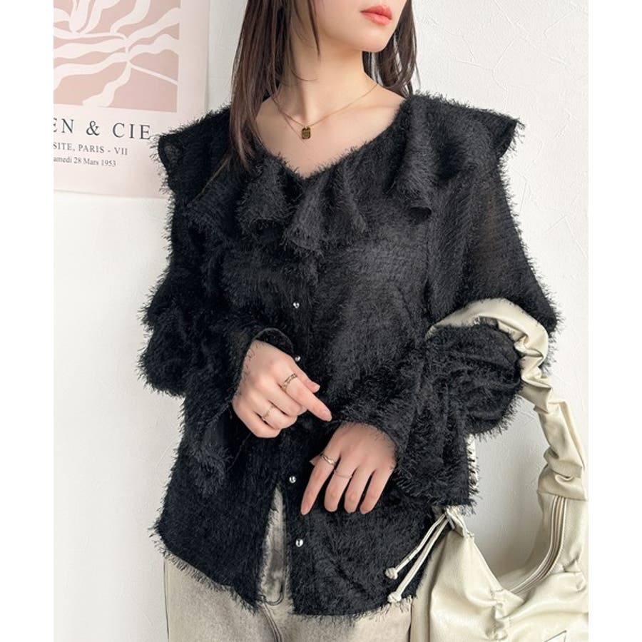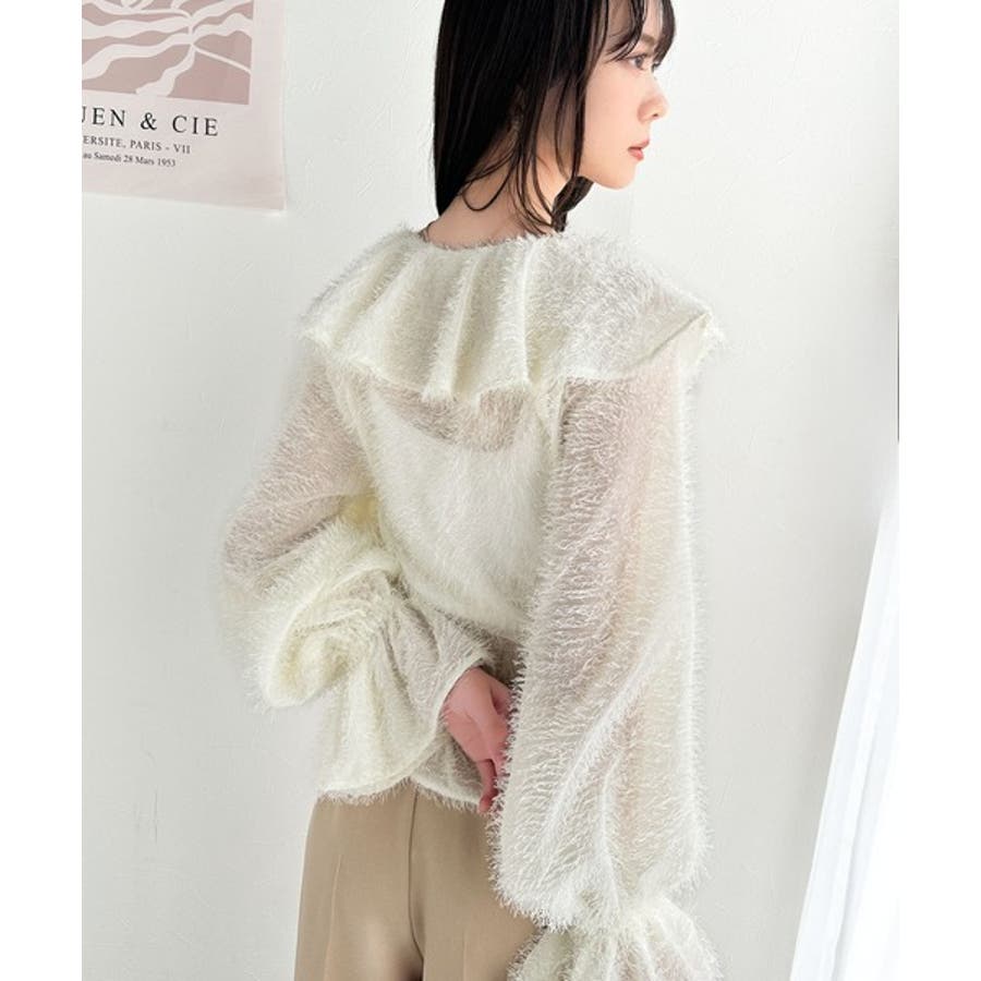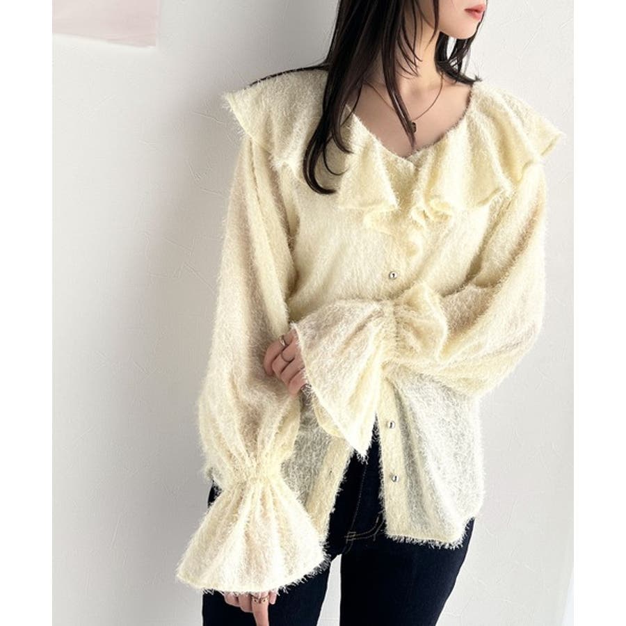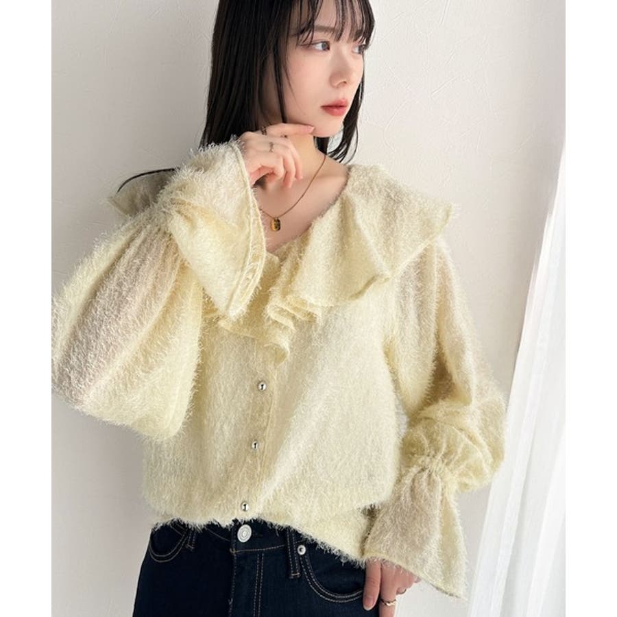 歩くたびにふわっと踊るラッフルカラーが愛らしいガーリーブラウス。