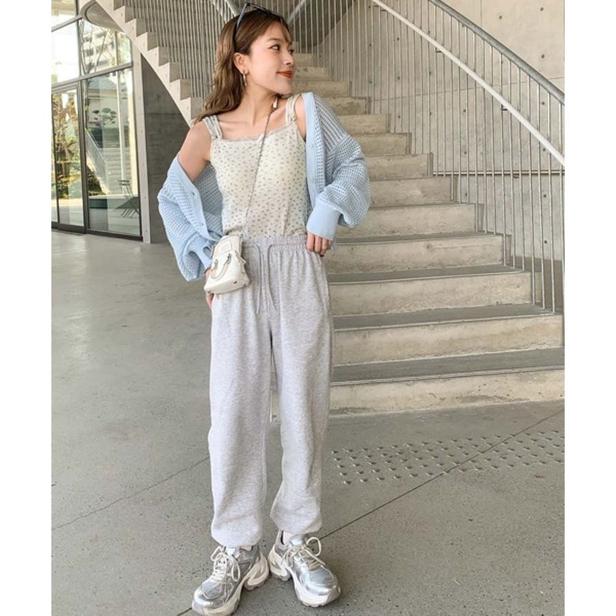 スウェットパンツを合わせれば、リラックス感あふれるカジュアルスタイルが完成!
