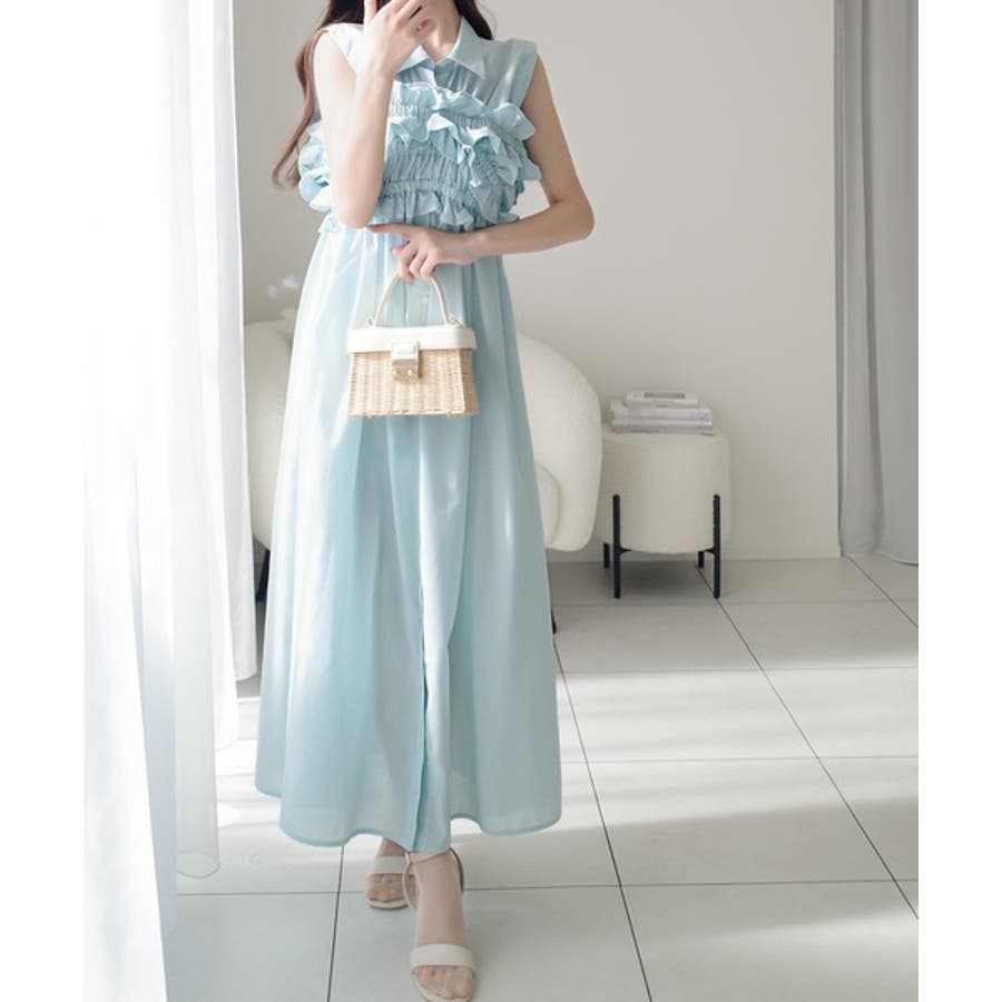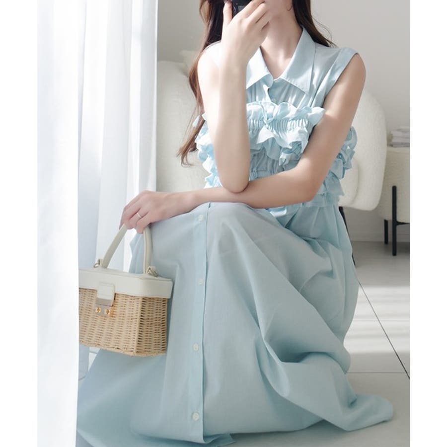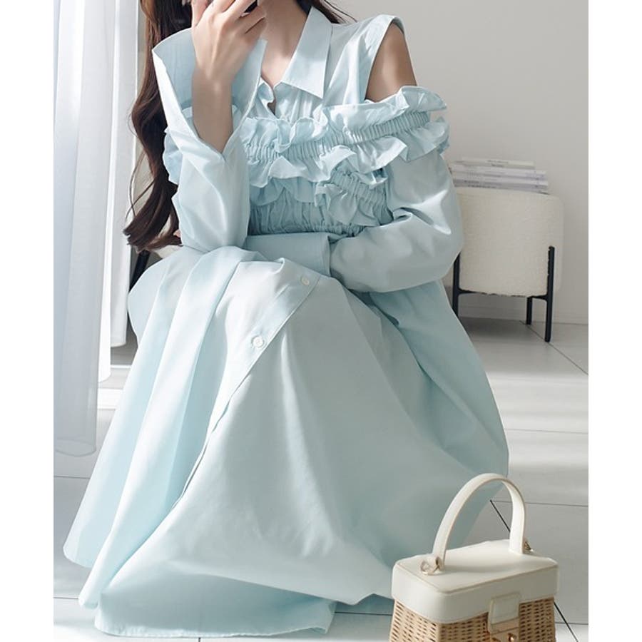 そこに、フリルとギャザーがフェミニンなビスチェをドッキングした、