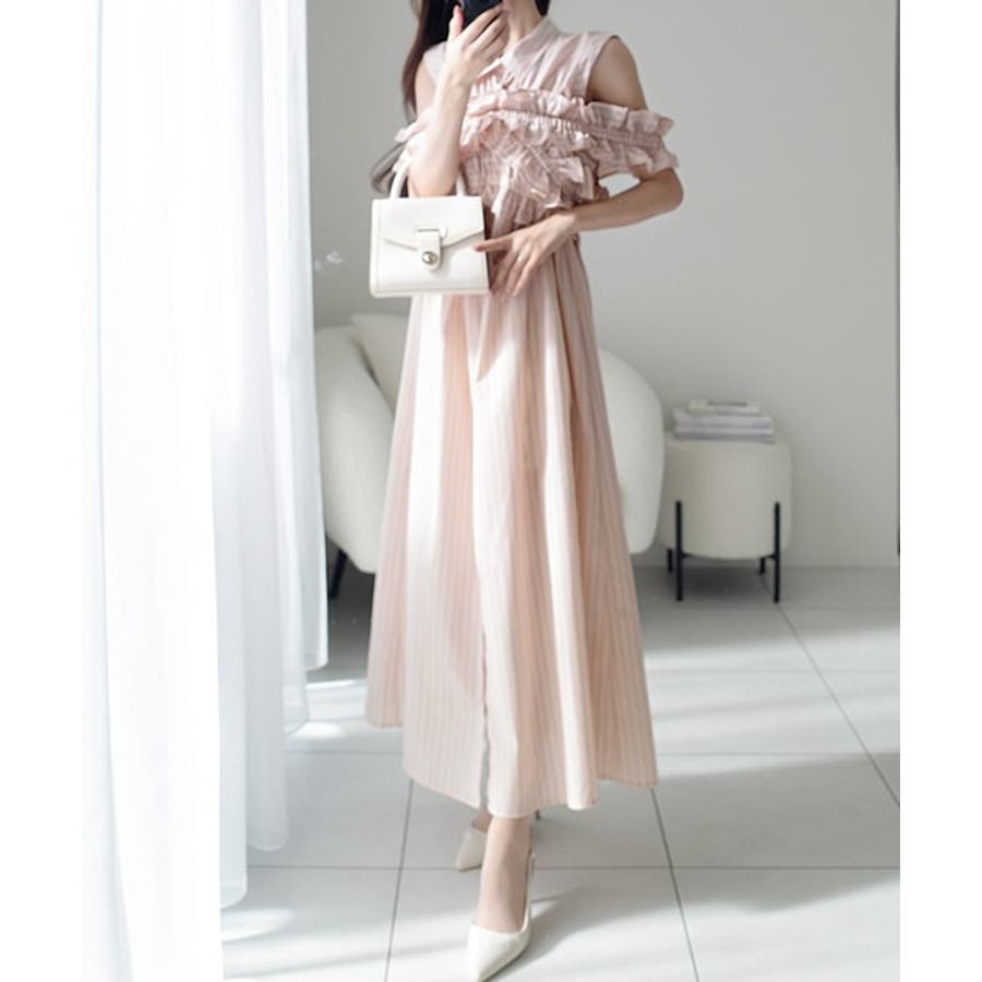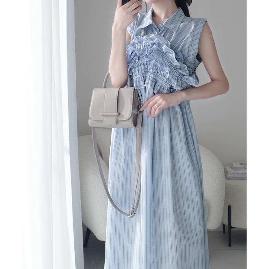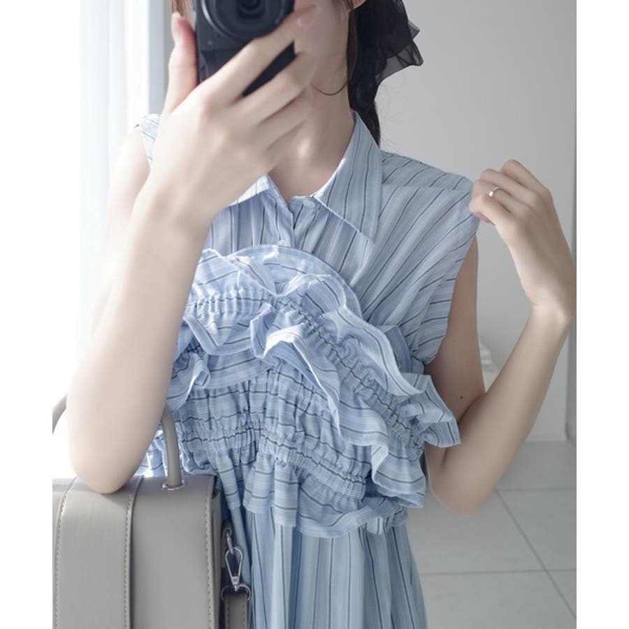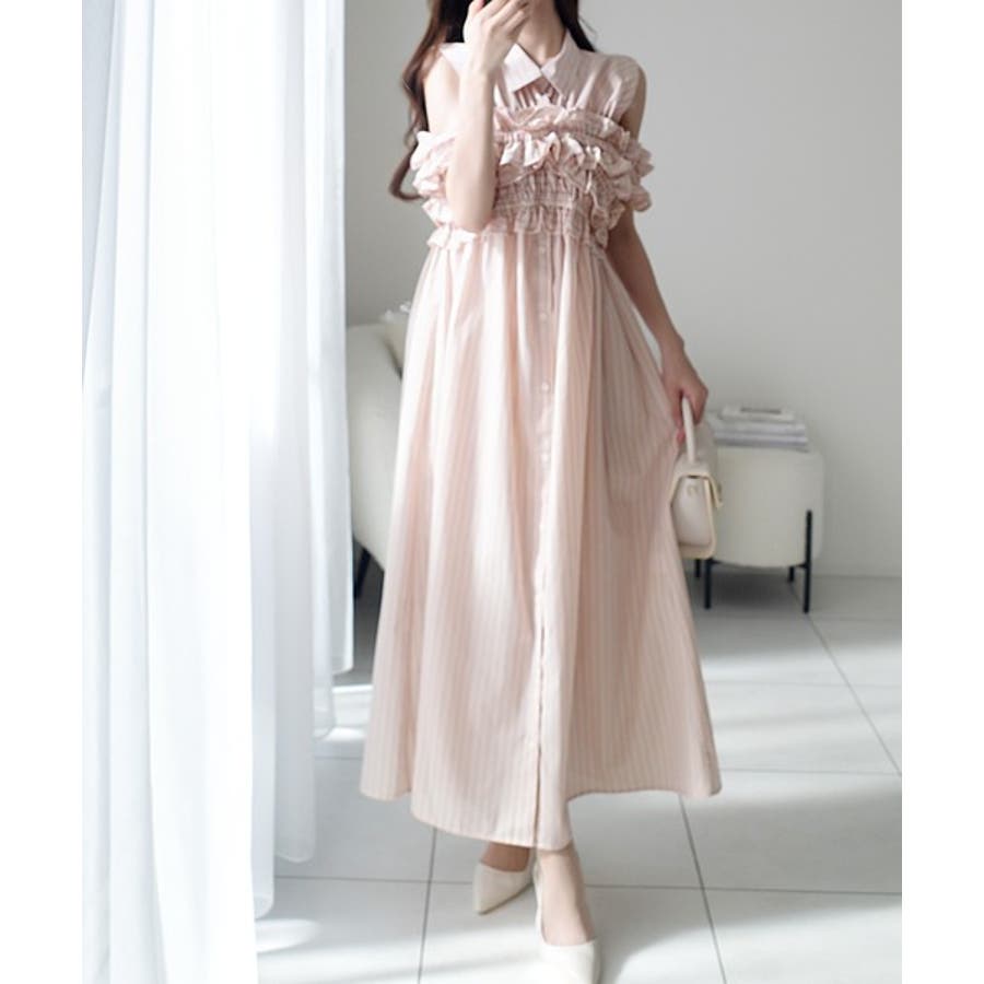 袖取外し可能で着こなし自在!マルチウェイビスチェドッキングストライプシャツワンピ…