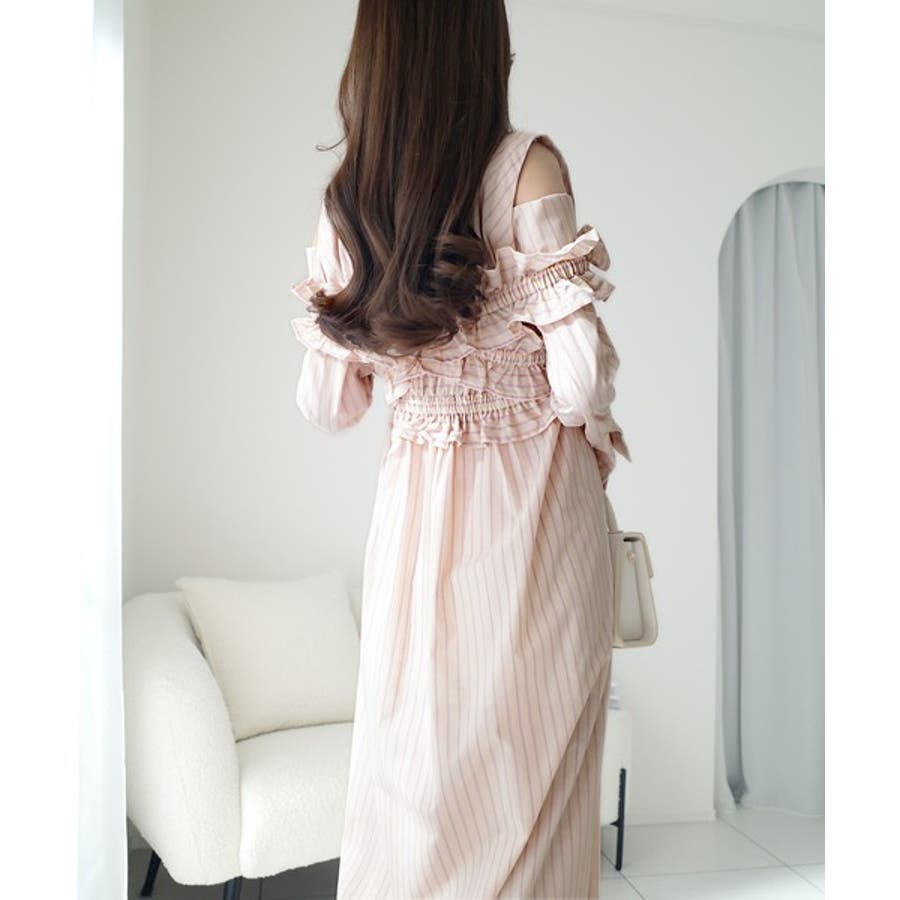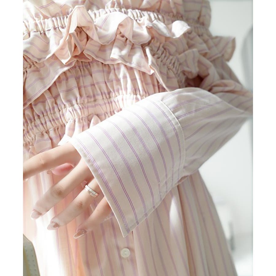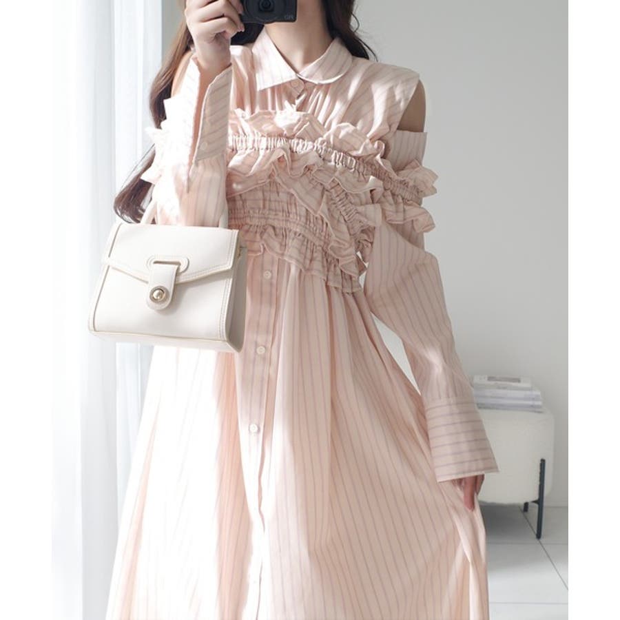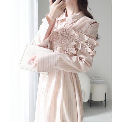 ベースは大人っぽいストライプ柄のシャツワンピース。