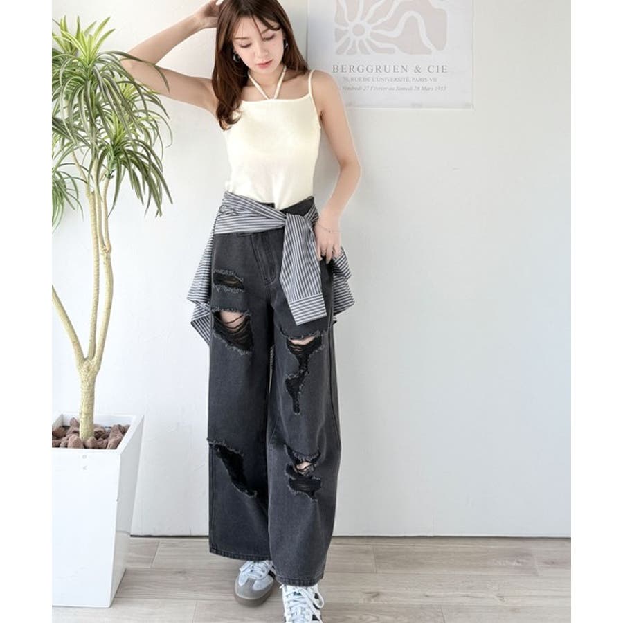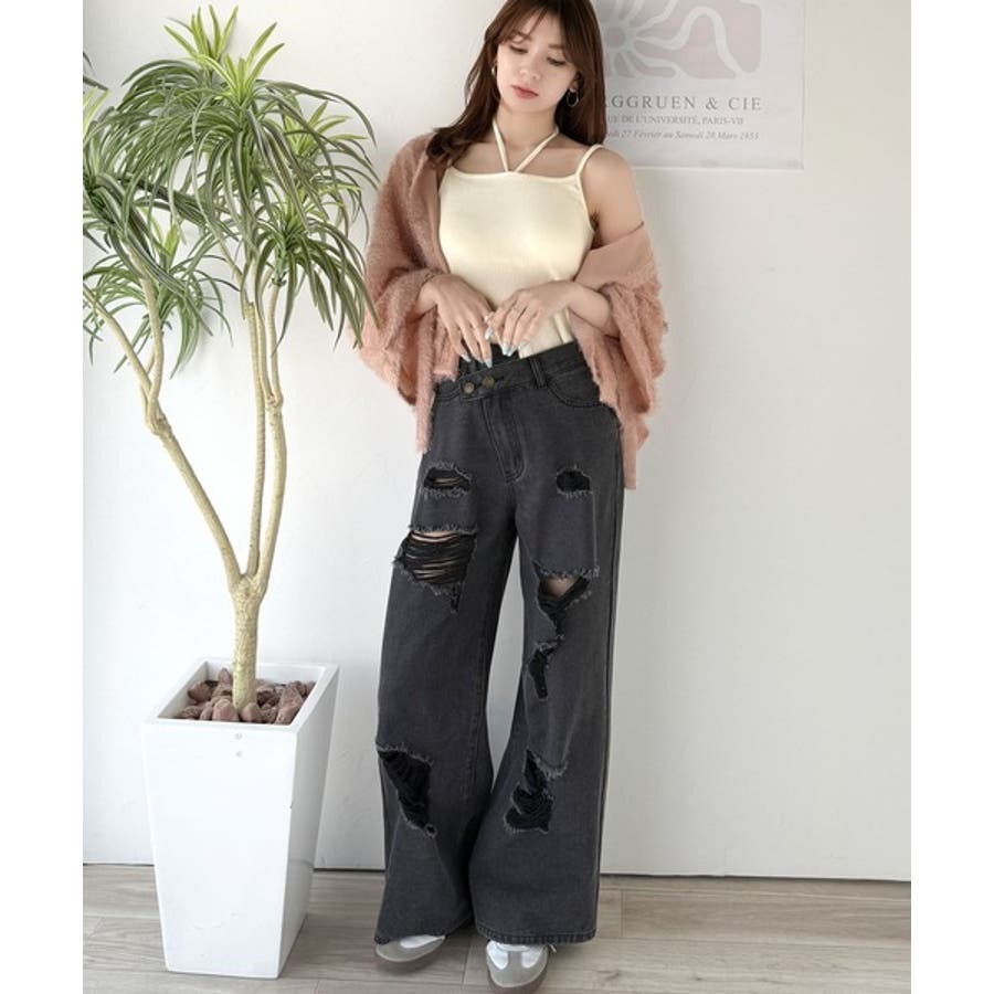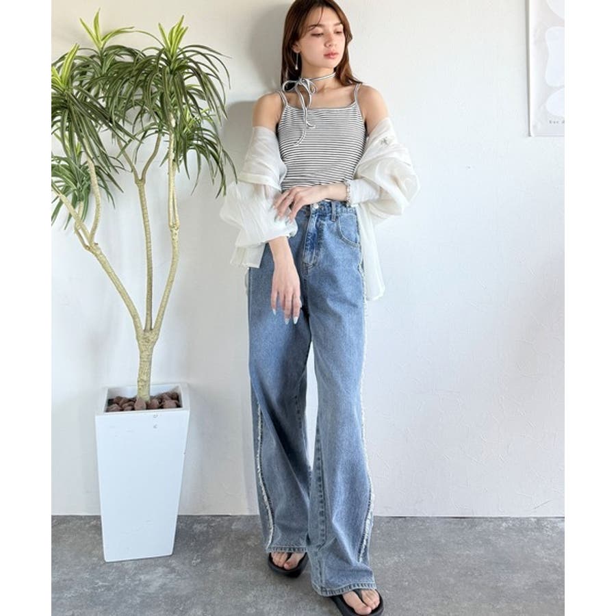 その日の気分に合わせてカーブデニムやフレアパンツを合わせてもOK◎