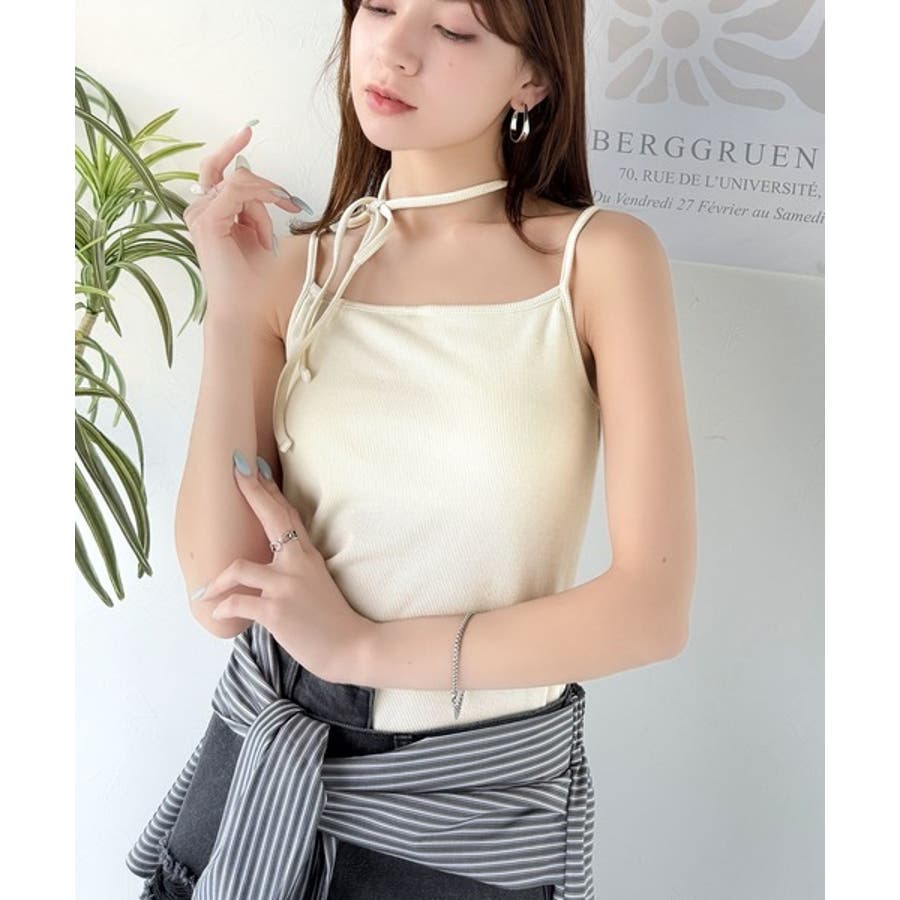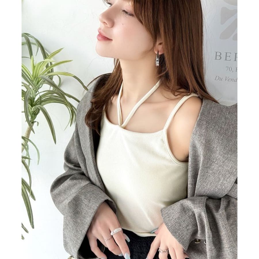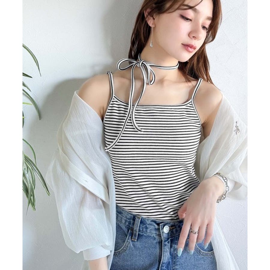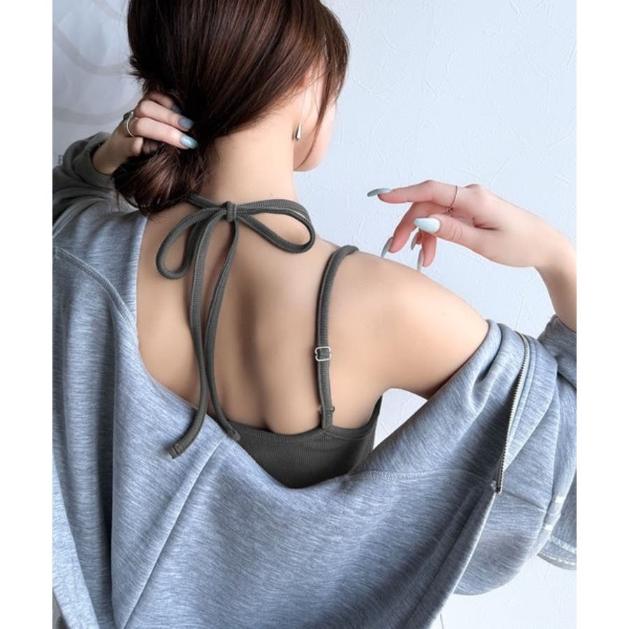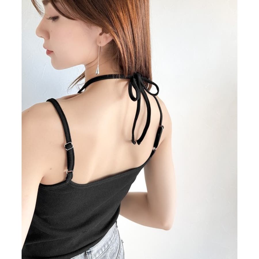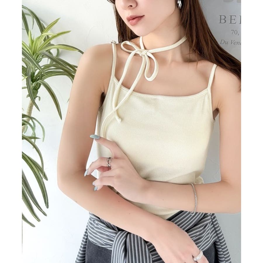 取り外し可能なホルターネック風リボンで、コーディネートを自由にアレンジできます。