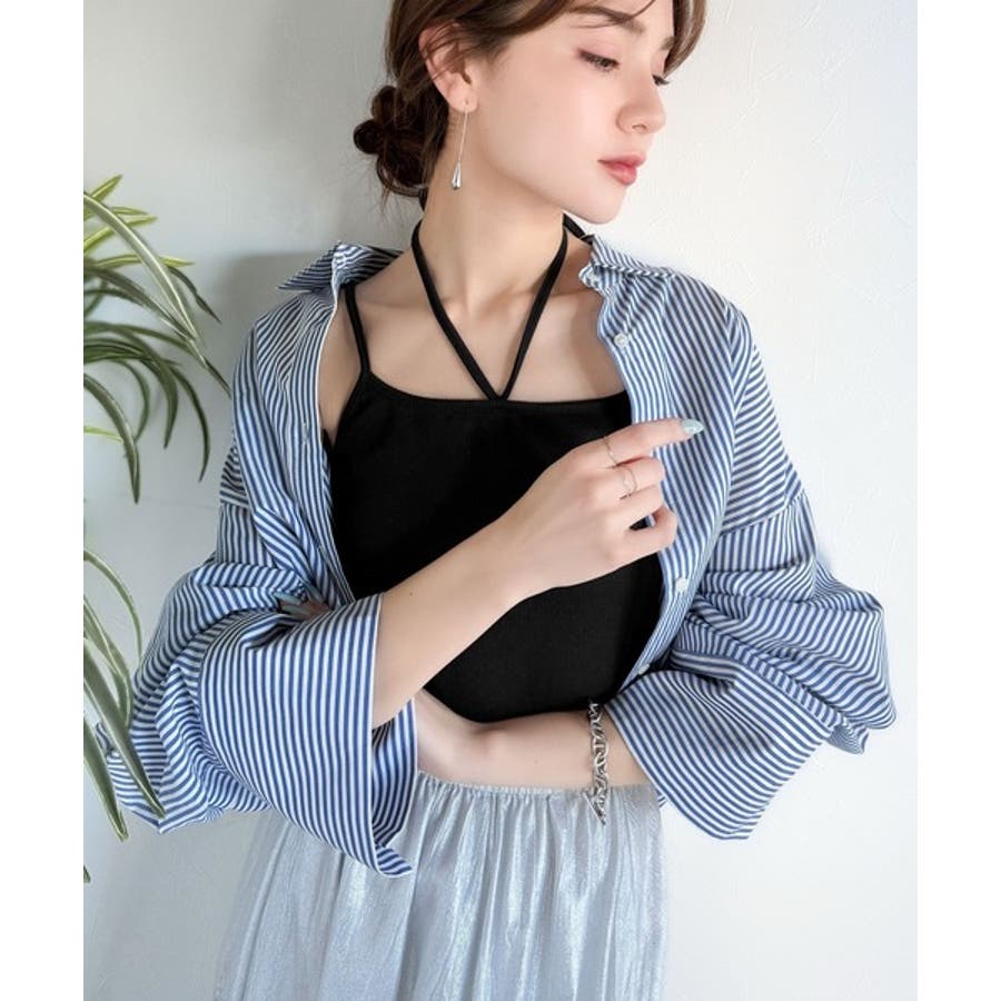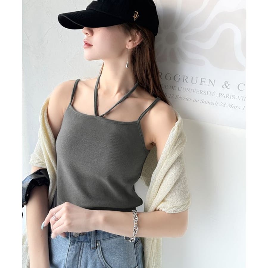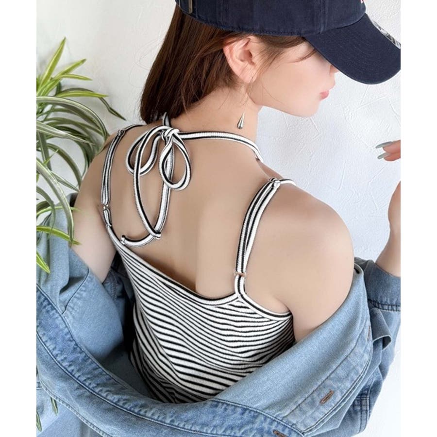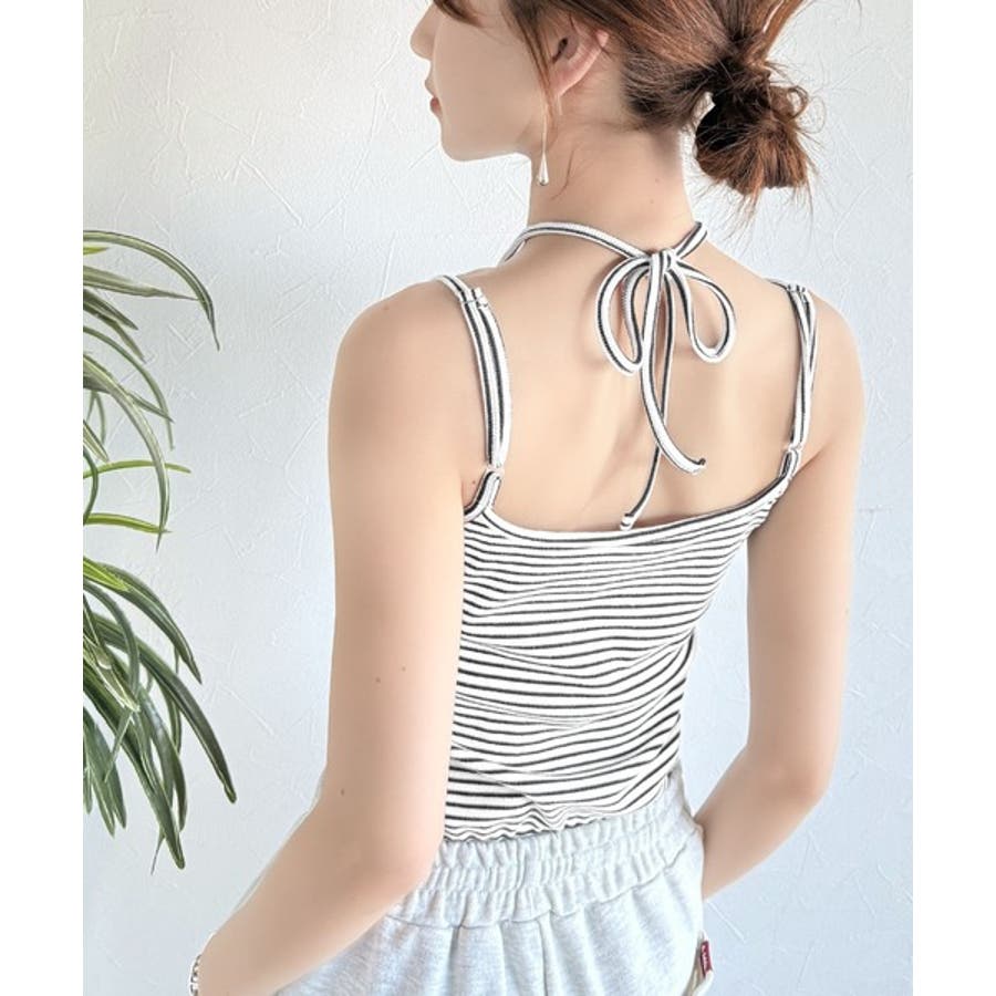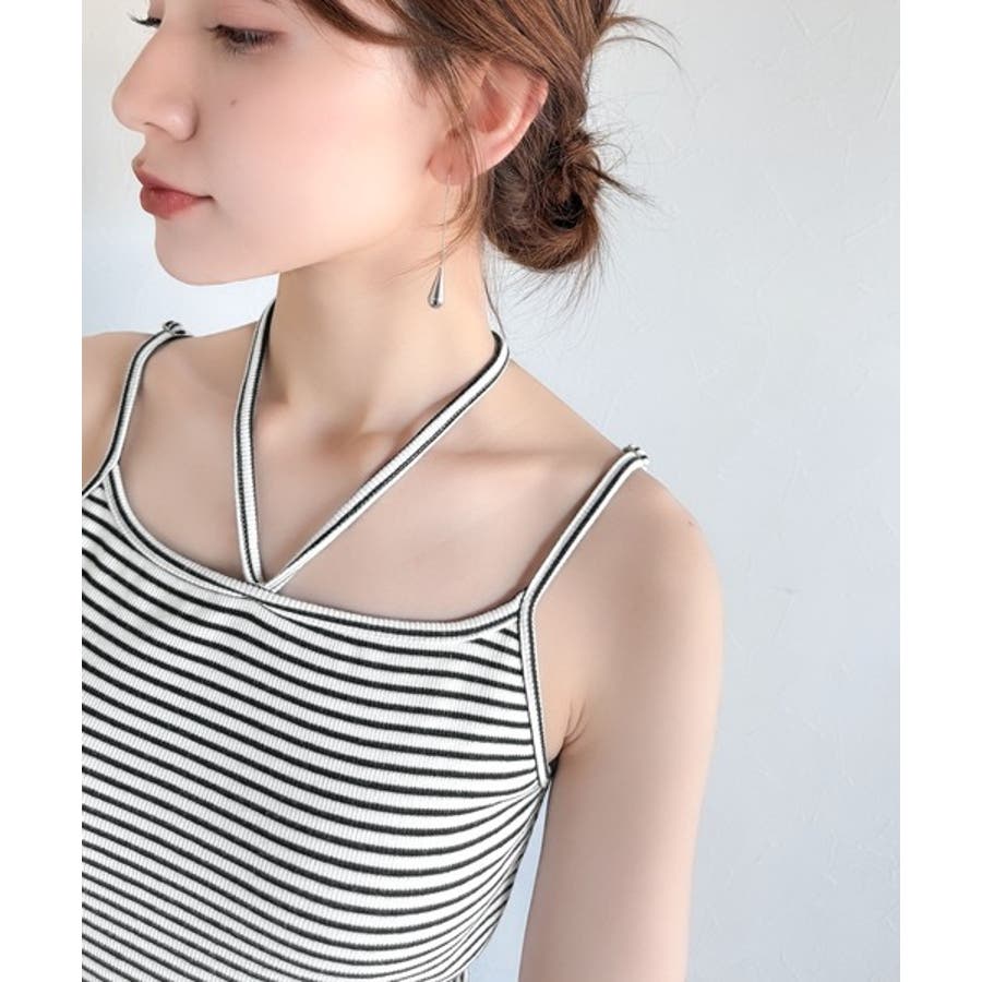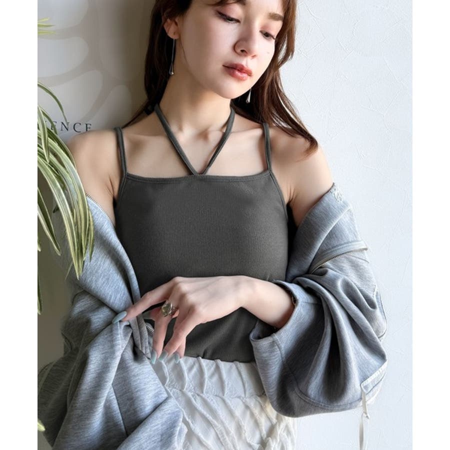 取り外し可能なホルターネック風リボンで、コーディネートを自由にアレンジできます。