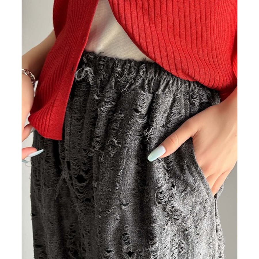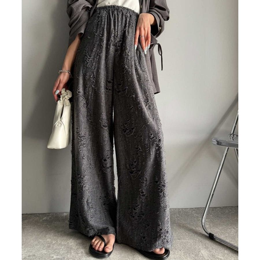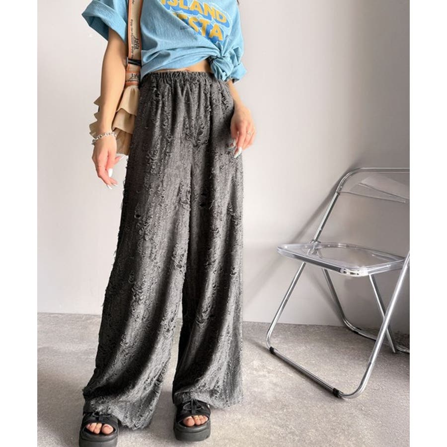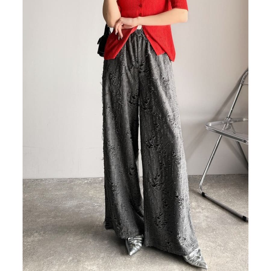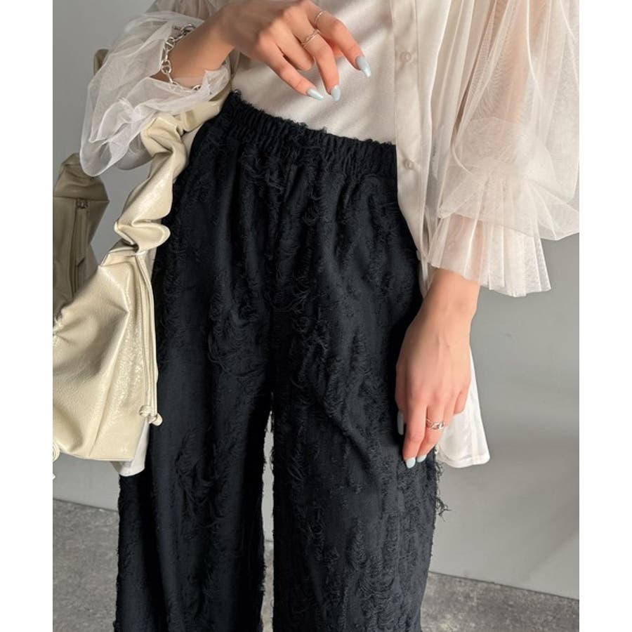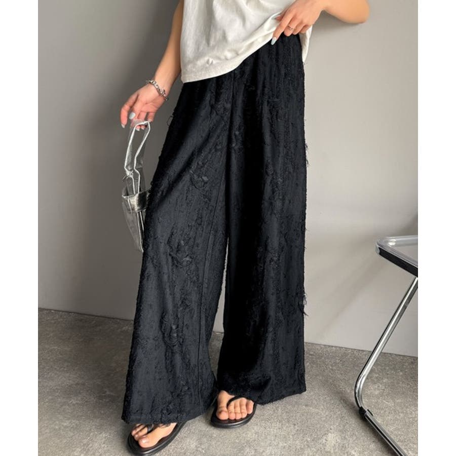 【mily bilet】旬なおしゃれダメージ加工。クラッシュジャガードワイドイー…