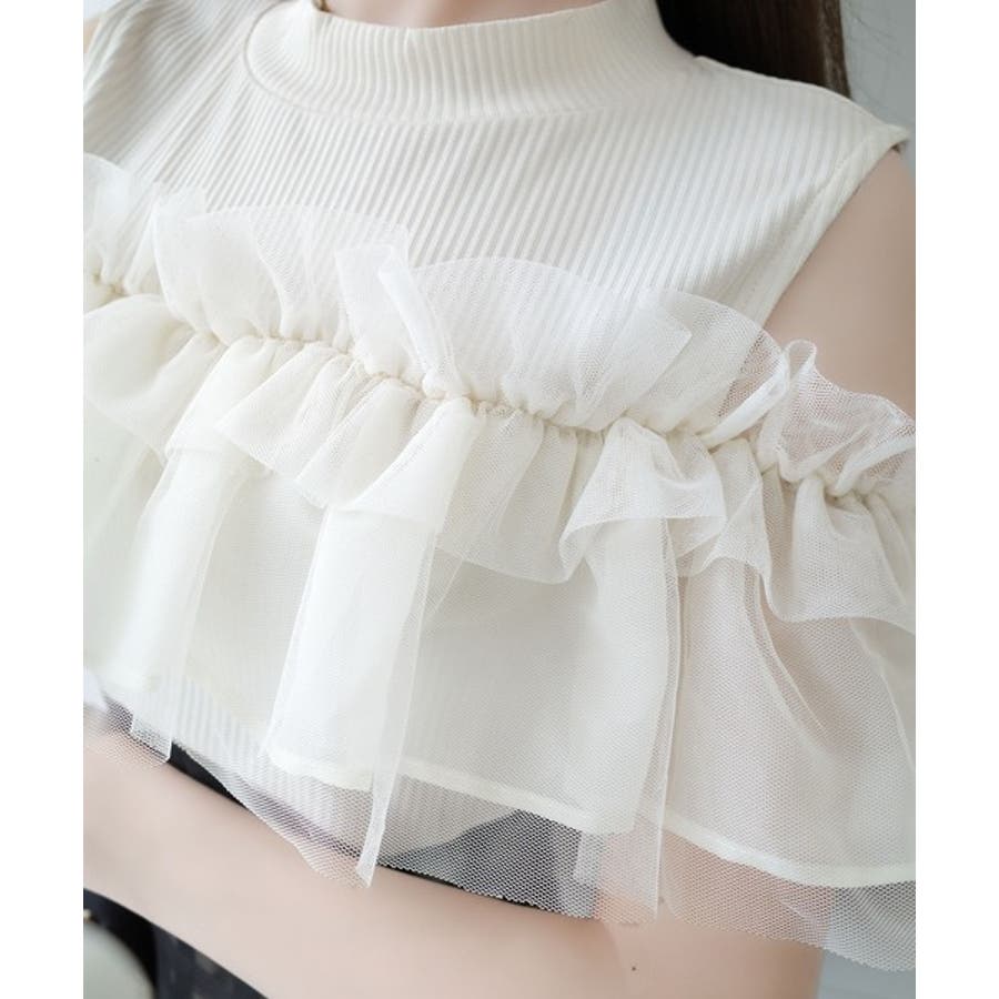 ノースリーブだけど、肩のフリルが気になる二の腕を