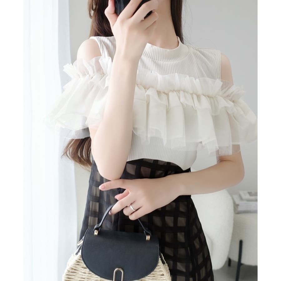 ・胸元フリル(オーガンジーの上にチュールを重ねたデザイン)