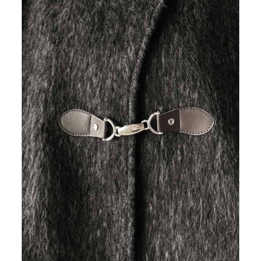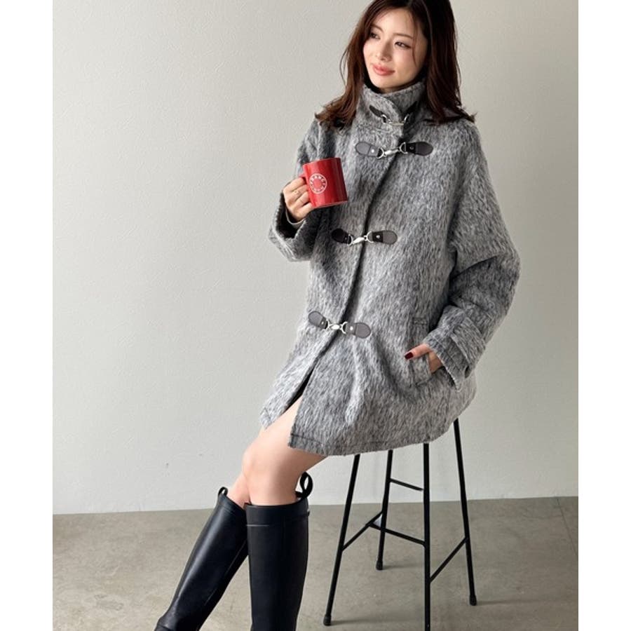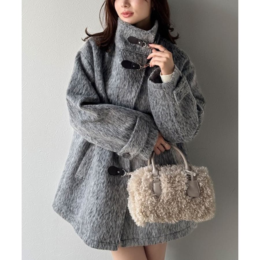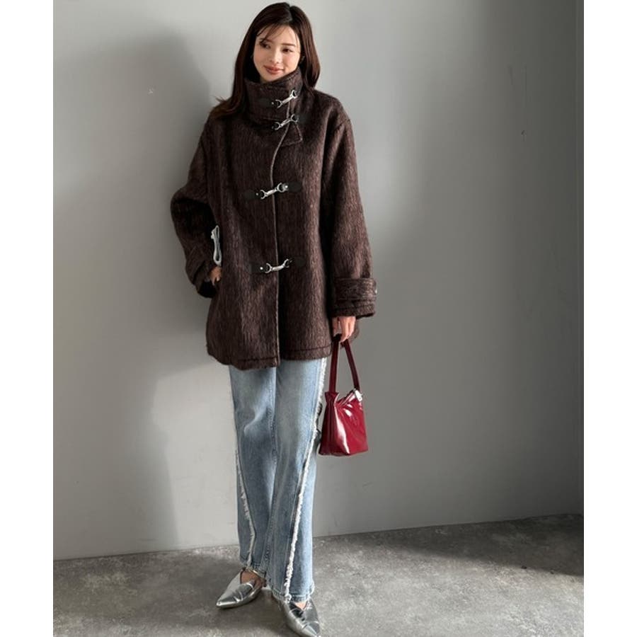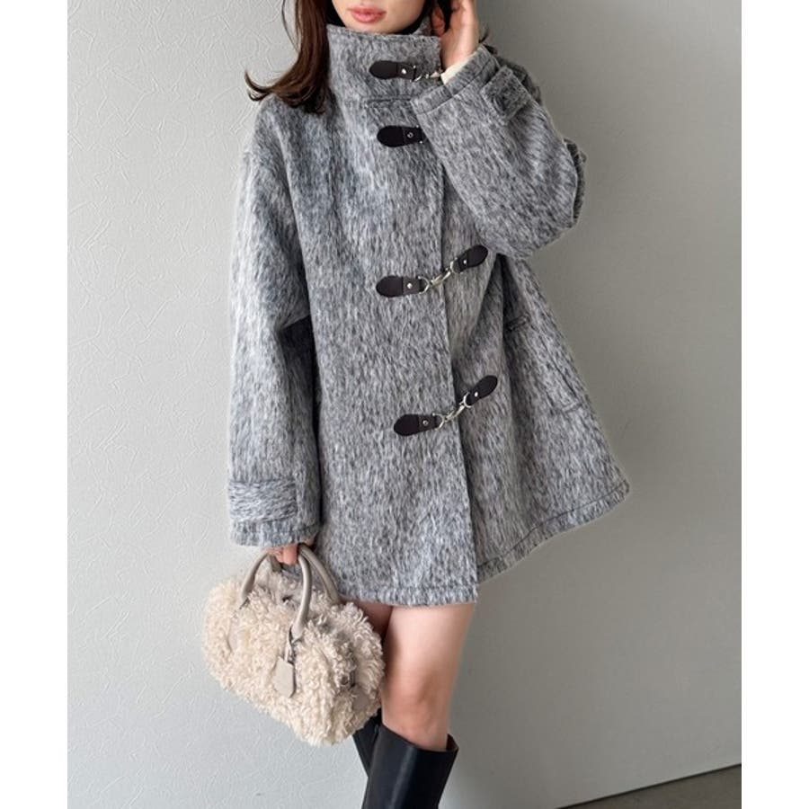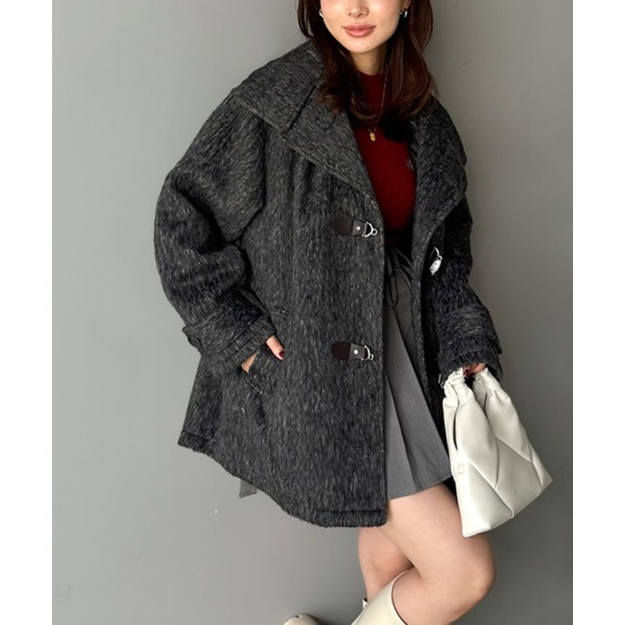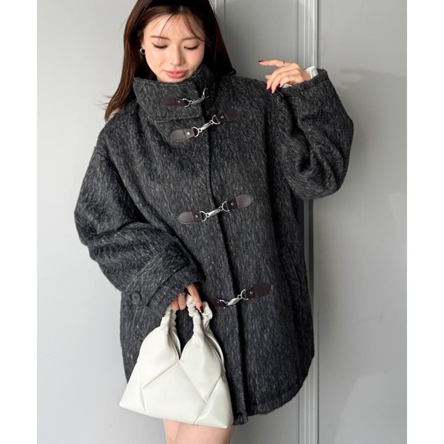華やかさと暖かさを両立したフェザーシャギーバックル使いコート。