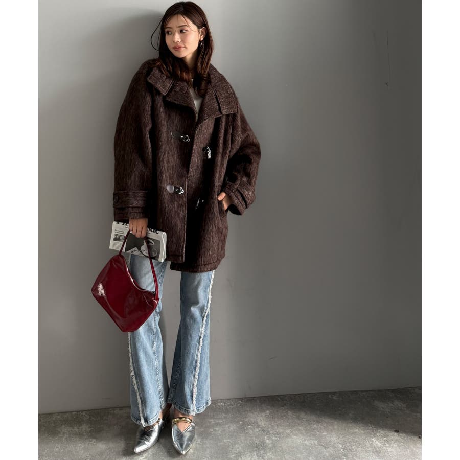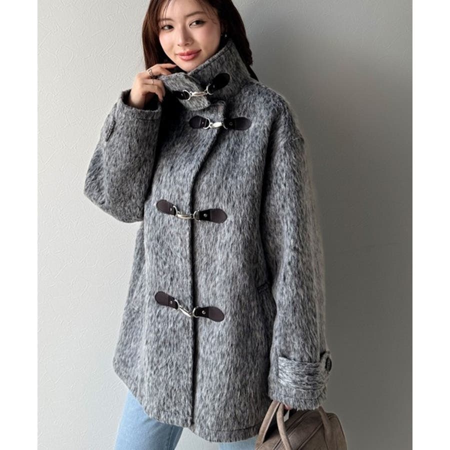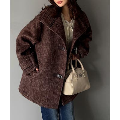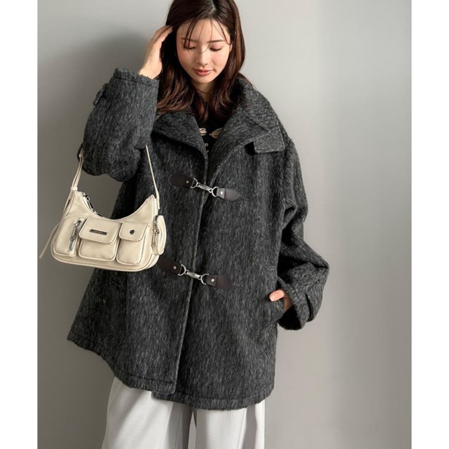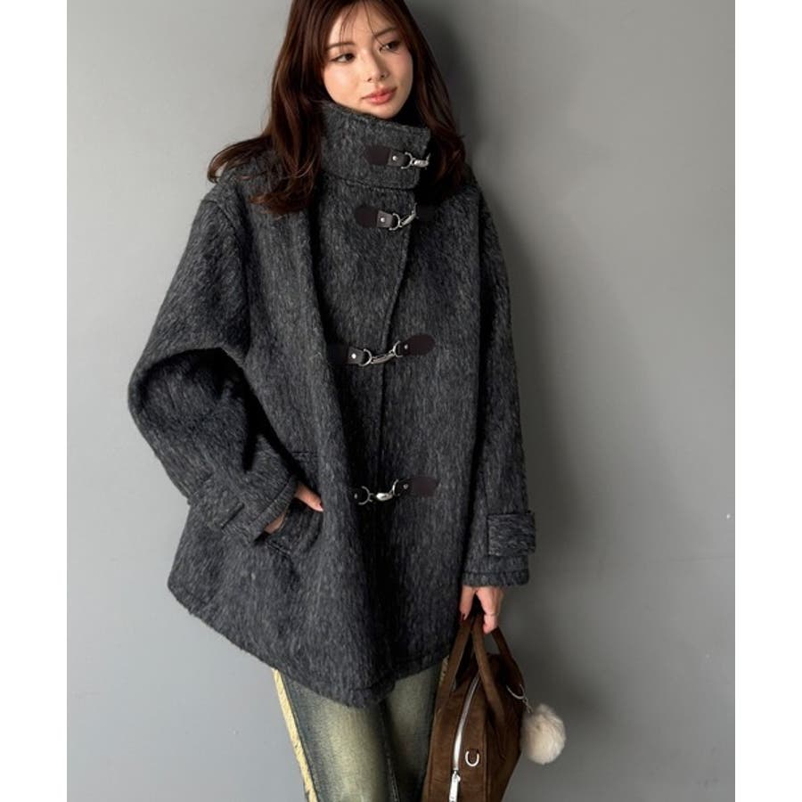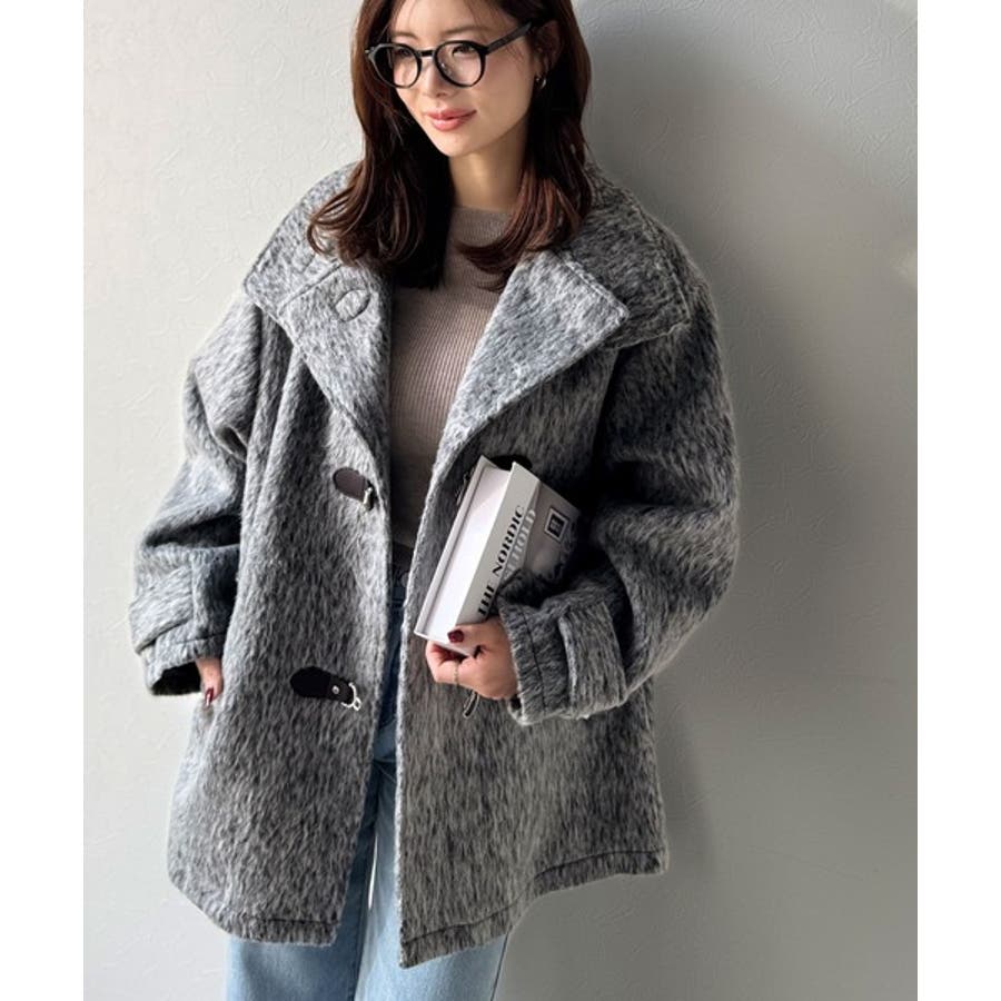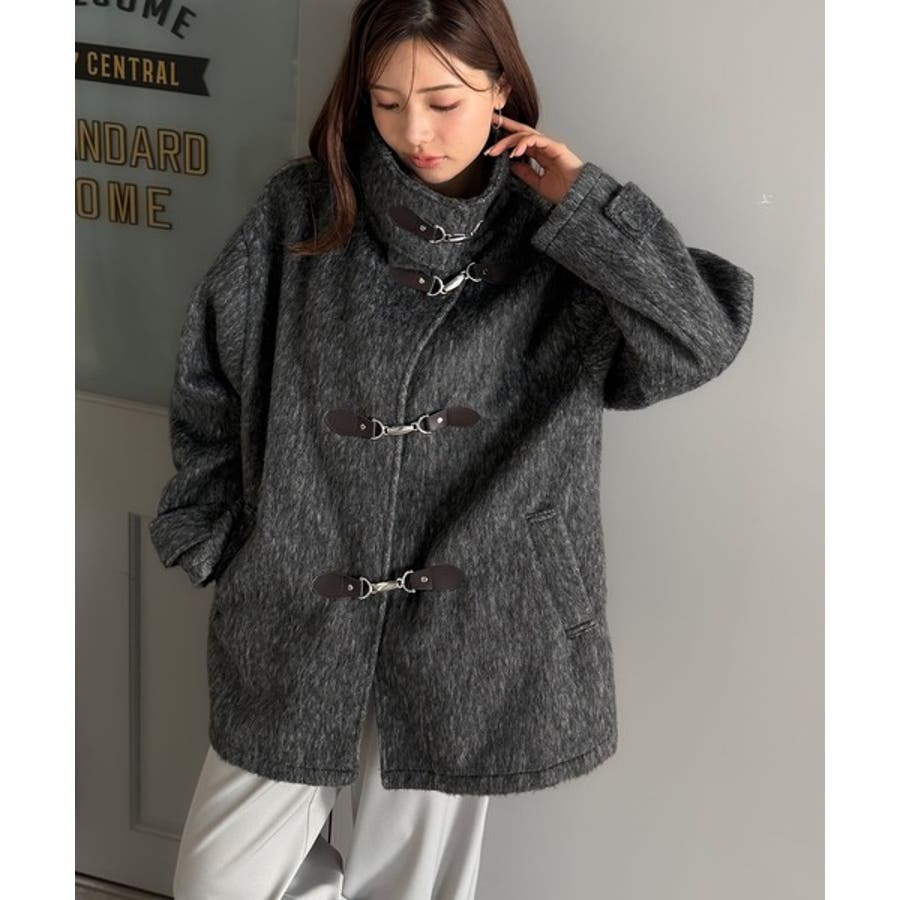華やかさと暖かさを両立したフェザーシャギーバックル使いコート。