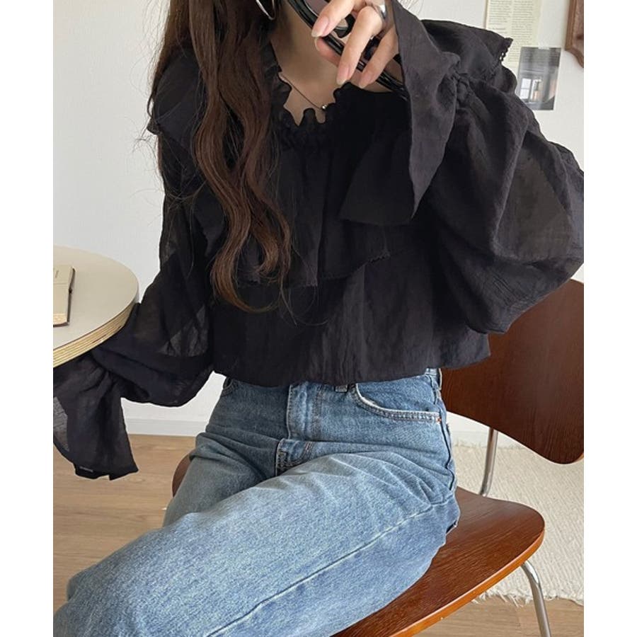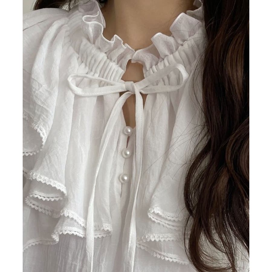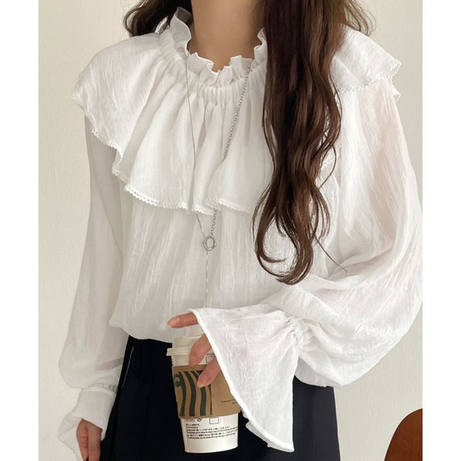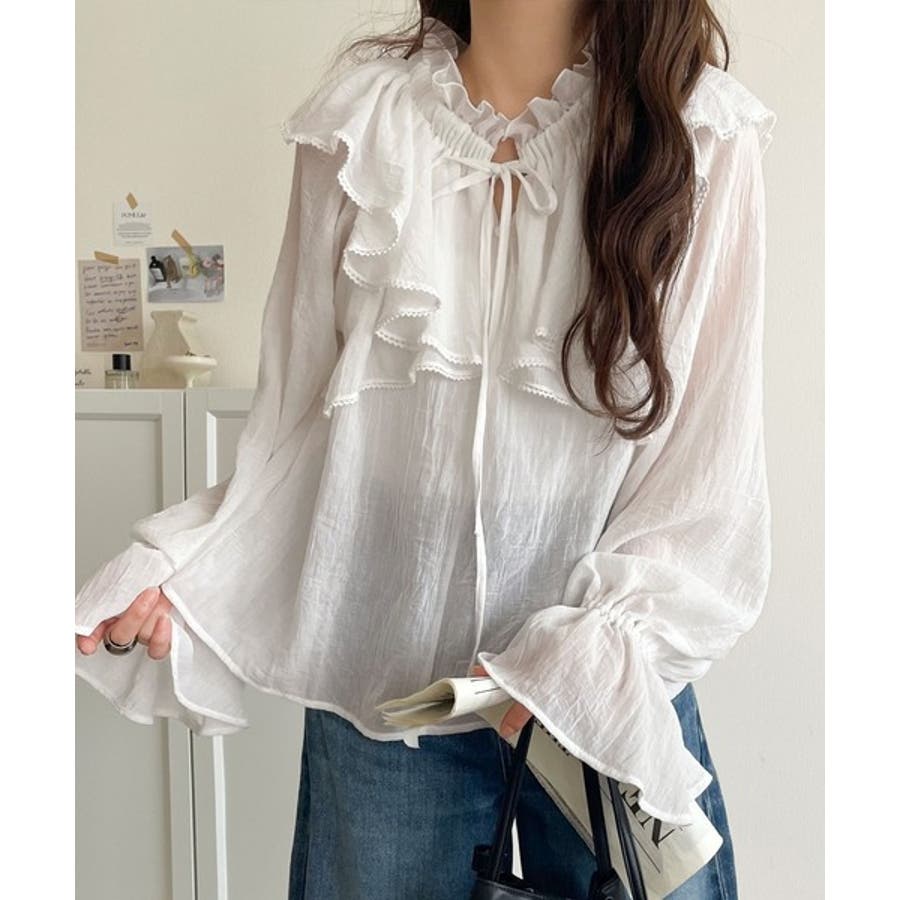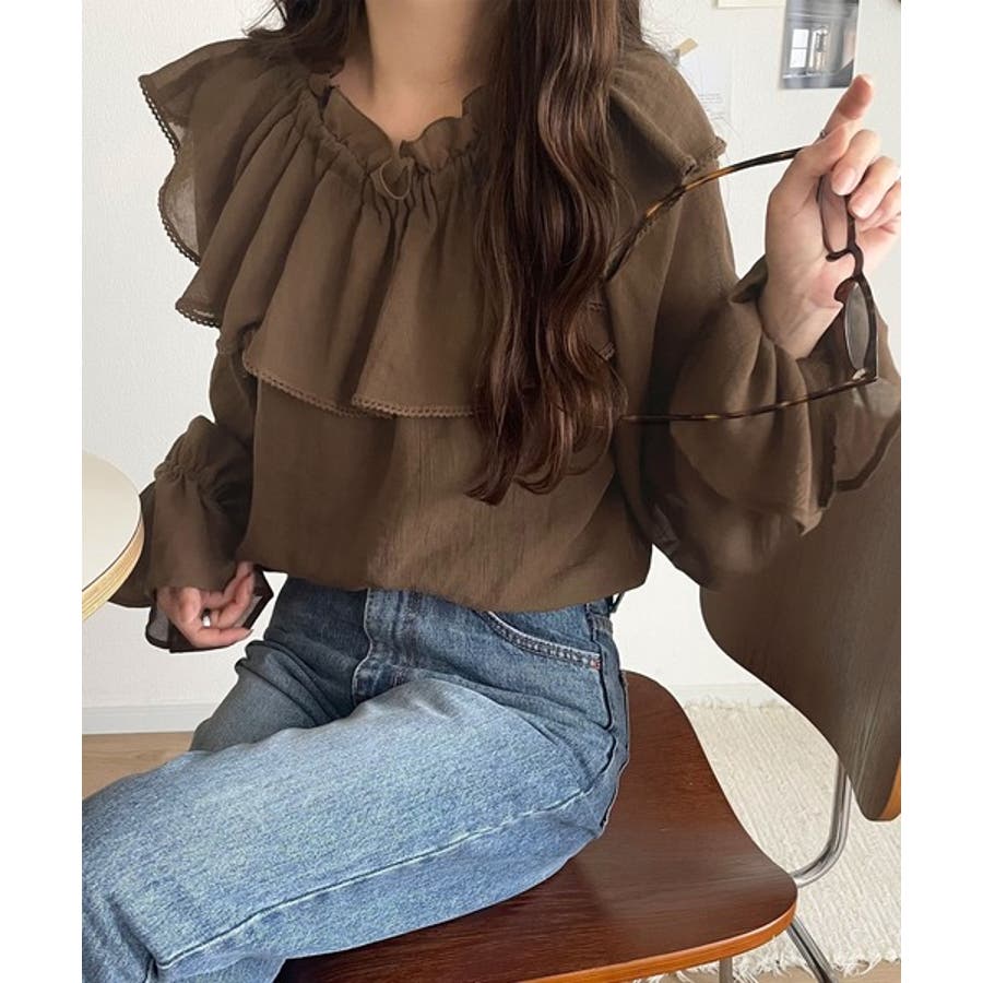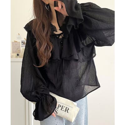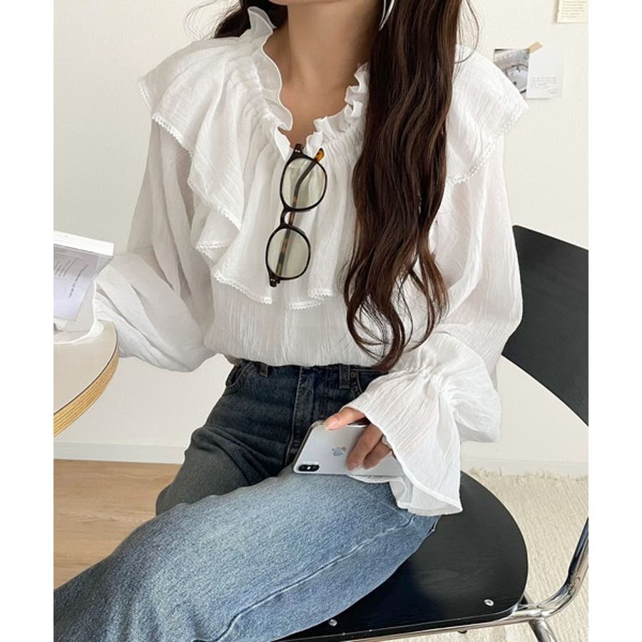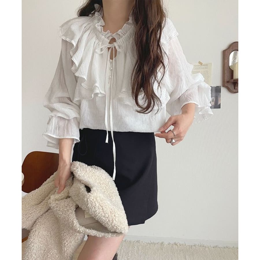 ふわっと揺れるフリルがポイントのフェミニンなブラウスです。
