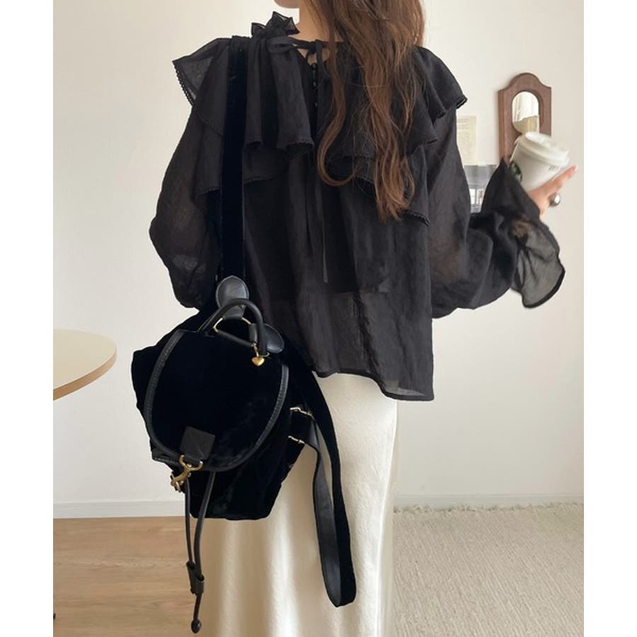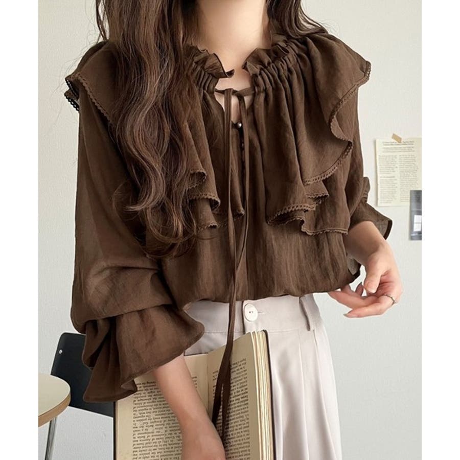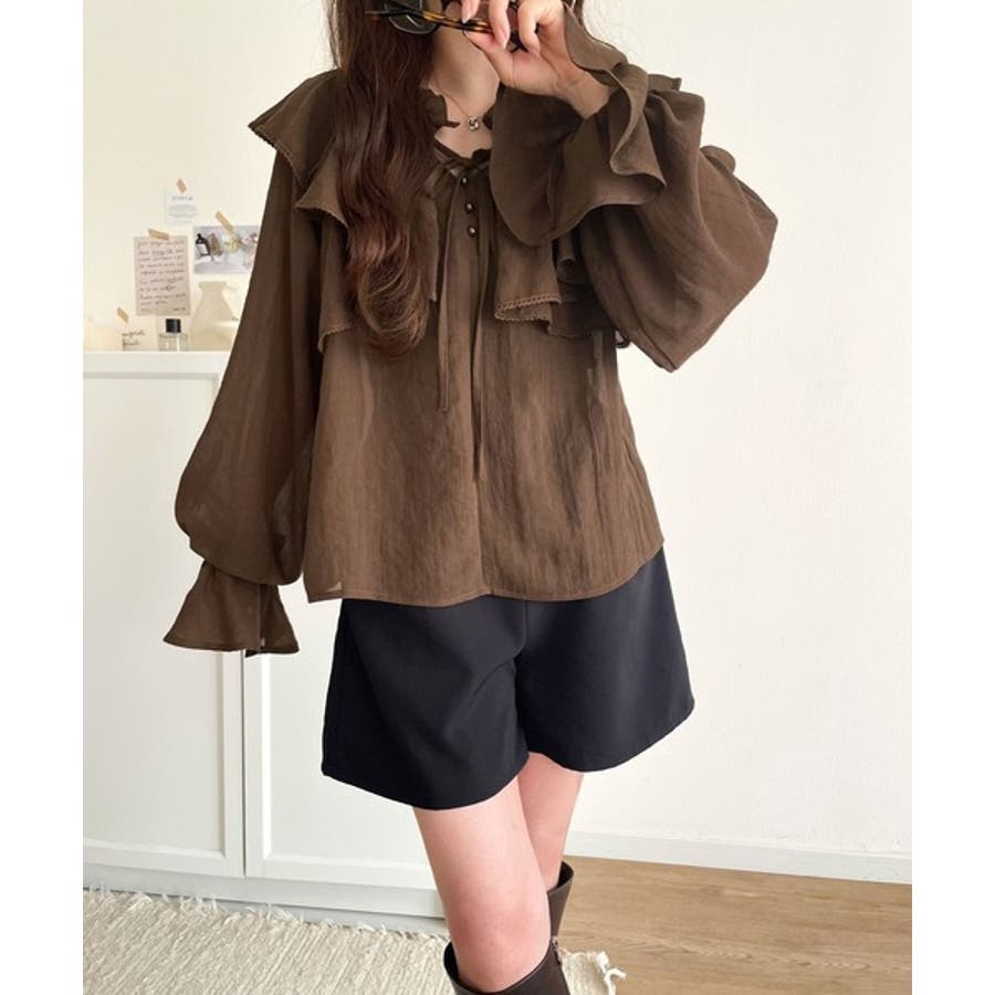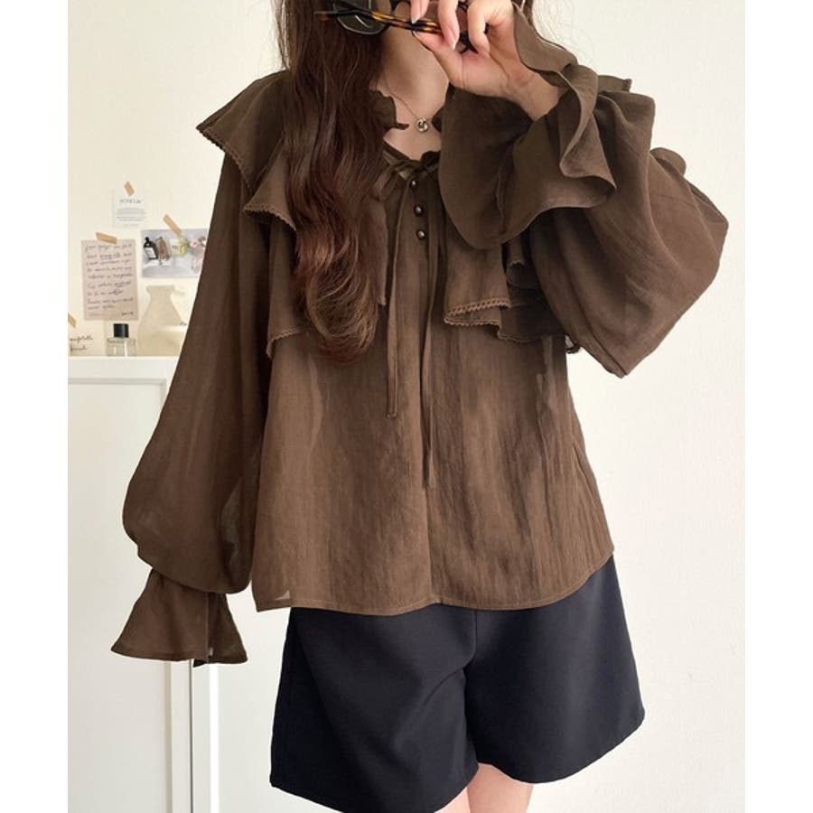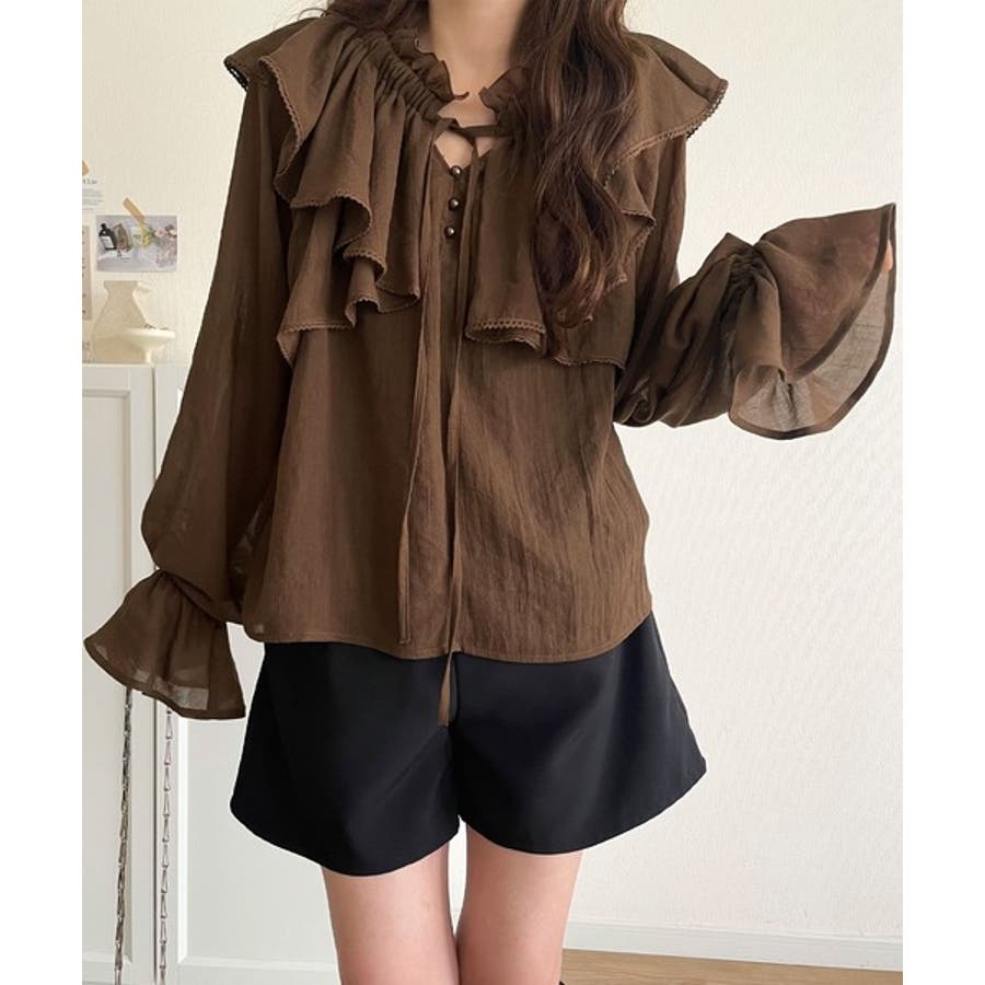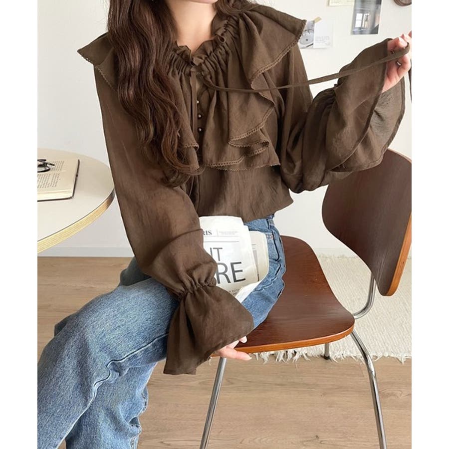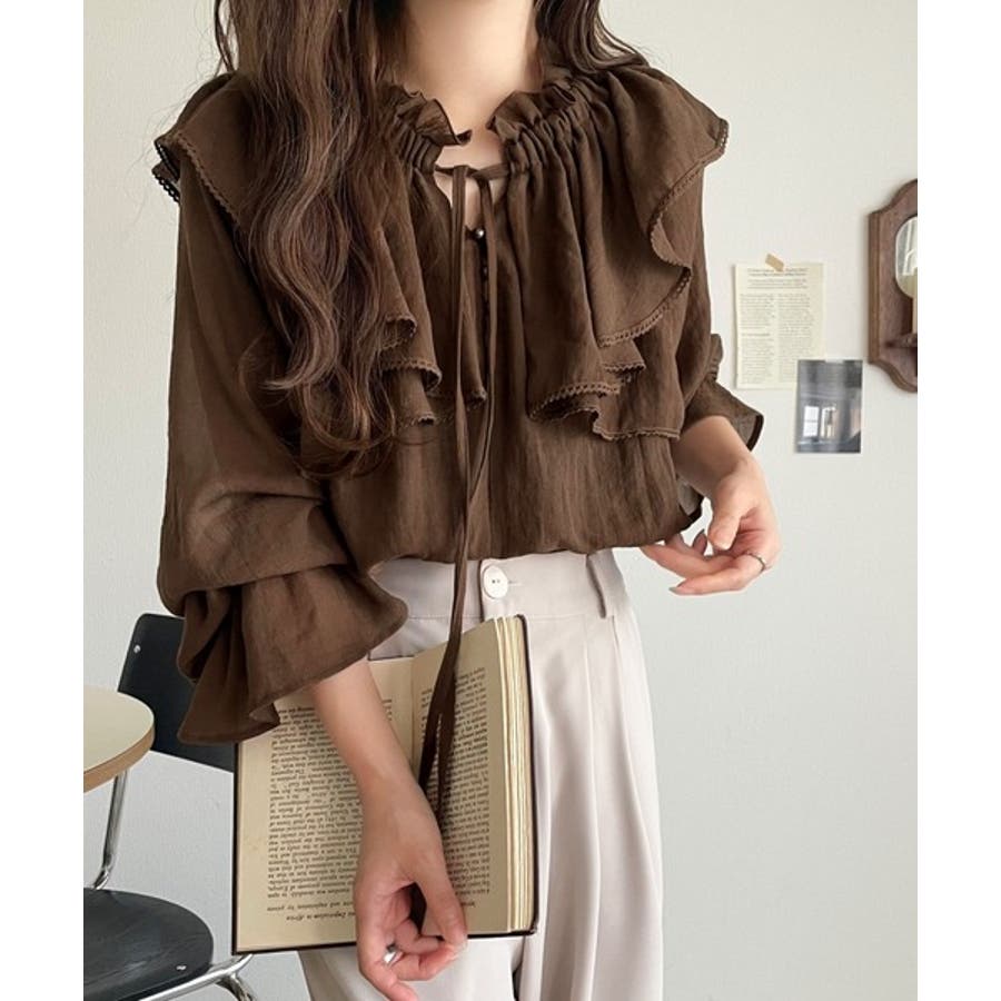 ふわっと揺れるフリルがポイントのフェミニンなブラウスです。
