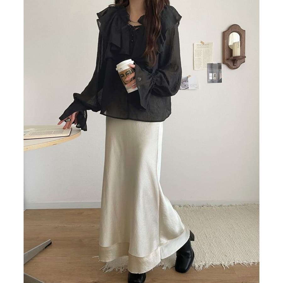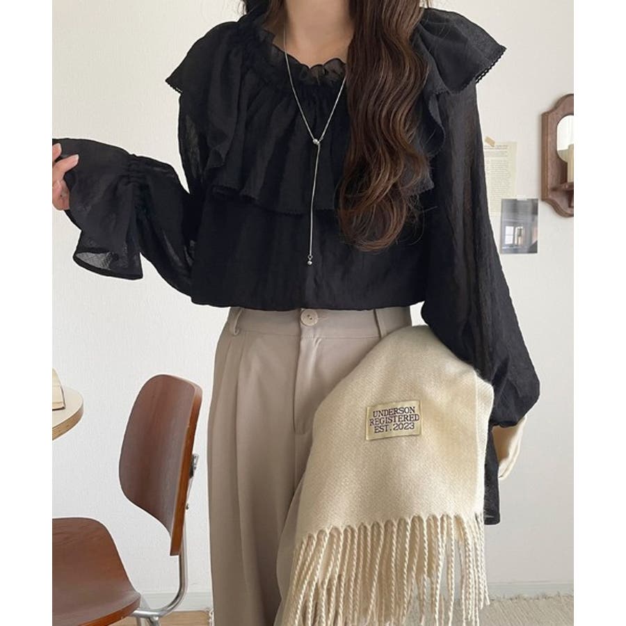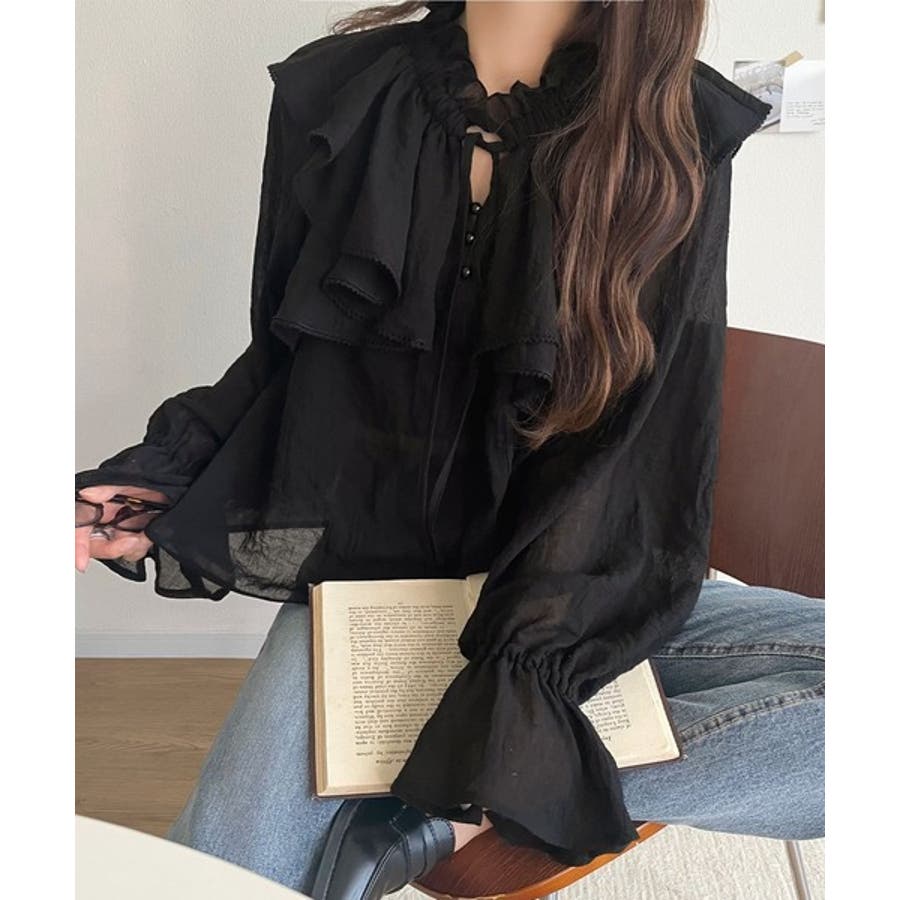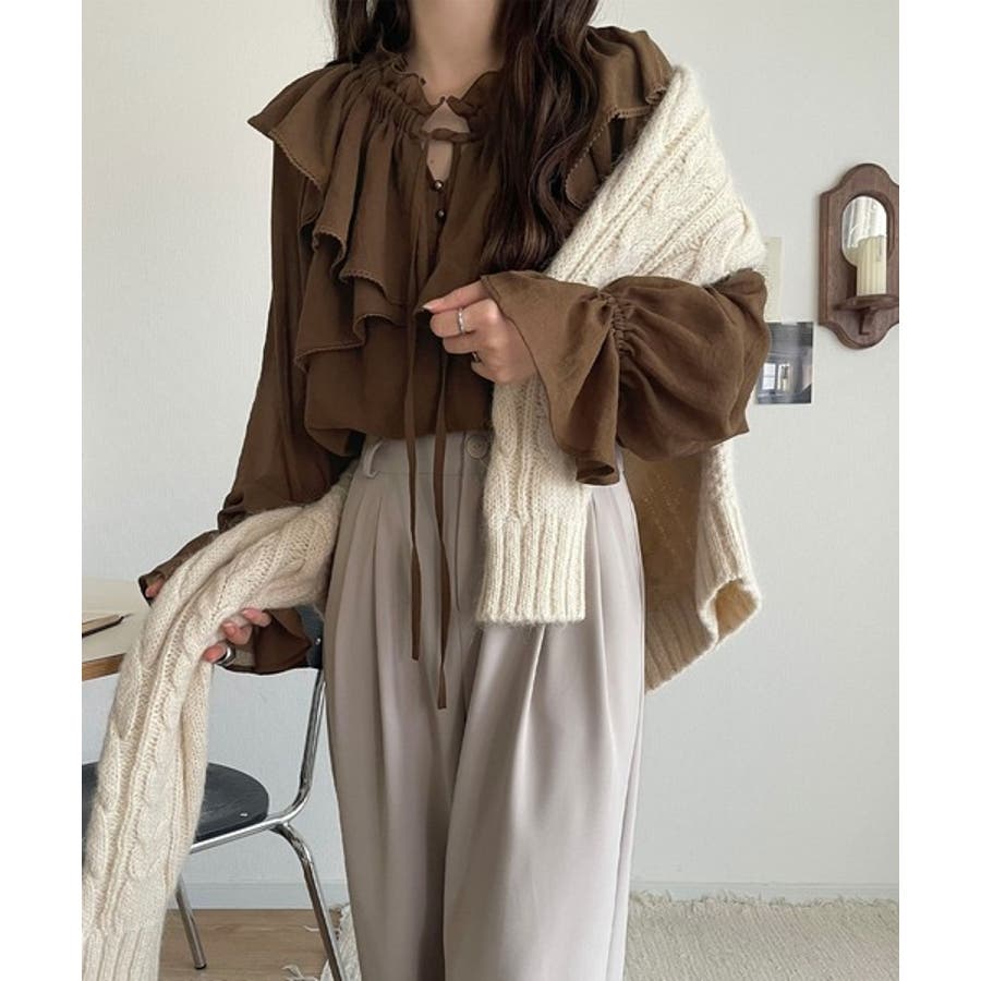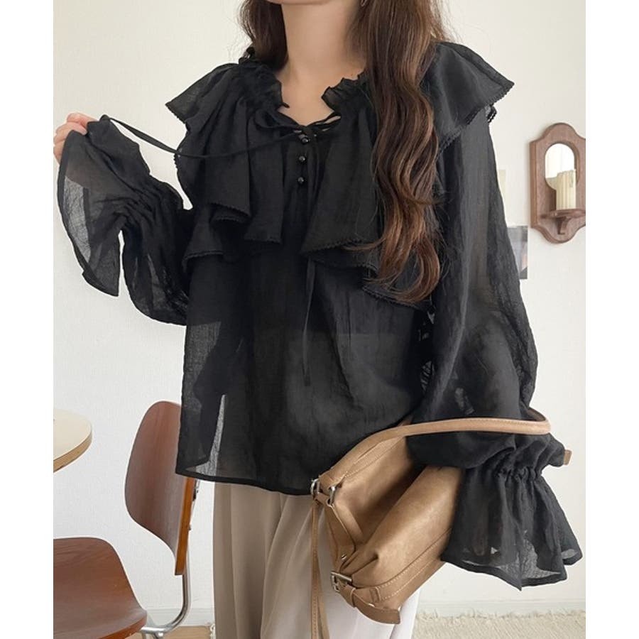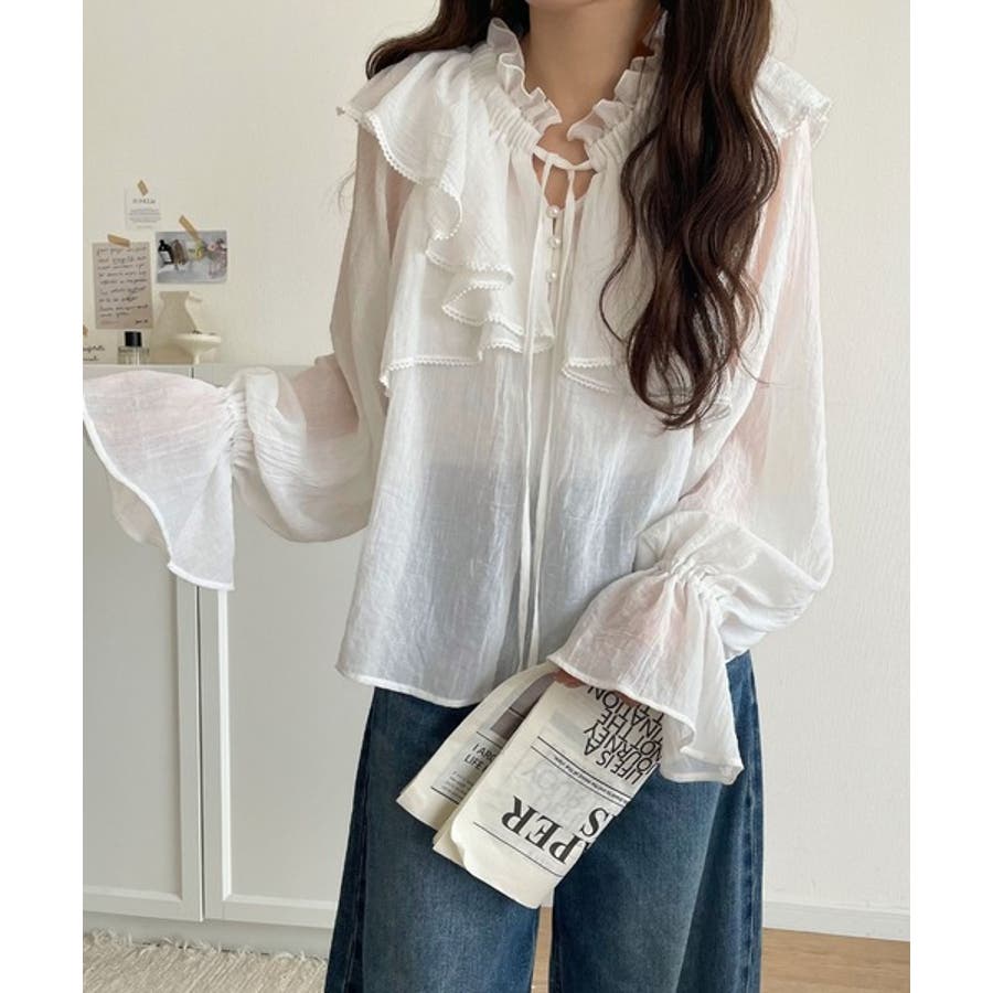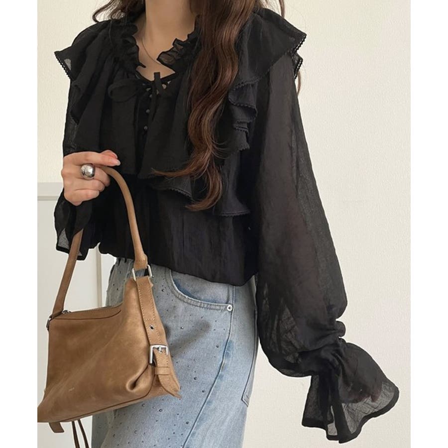 ふわっと揺れるフリルがポイントのフェミニンなブラウスです。