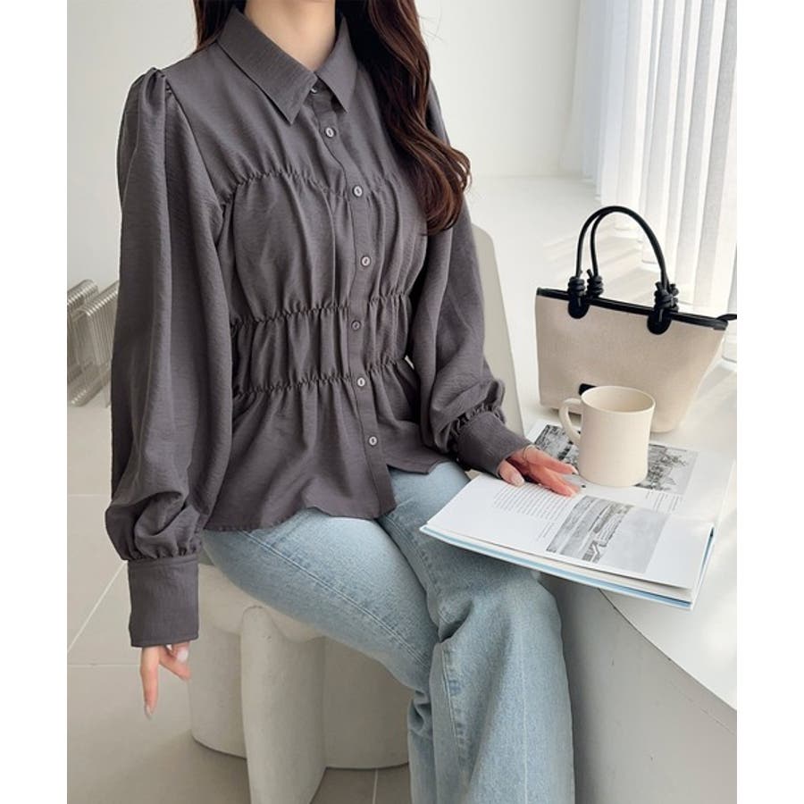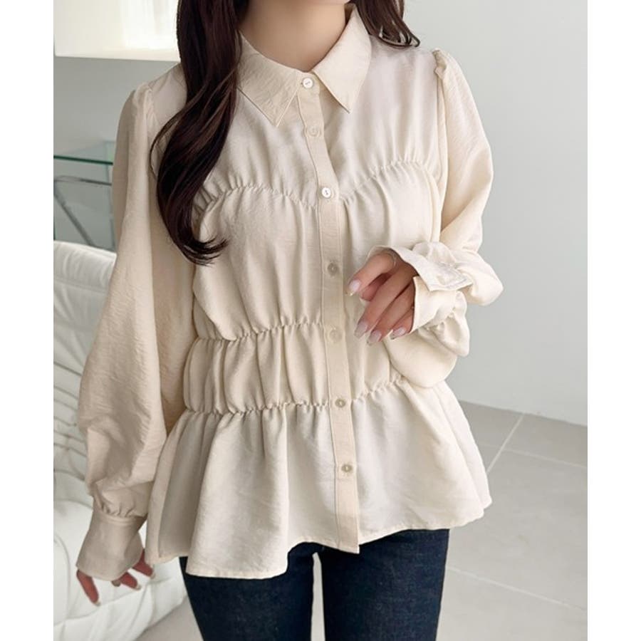 1枚で大人の甘さを引き出すシャーリングブラウス。