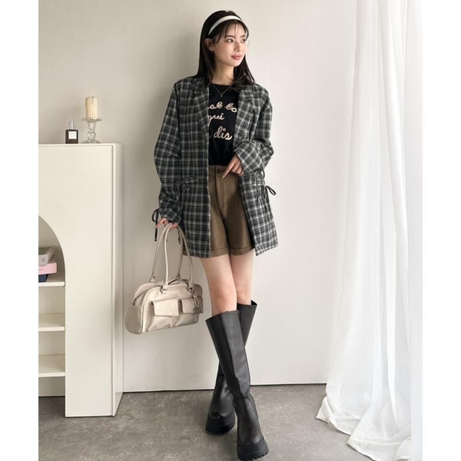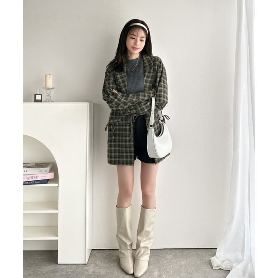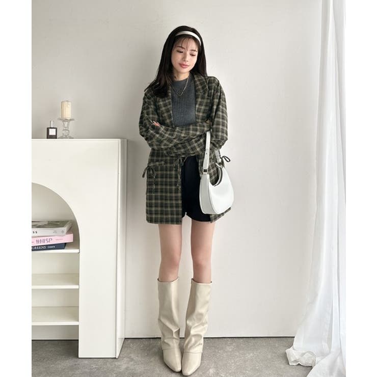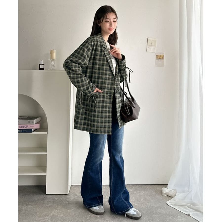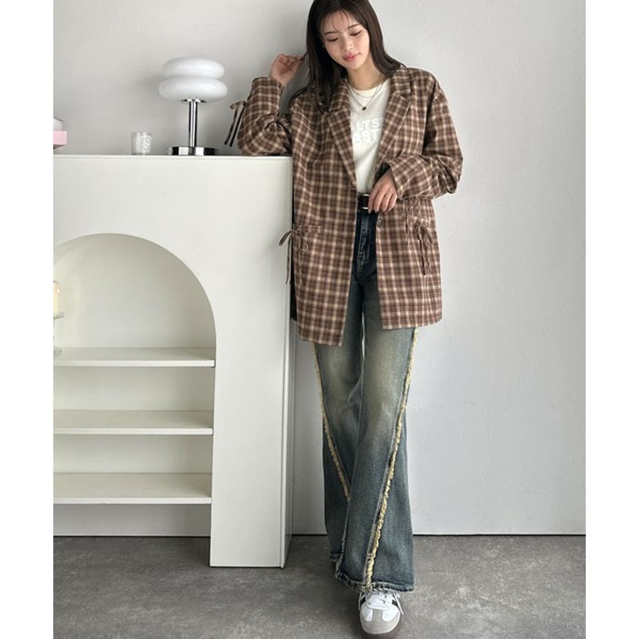 今季大本命!お洒落映えリボン付き微起毛チェック柄テーラードジャケット