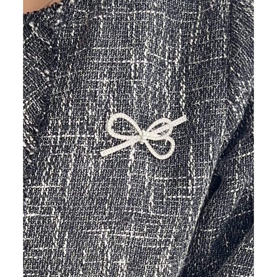左胸のリボンブローチが大人ガーリーなアクセントになり、