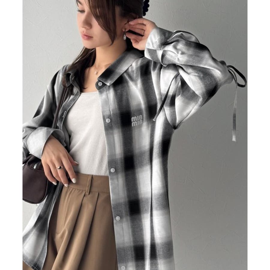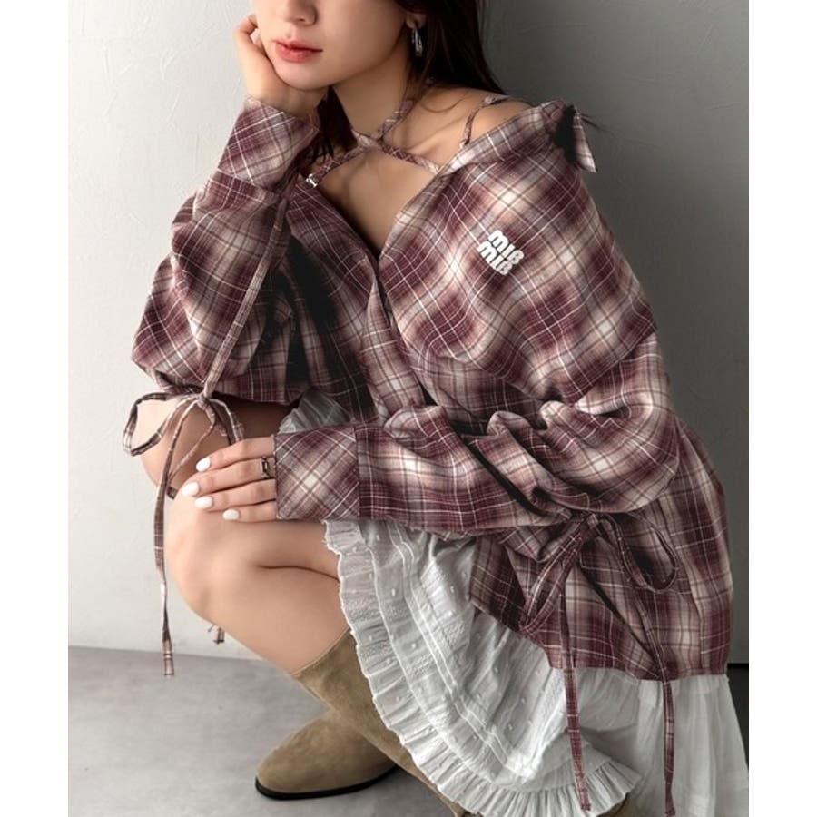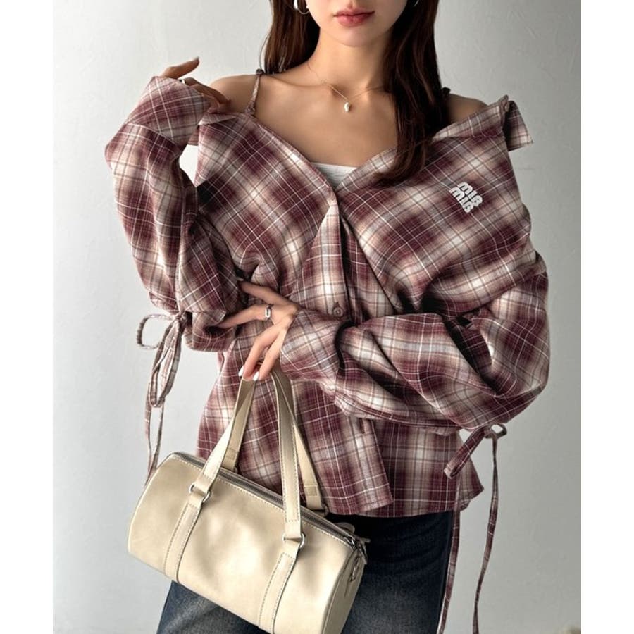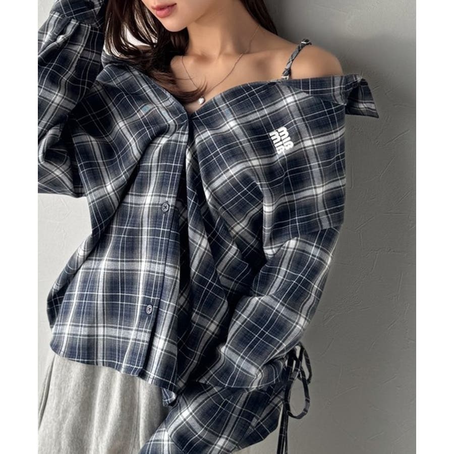 【mily bilet】アレンジ自在!2wayオフショルチェック柄襟シャツ(長袖…