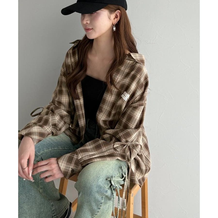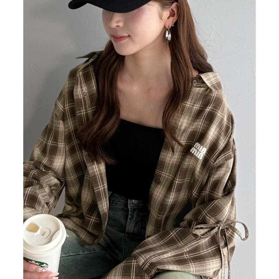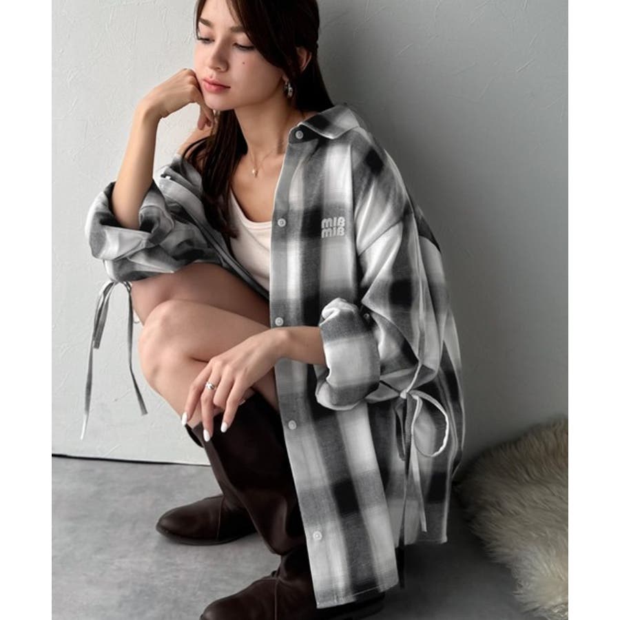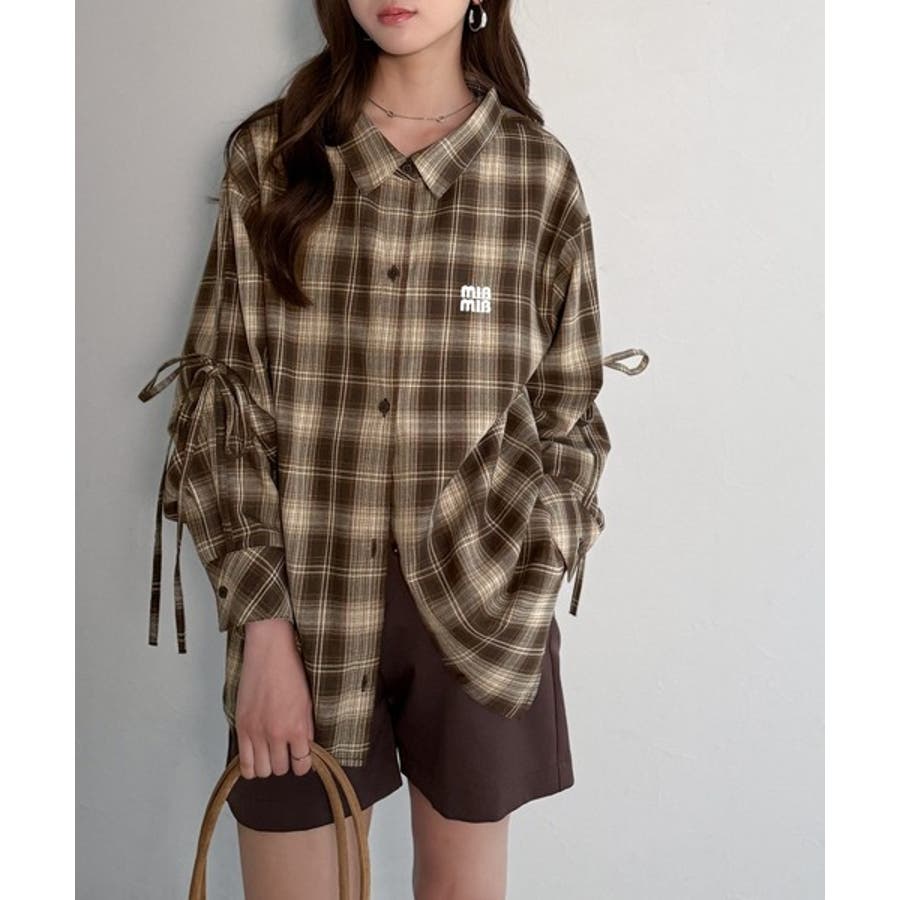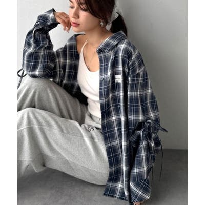 【mily bilet】アレンジ自在!2wayオフショルチェック柄襟シャツ(長袖…