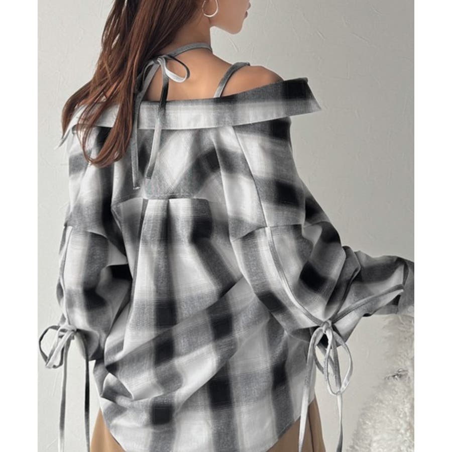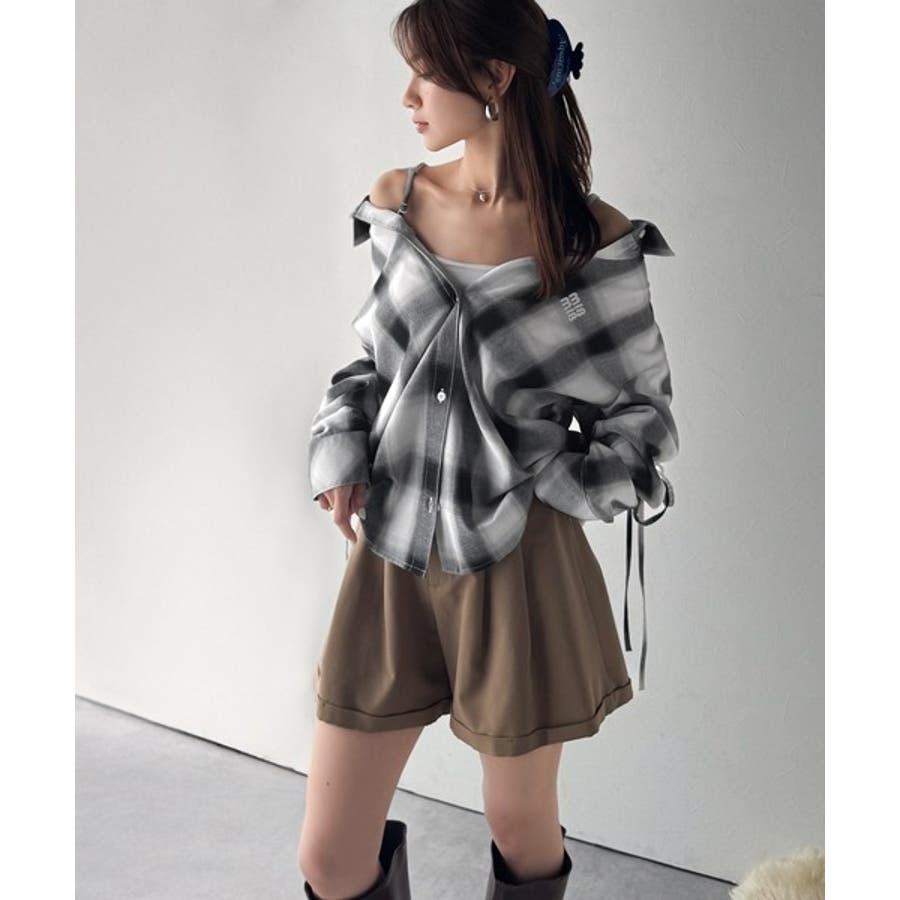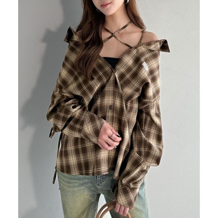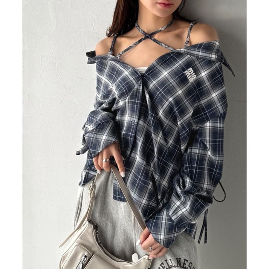 ゆるシルエットのオフショル2wayチェック柄シャツ。