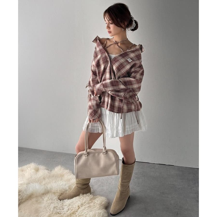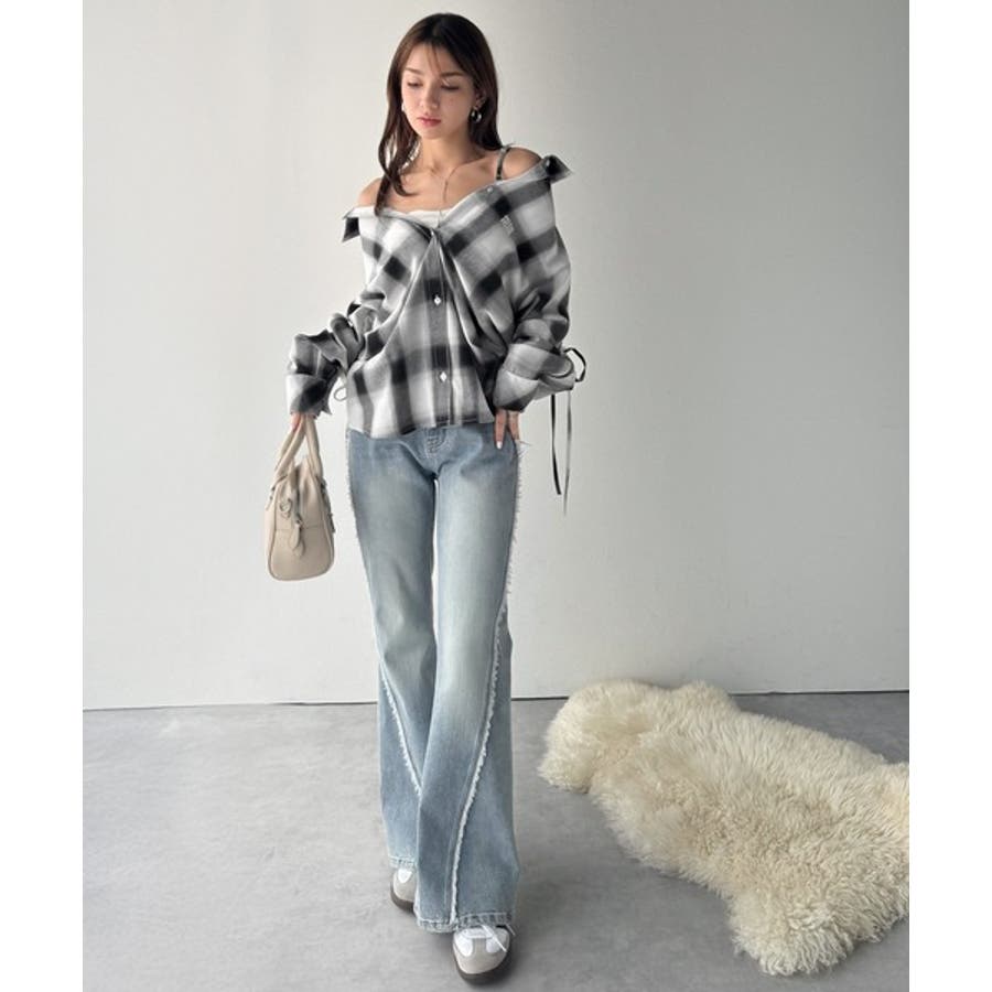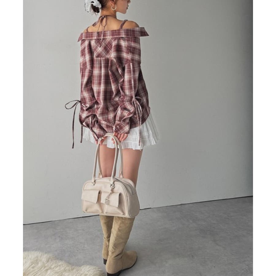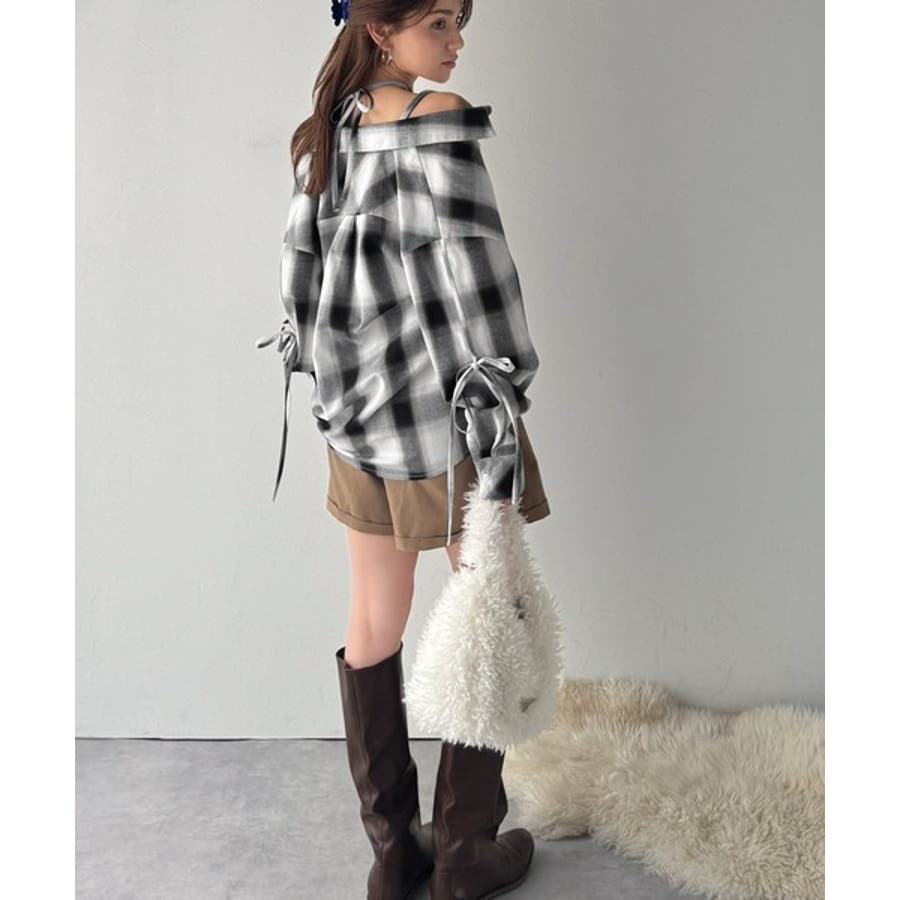 ゆるシルエットのオフショル2wayチェック柄シャツ。