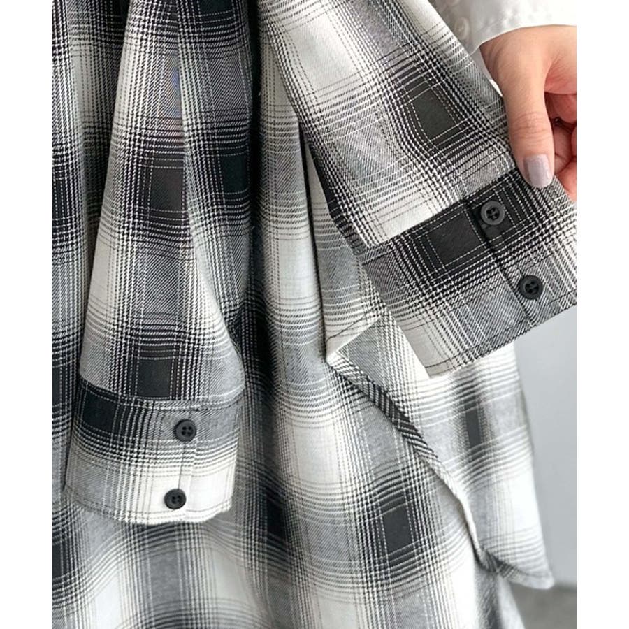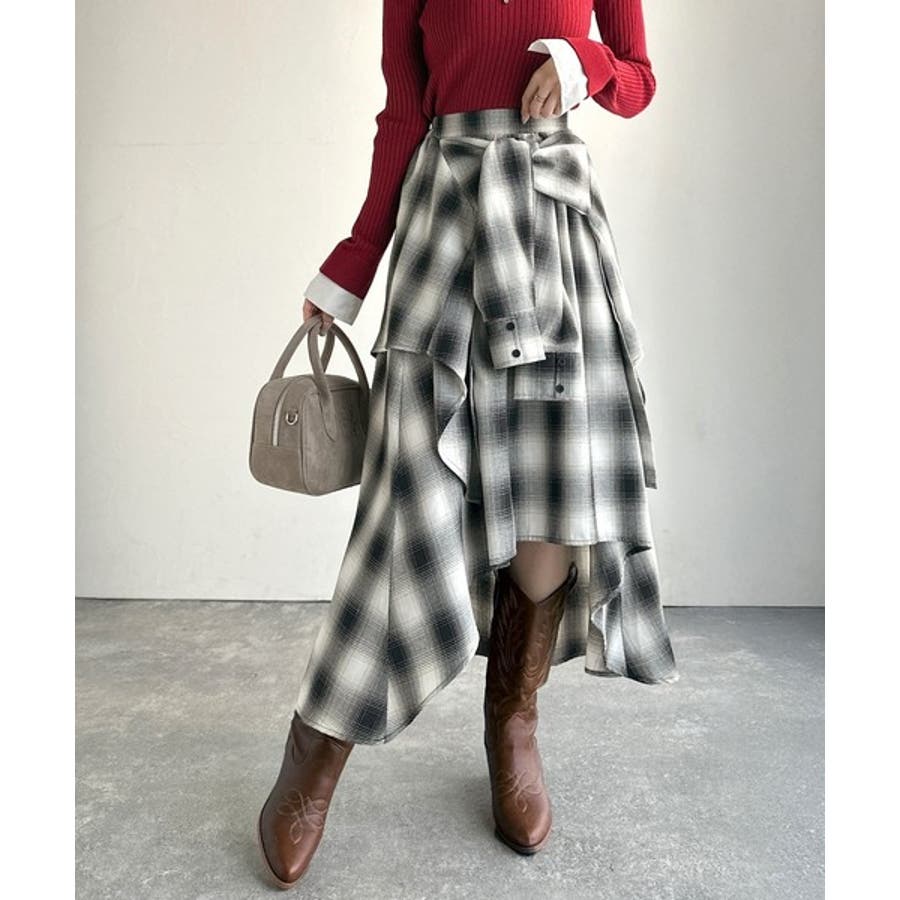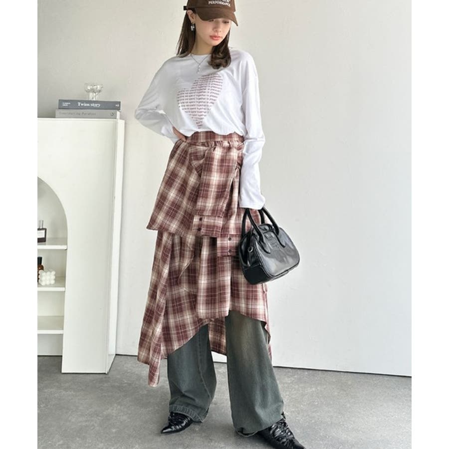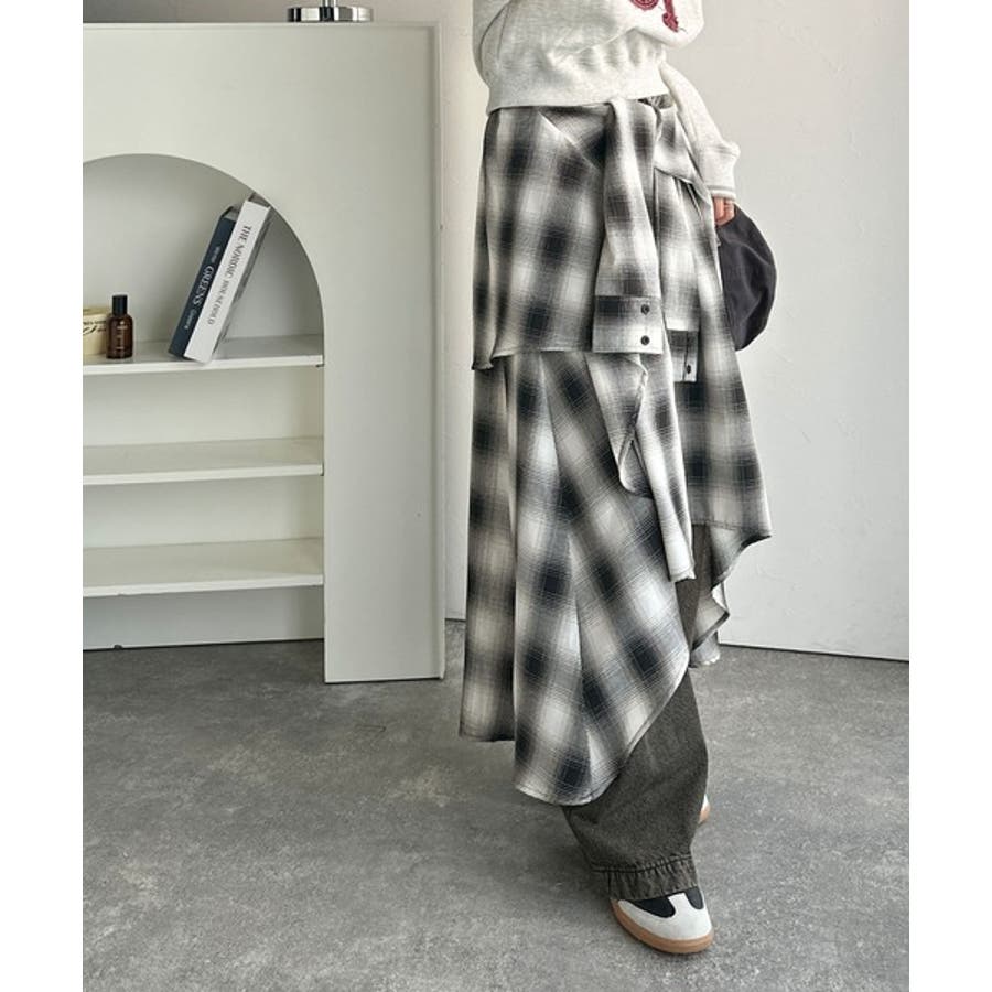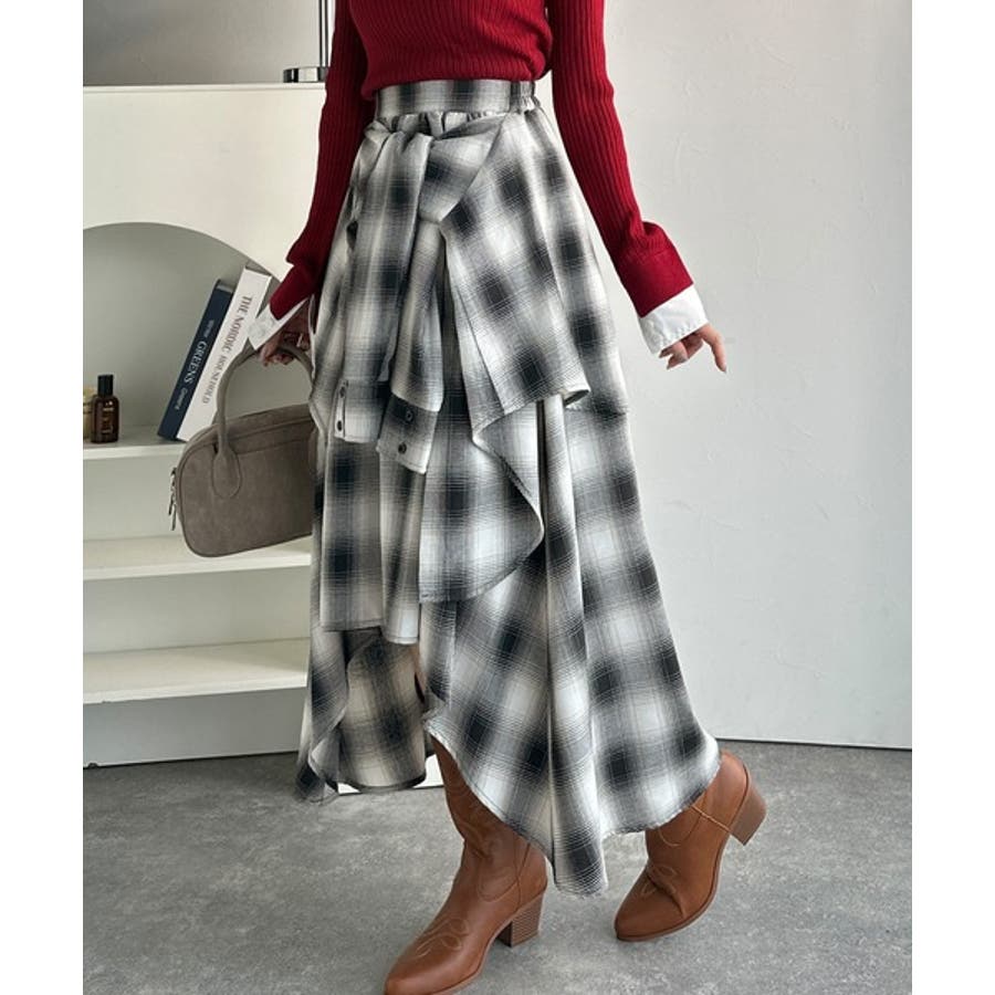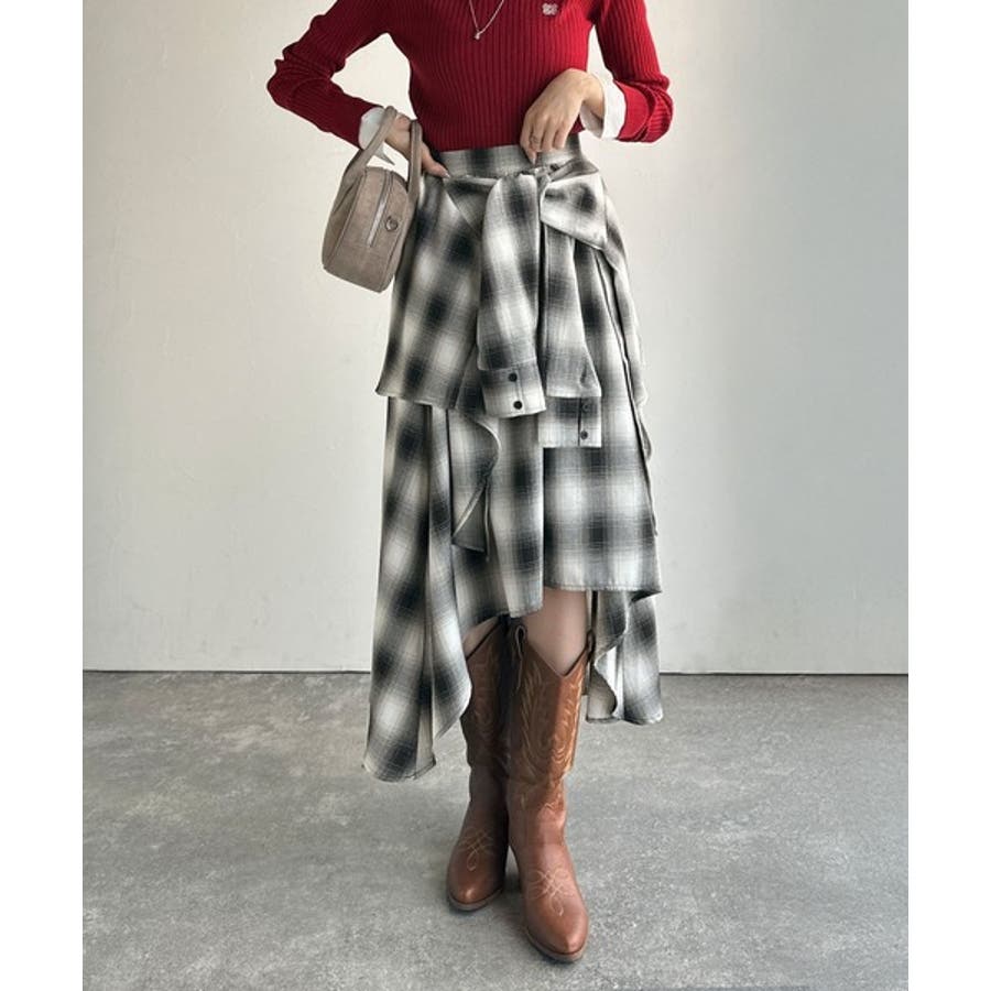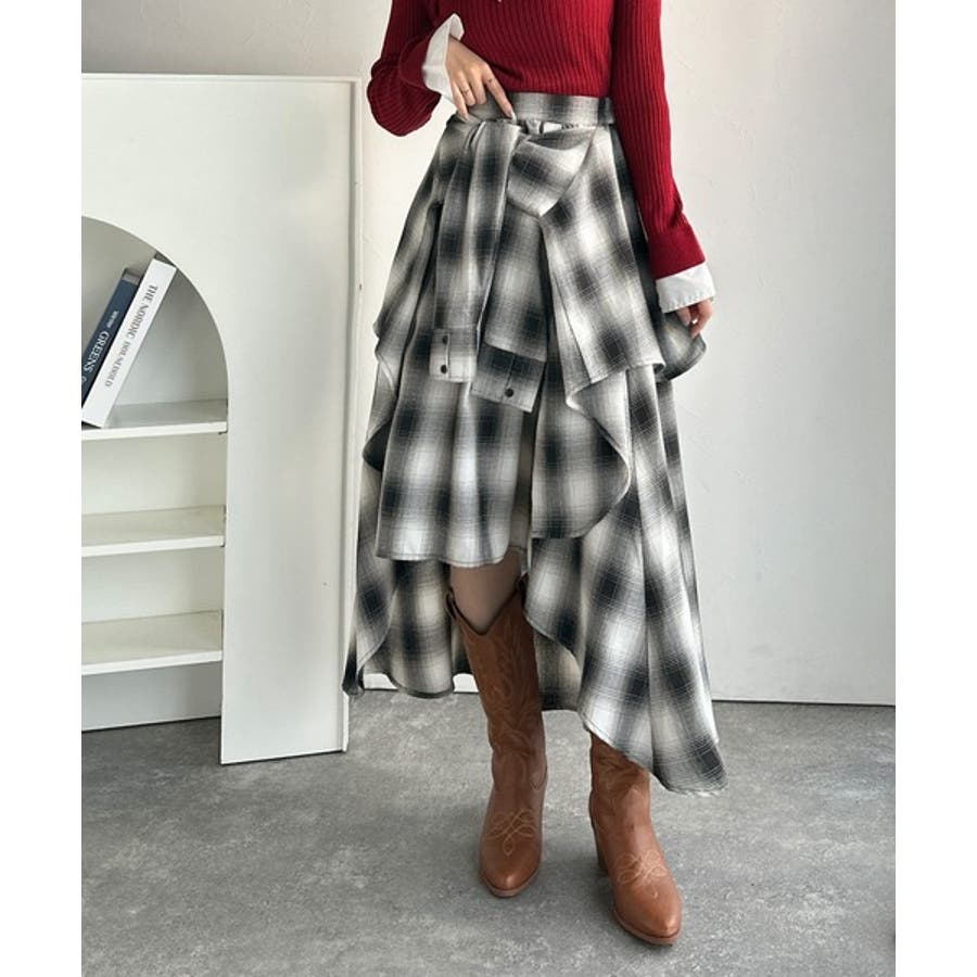 旬のレイヤード風スタイルが楽しめる!シャツ巻き風チェック柄スカート