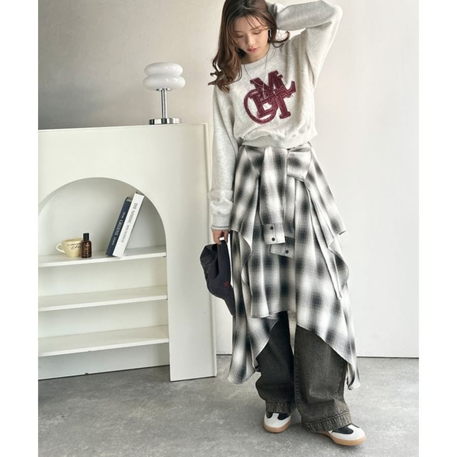 腰にチェックシャツを巻き付けたようなデザインが特徴で、ストリートなこなれ感を演出します♪