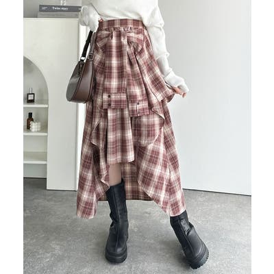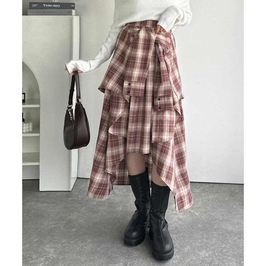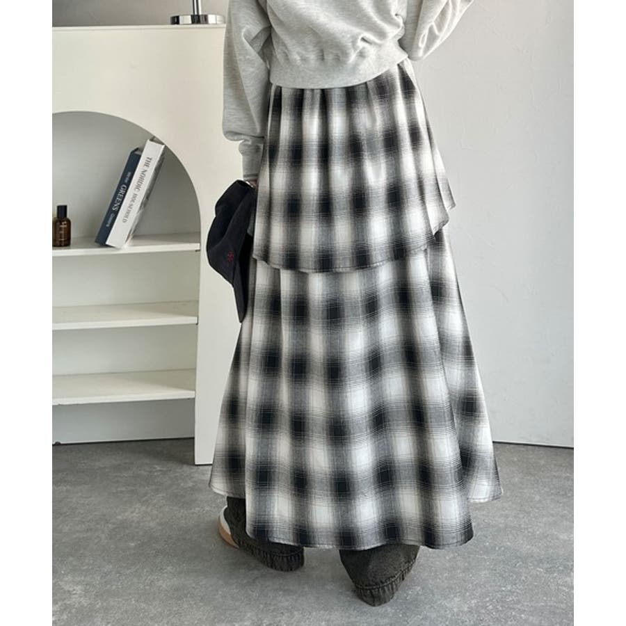 レイヤード風スタイルが楽しめるチェック柄スカート。