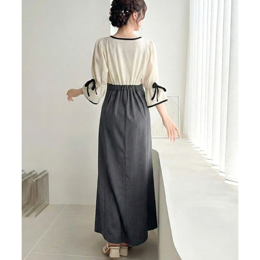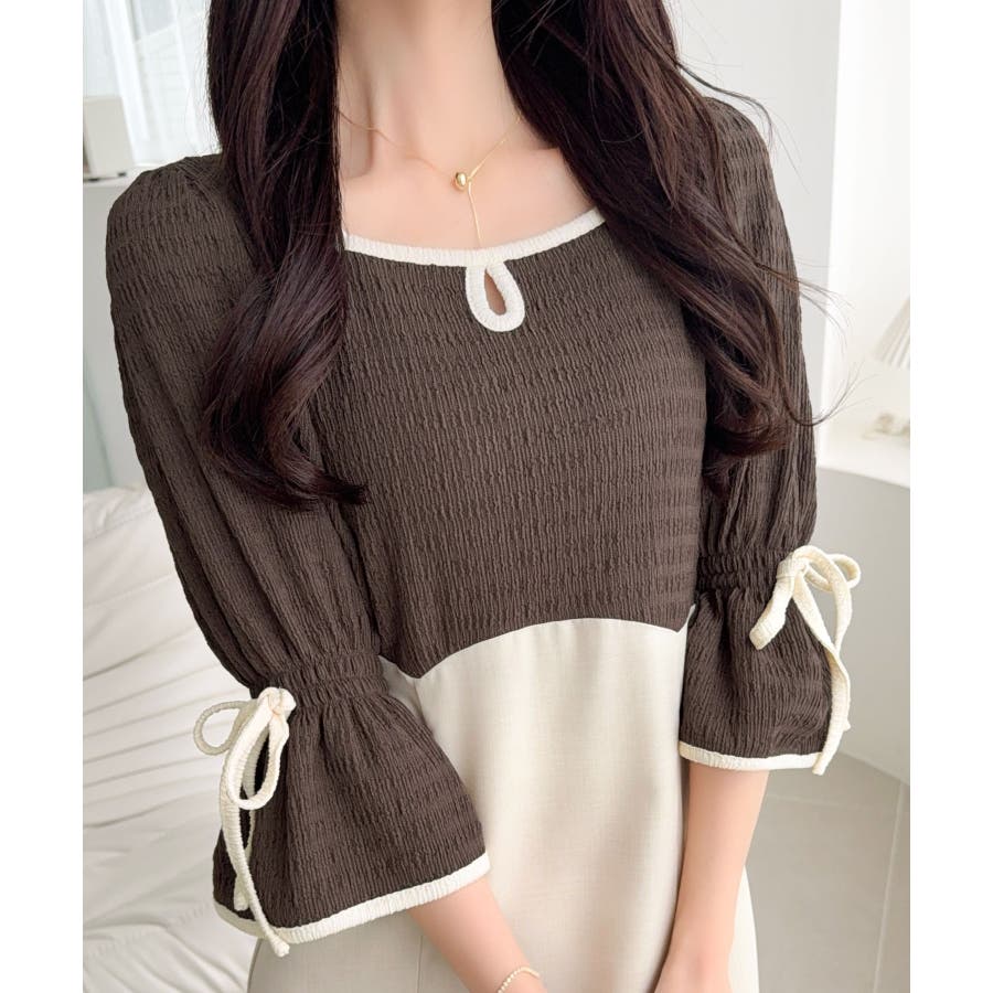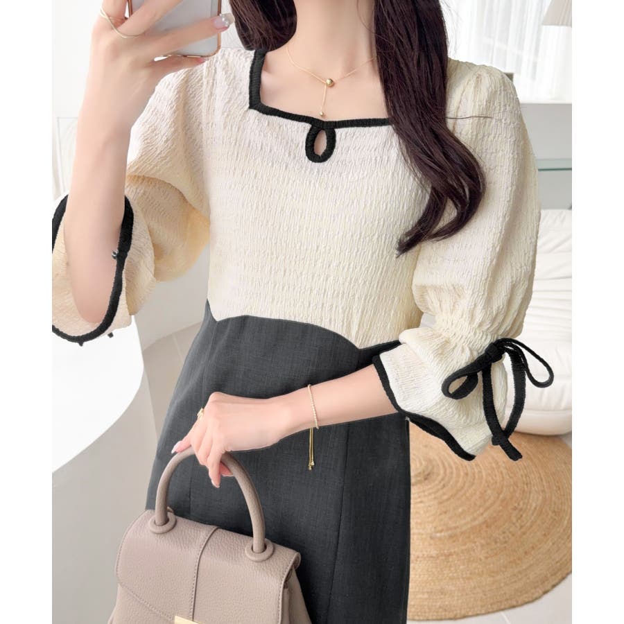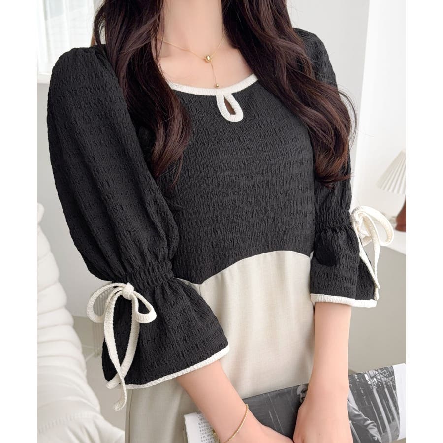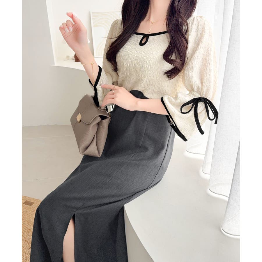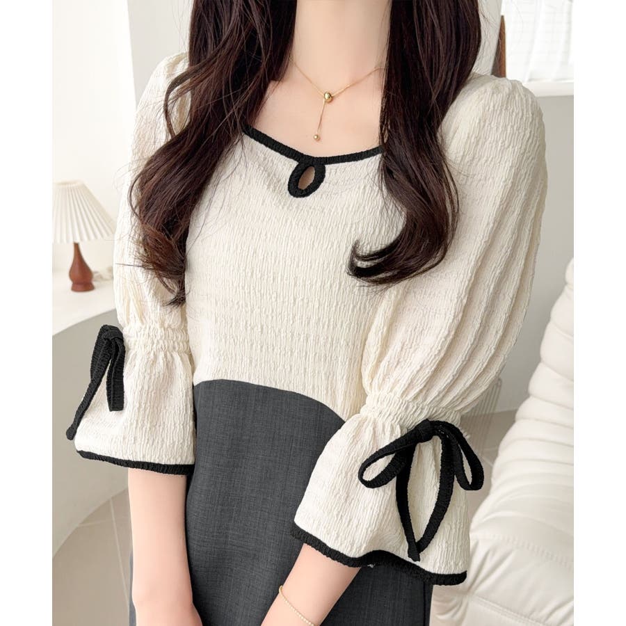【mily bilet】さりげないスリットにきゅん♪袖リボン付き配色パイピング異…