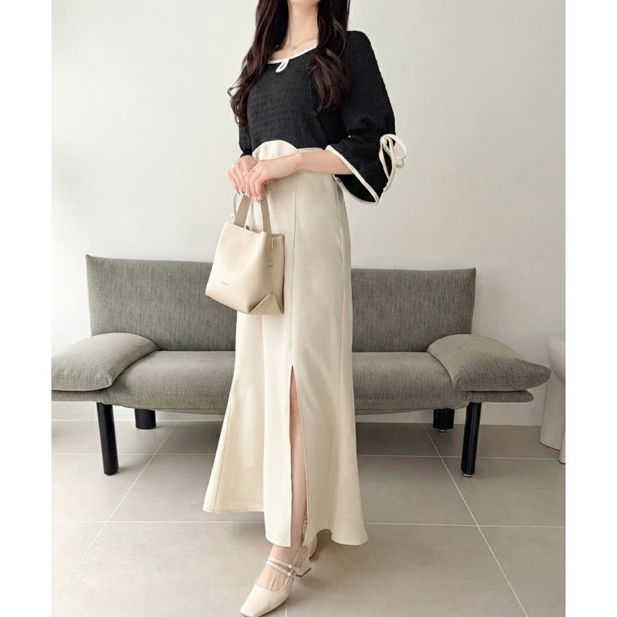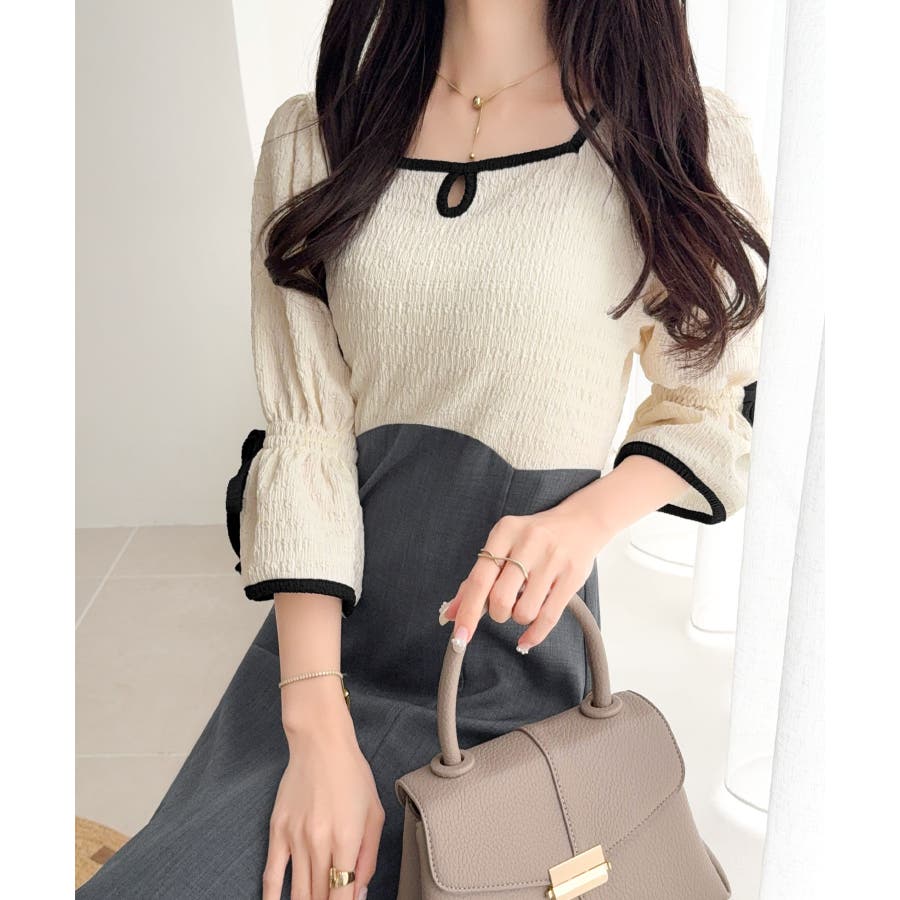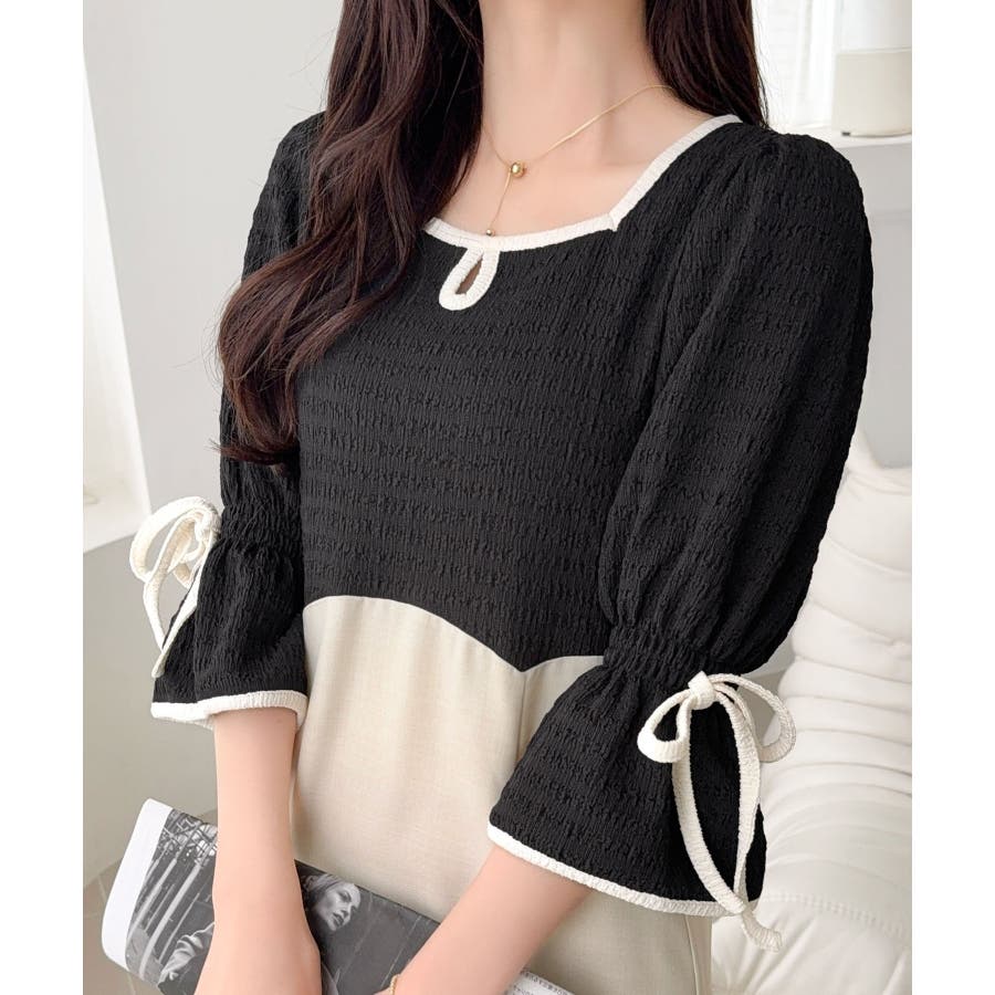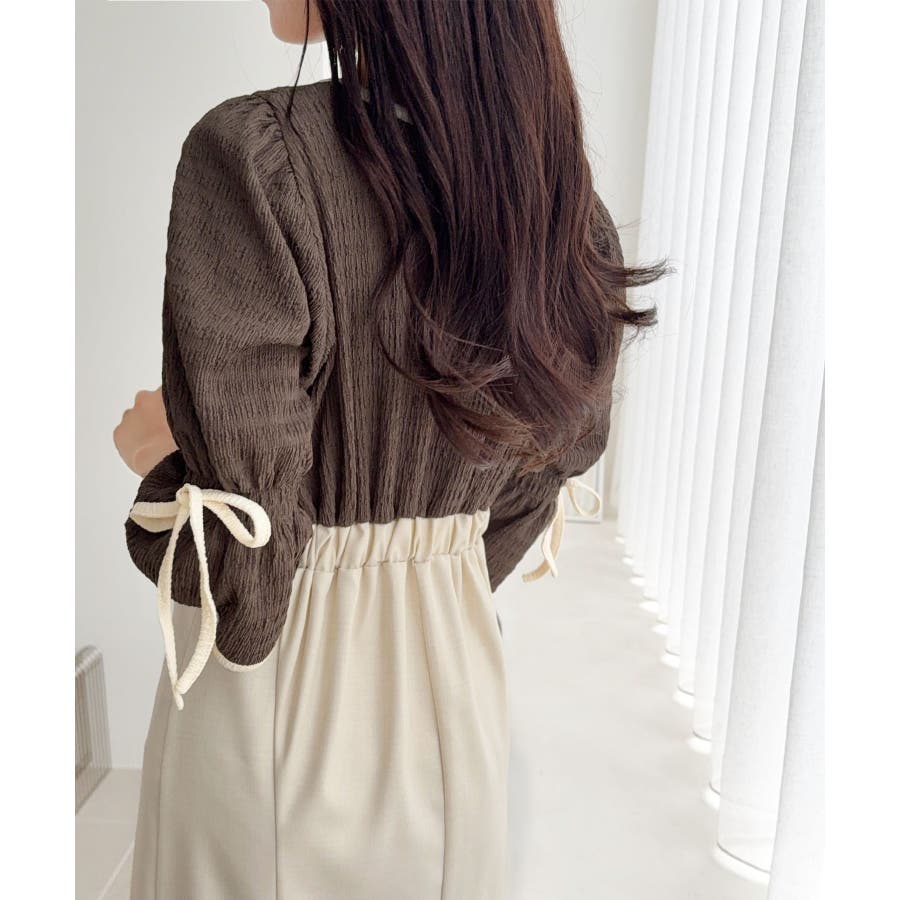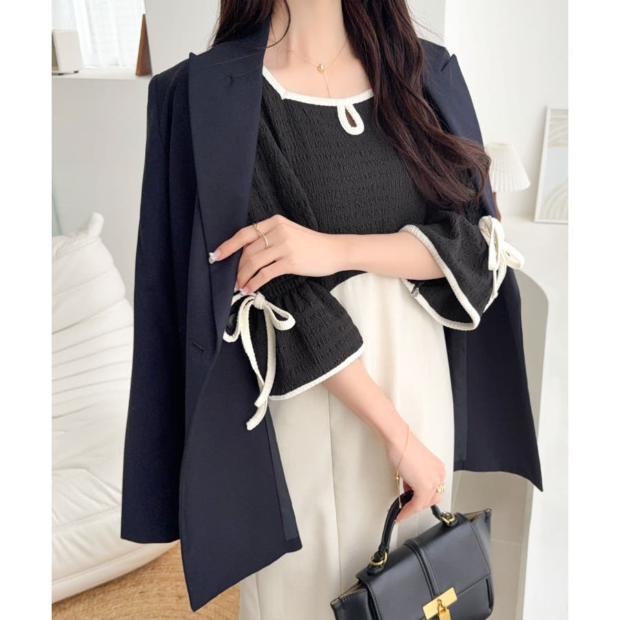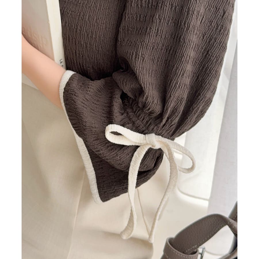 【mily bilet】さりげないスリットにきゅん♪袖リボン付き配色パイピング異…