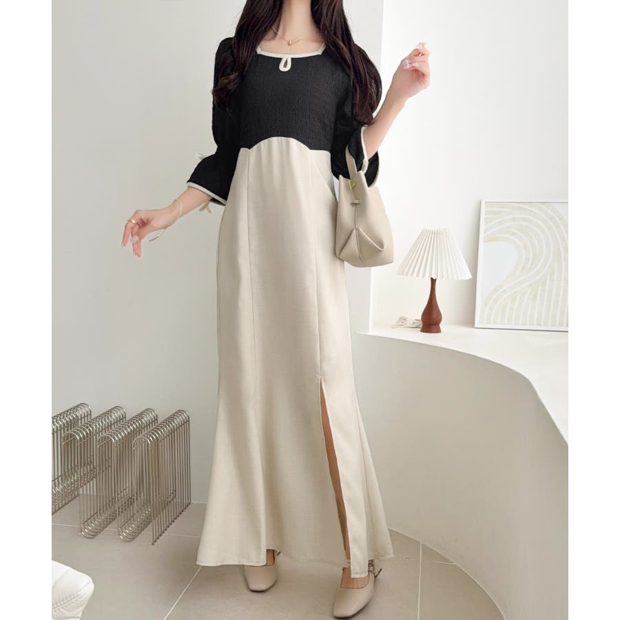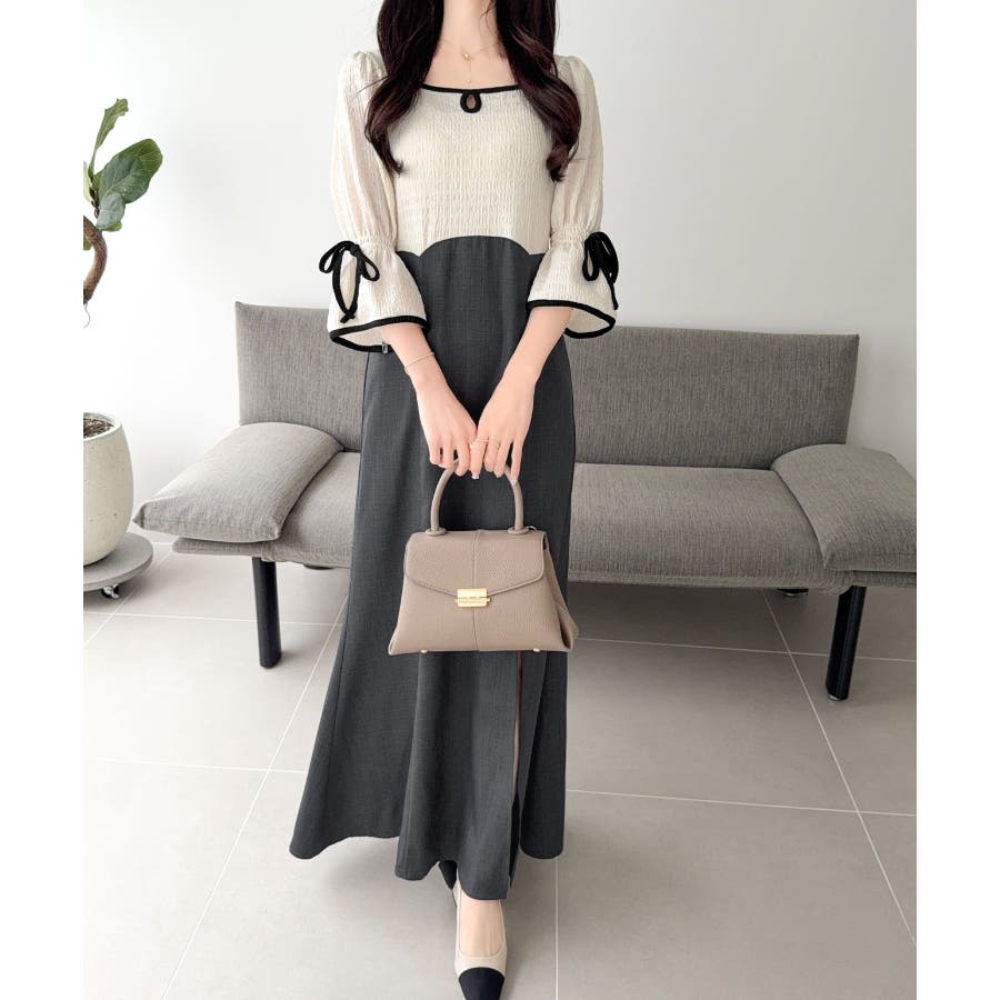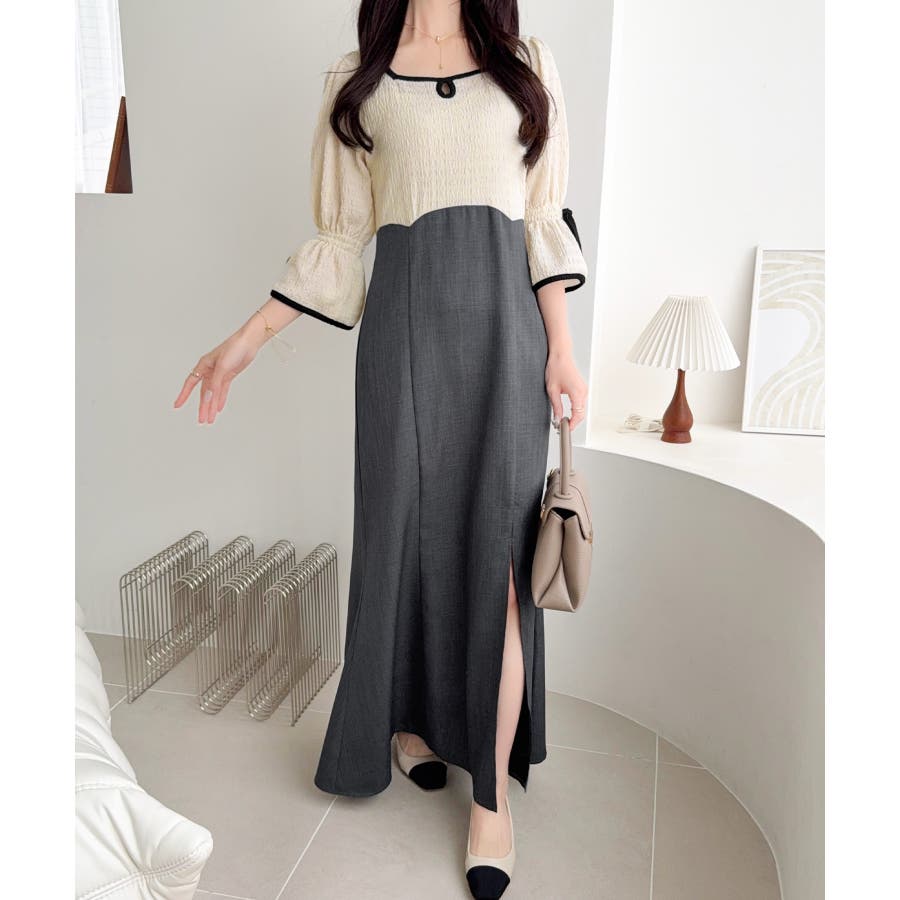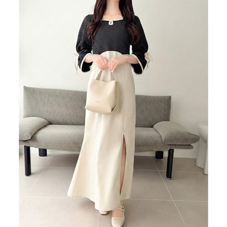 ハイウエスト切り替えのバイカラーでスタイルアップも叶うデザインが魅力的