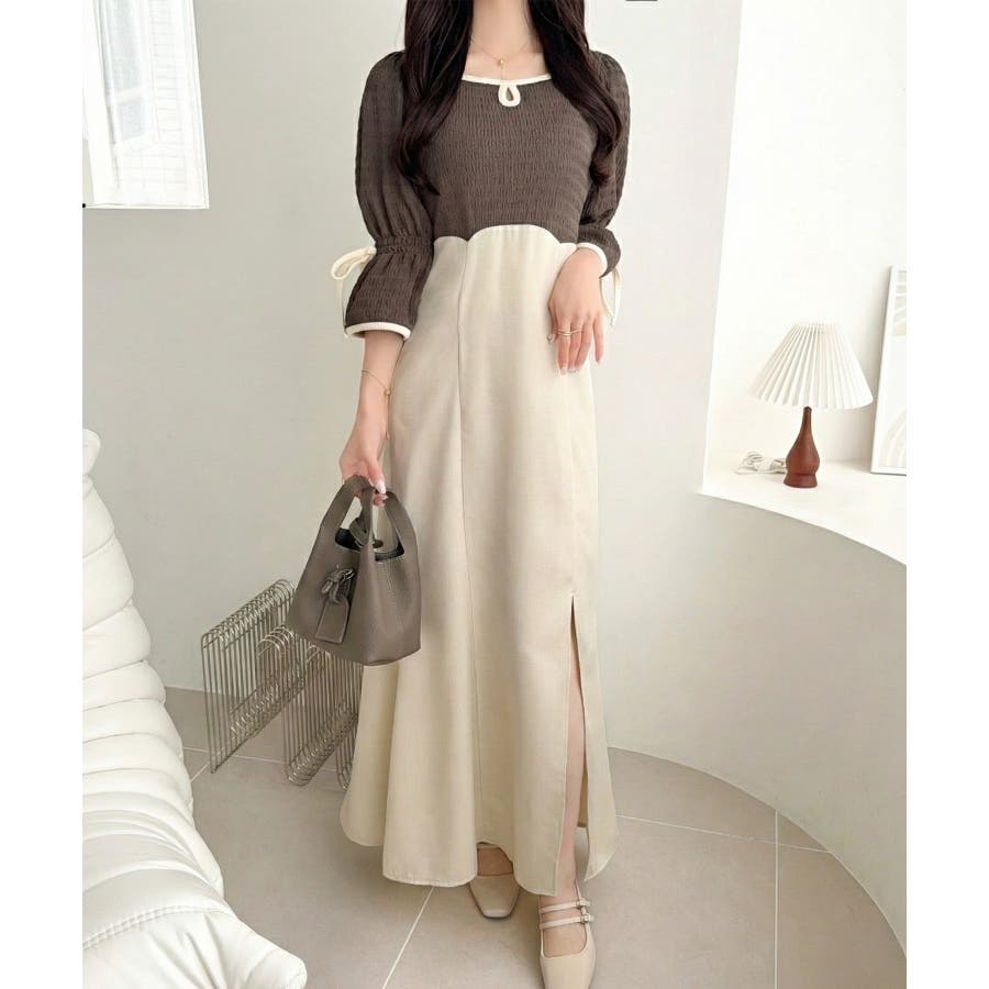 素材・配色・形にこだわり抜いた、主役級ドッキングワンピ。