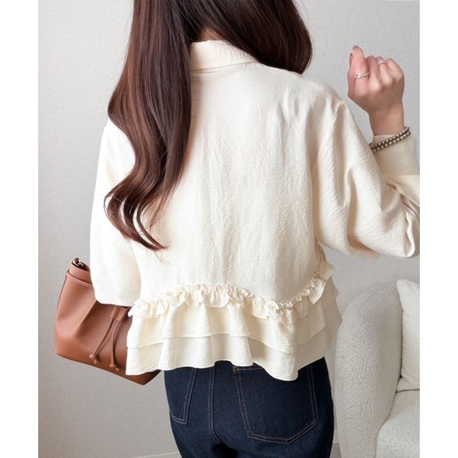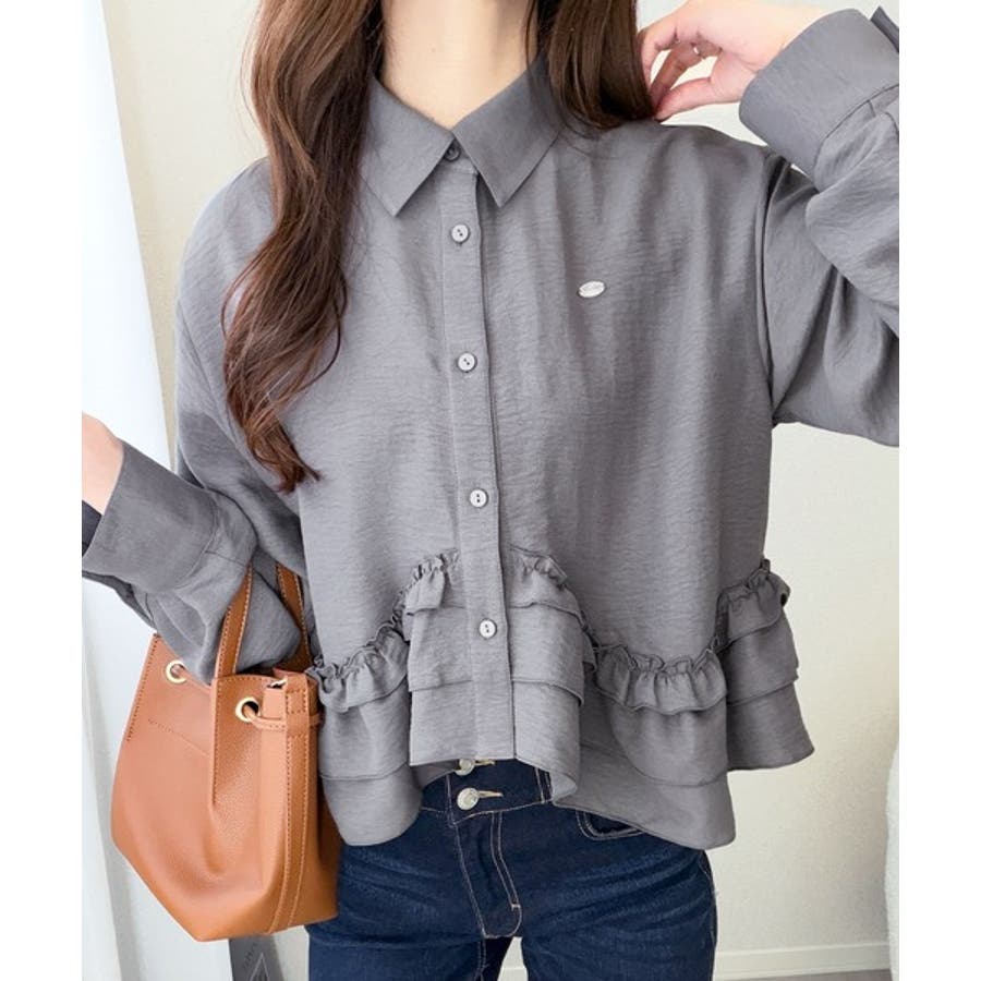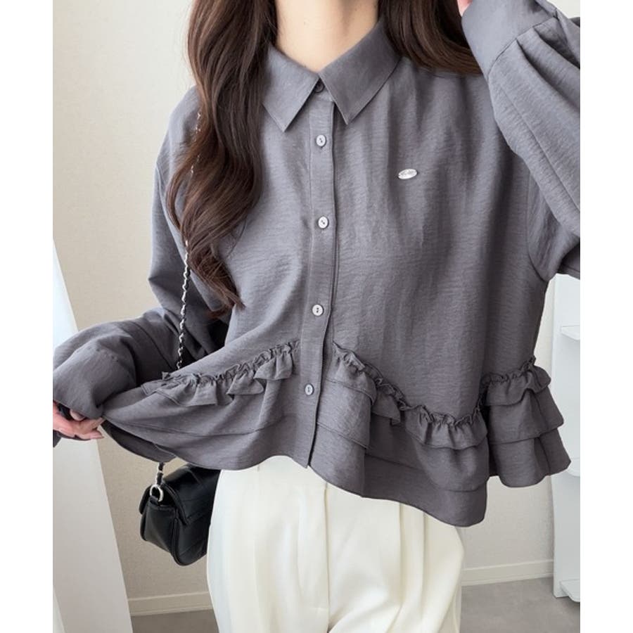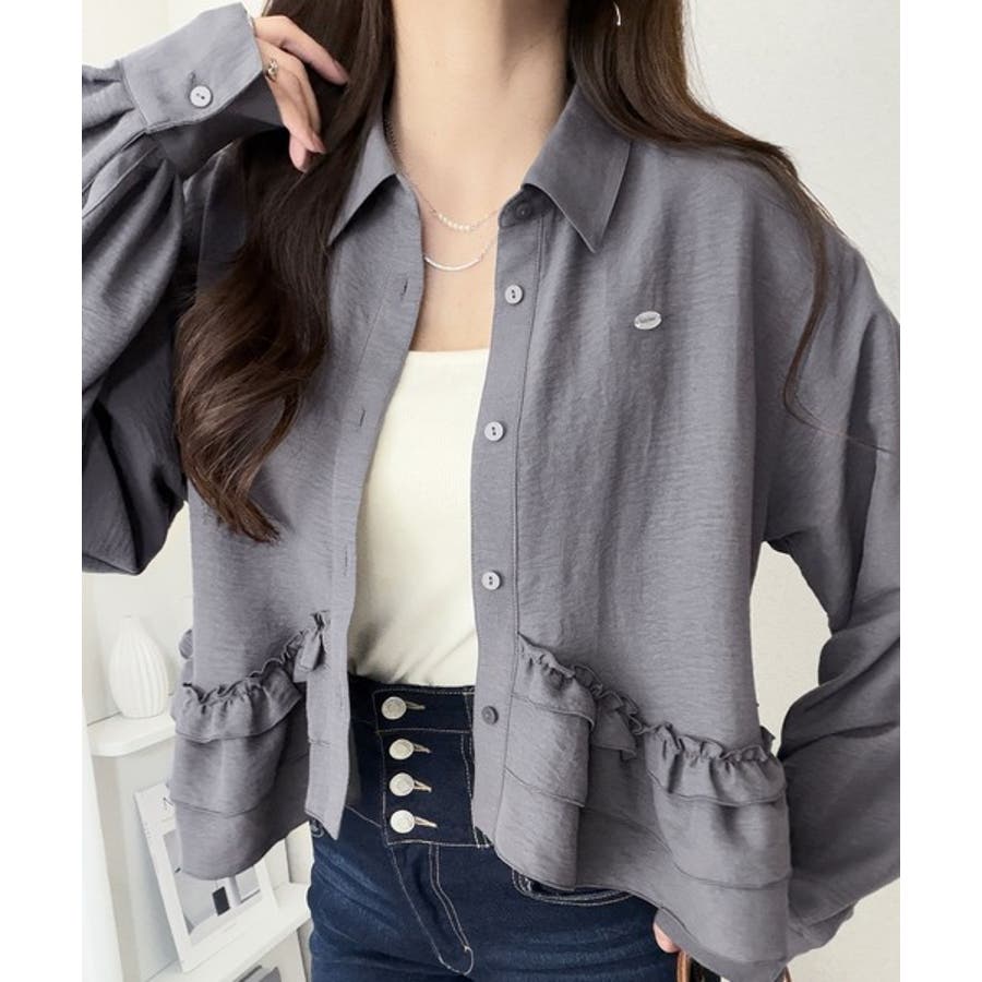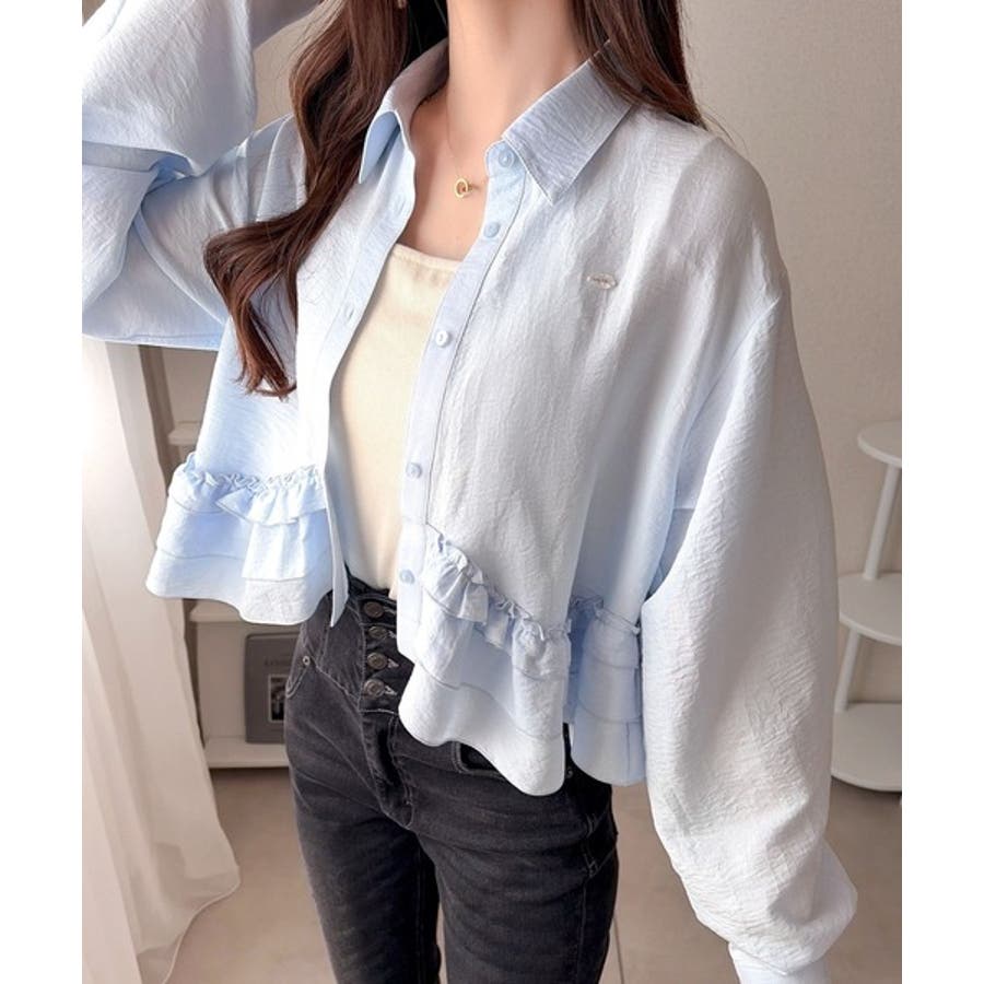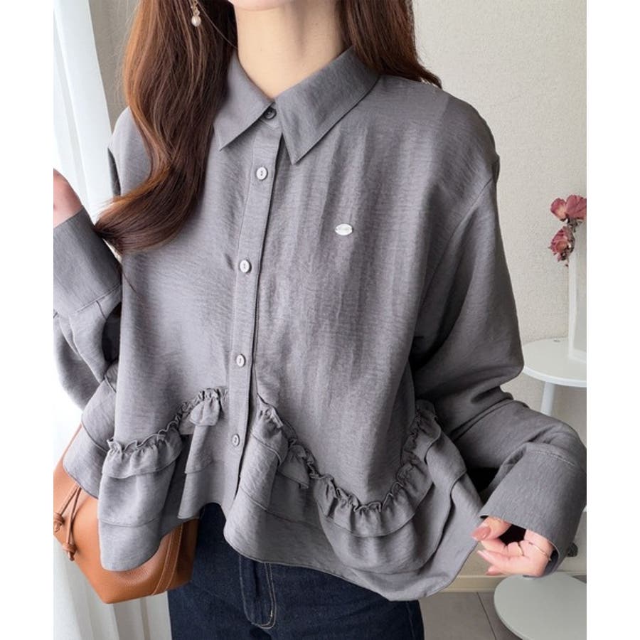 存在感のあるフリルが華やかで、一枚でサマになるシャツブラウス。