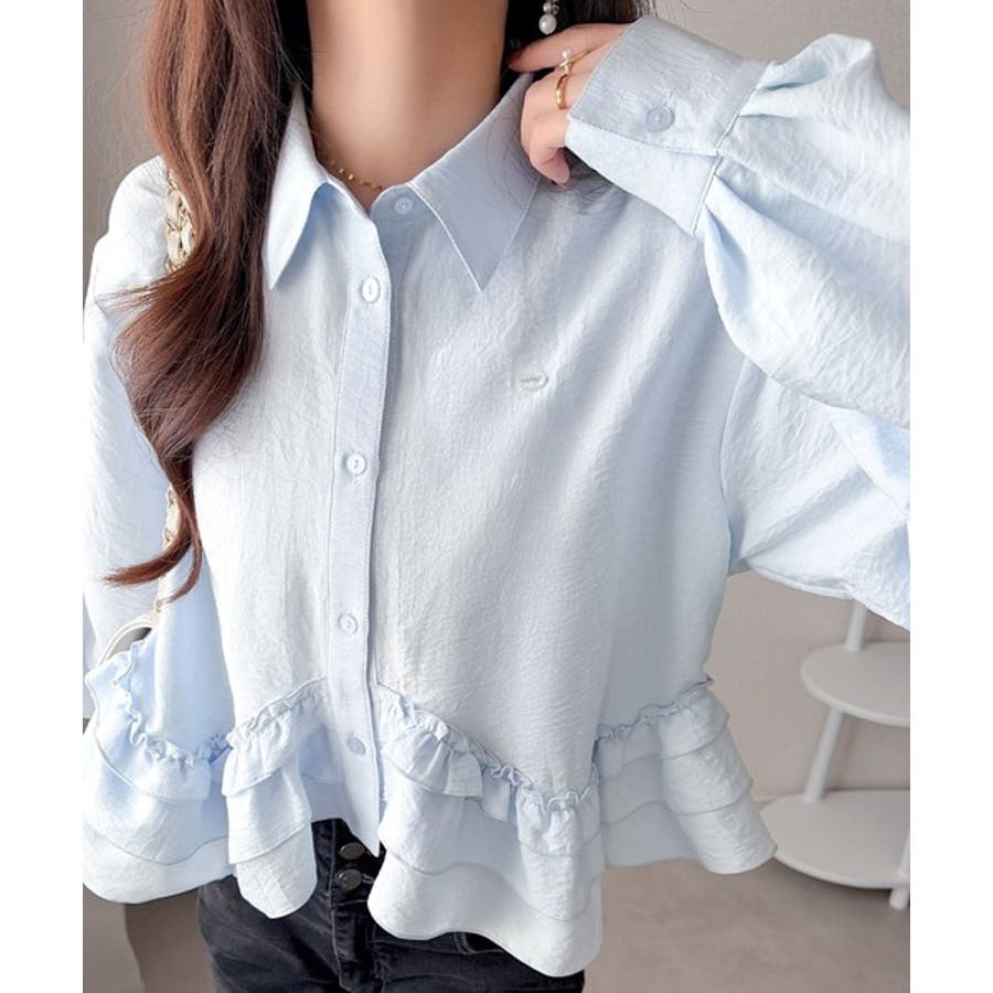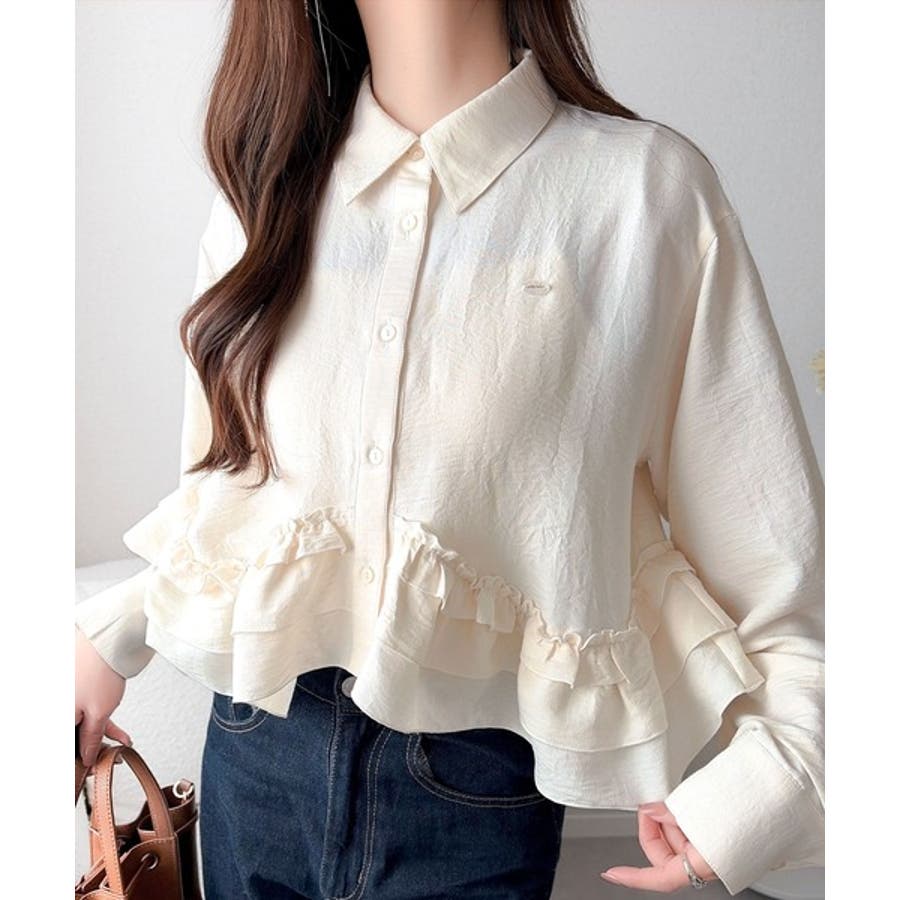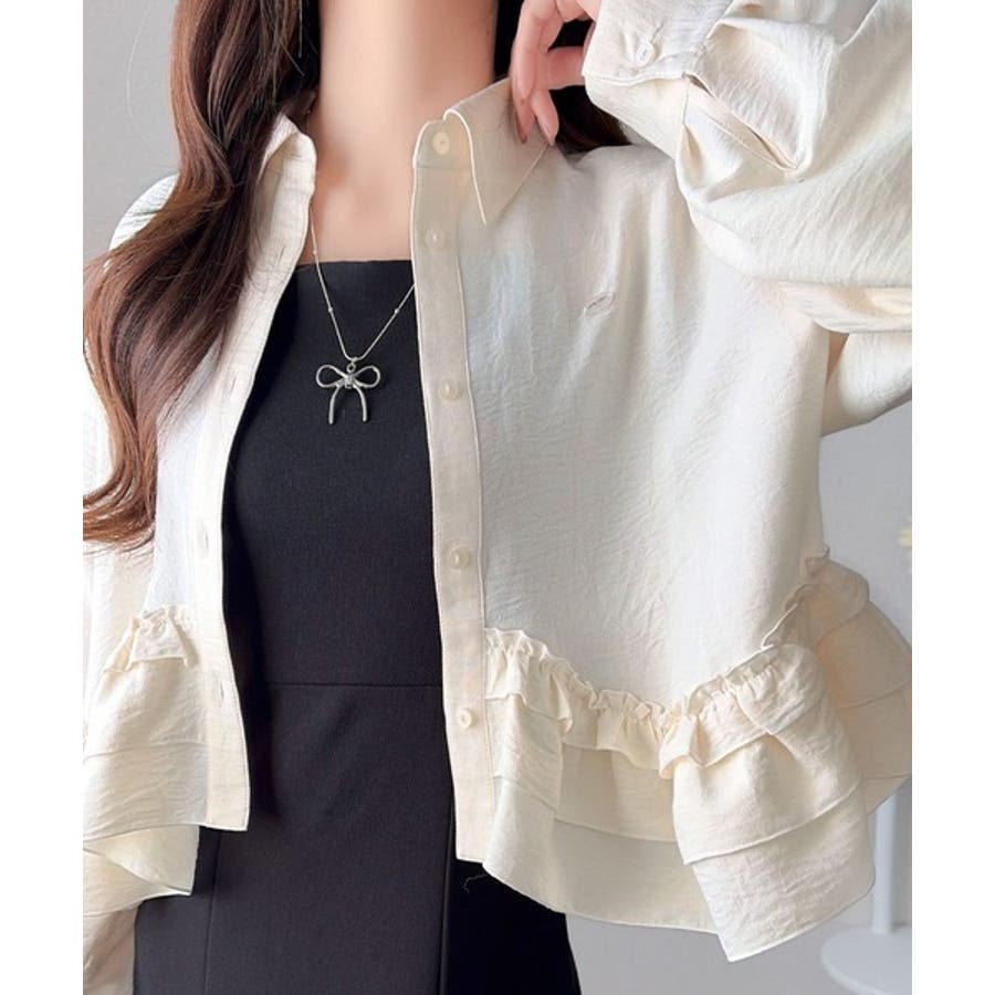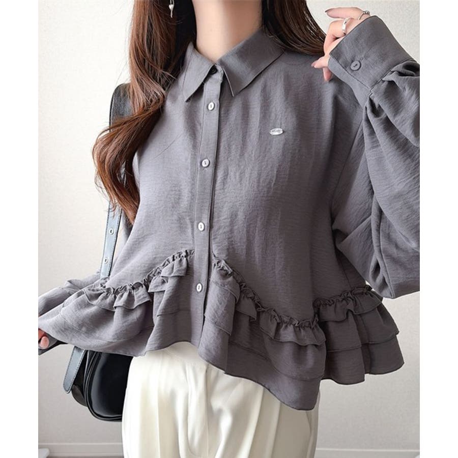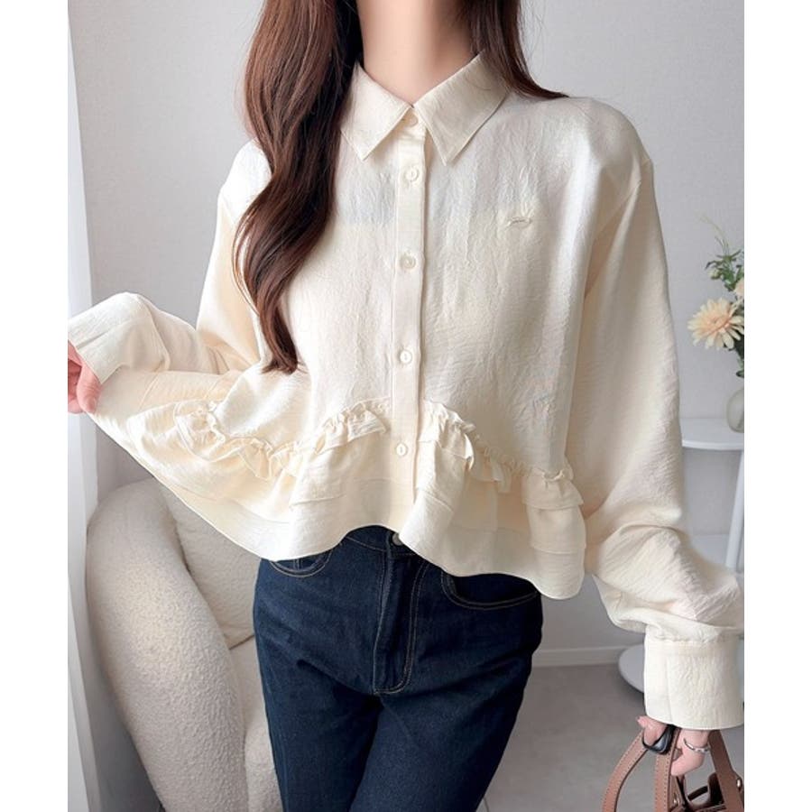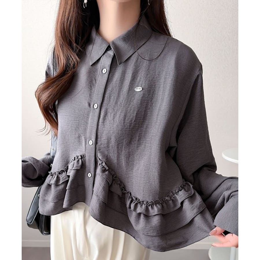 存在感のあるフリルが華やかで、一枚でサマになるシャツブラウス。