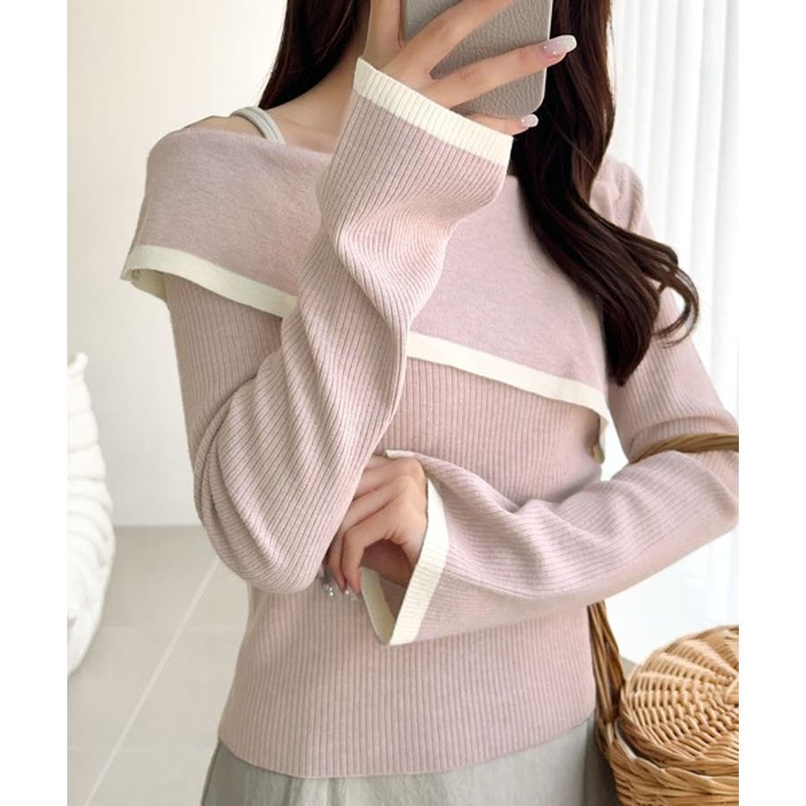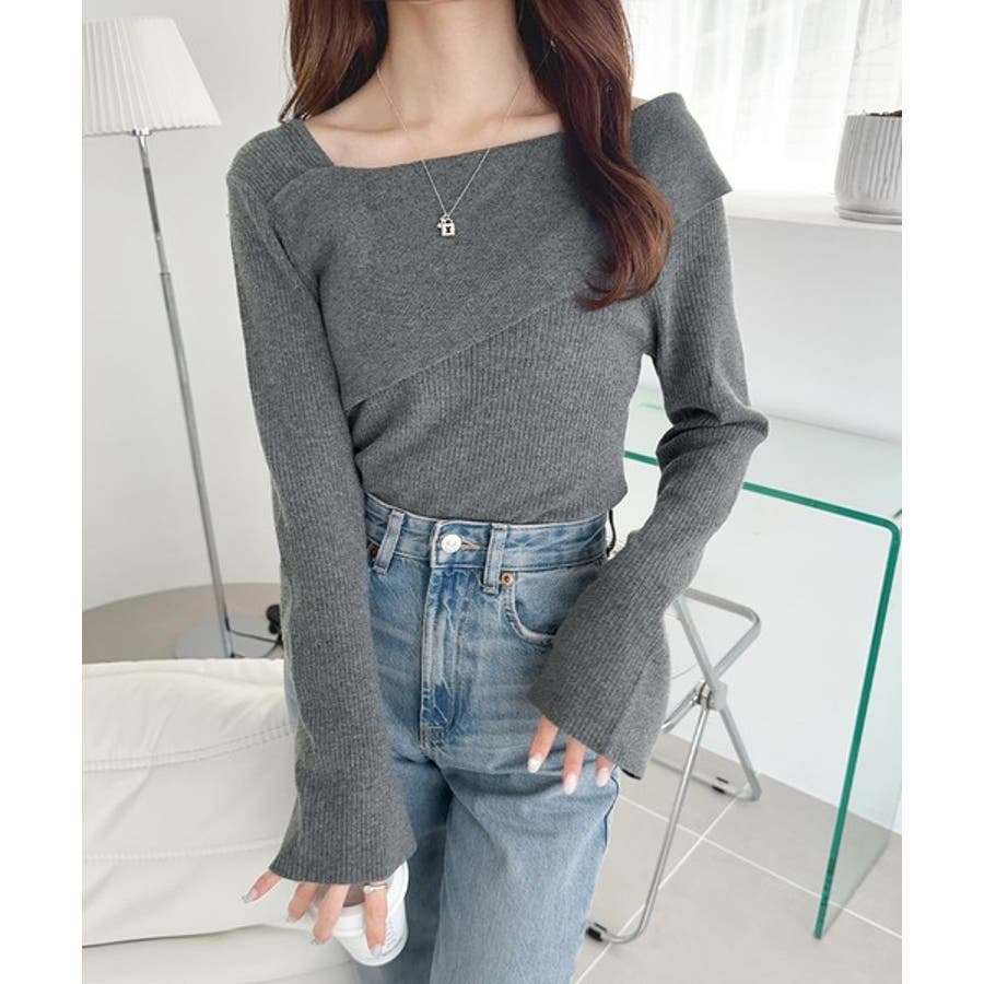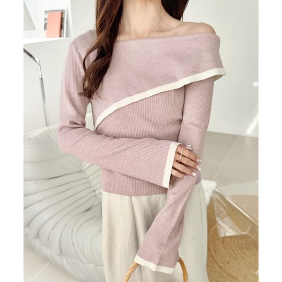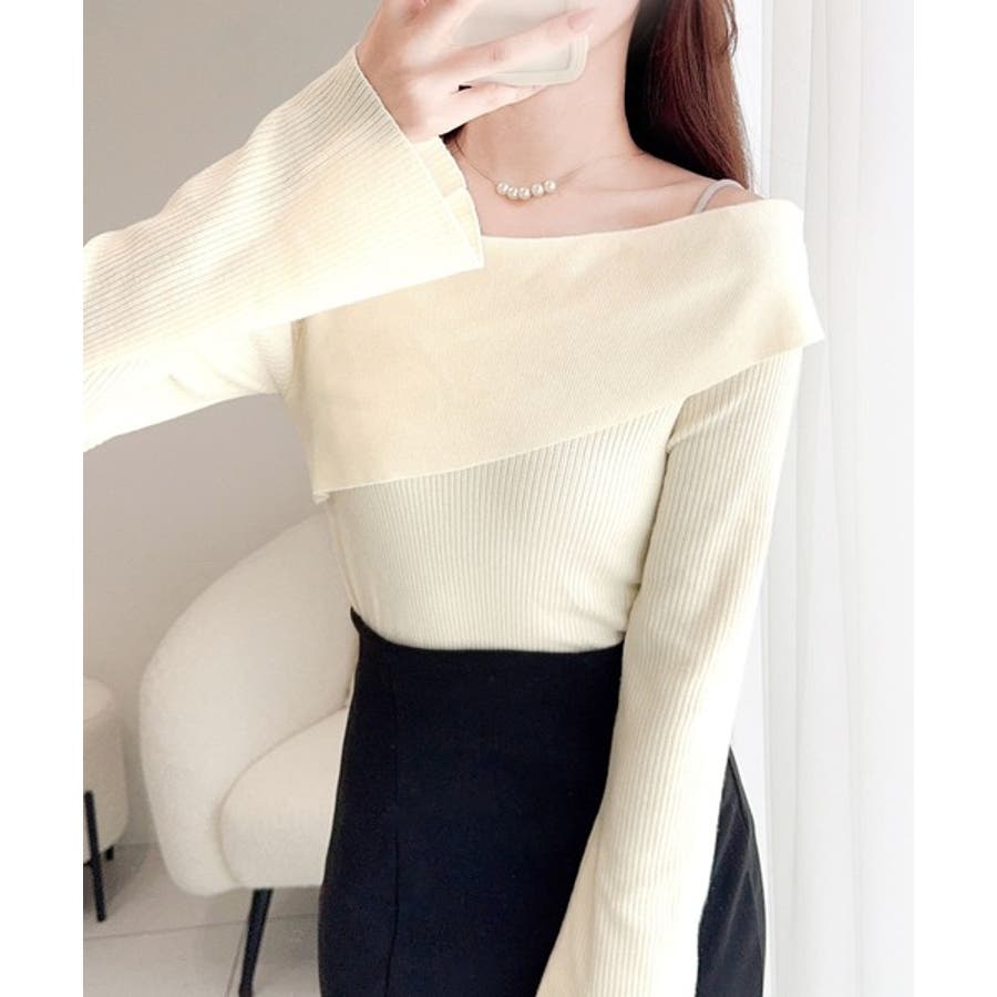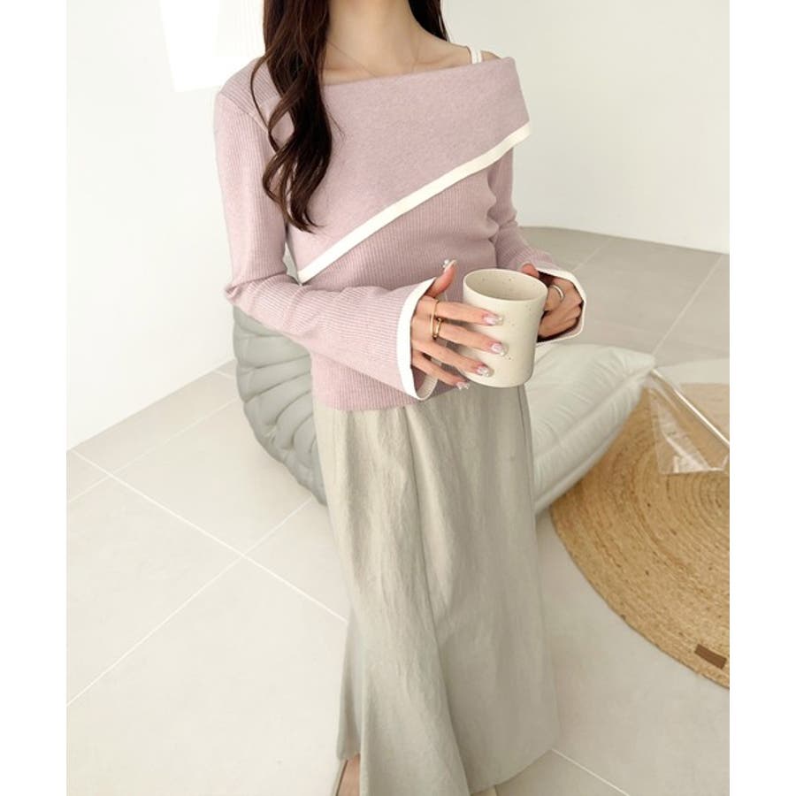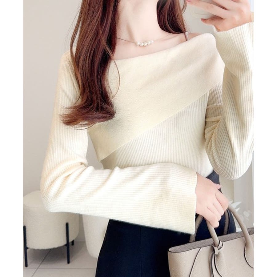 2WAYアシンメトリーオフショルダーリブニットの登場。