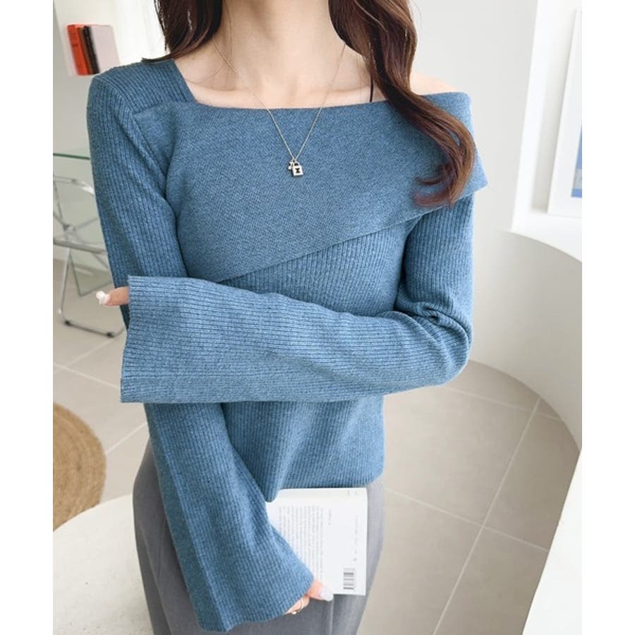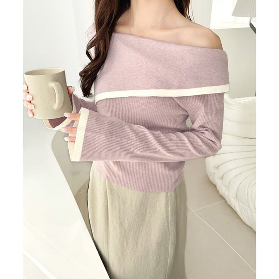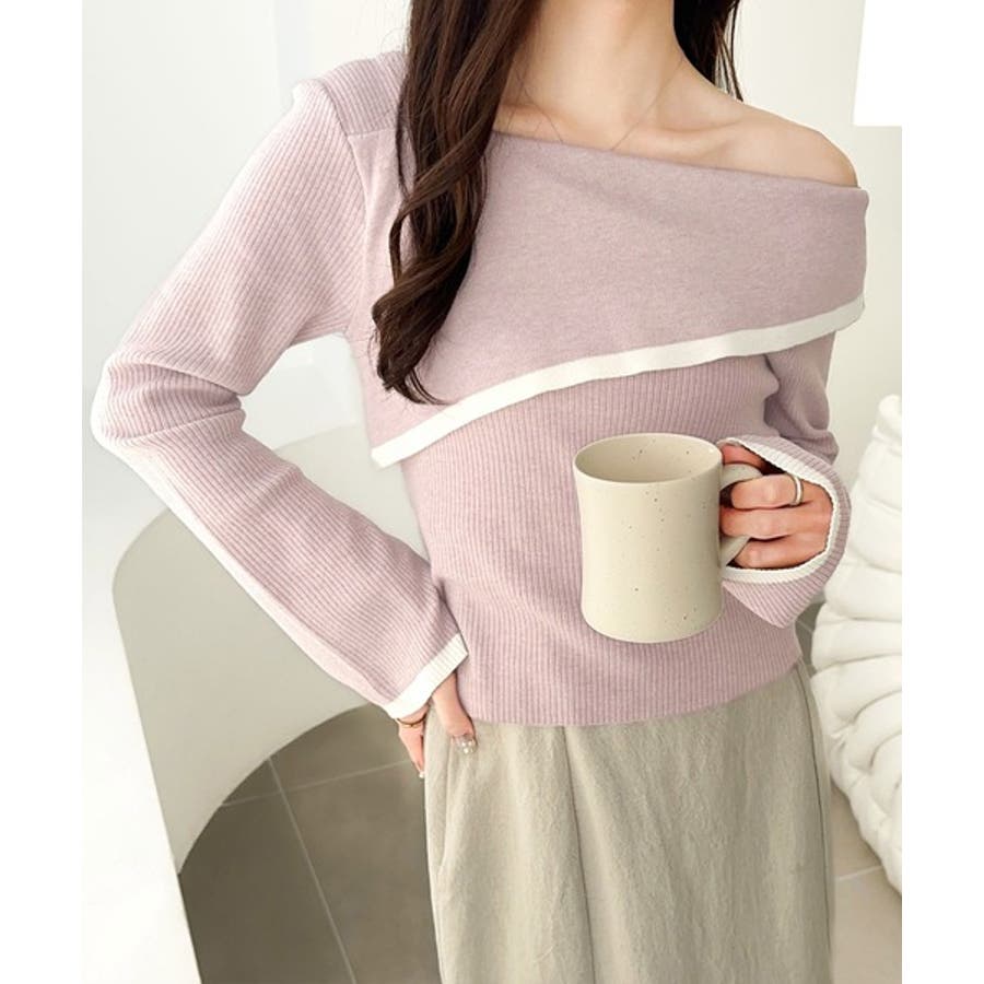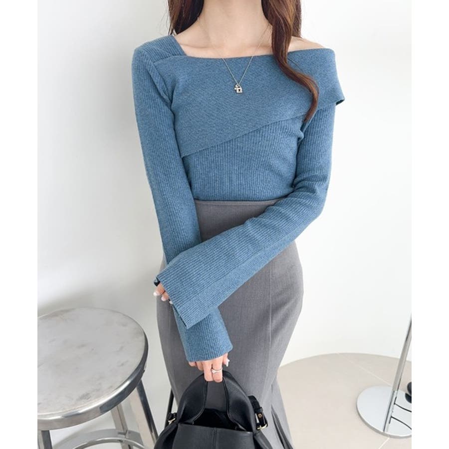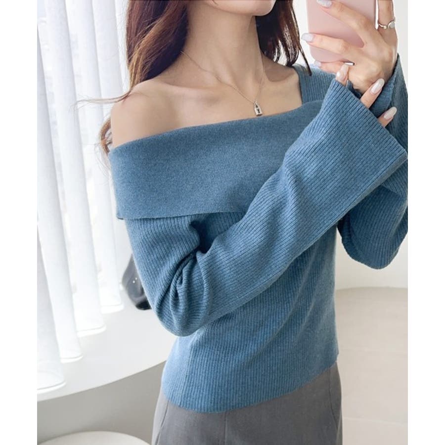 2WAYアシンメトリーオフショルダーリブニットは、