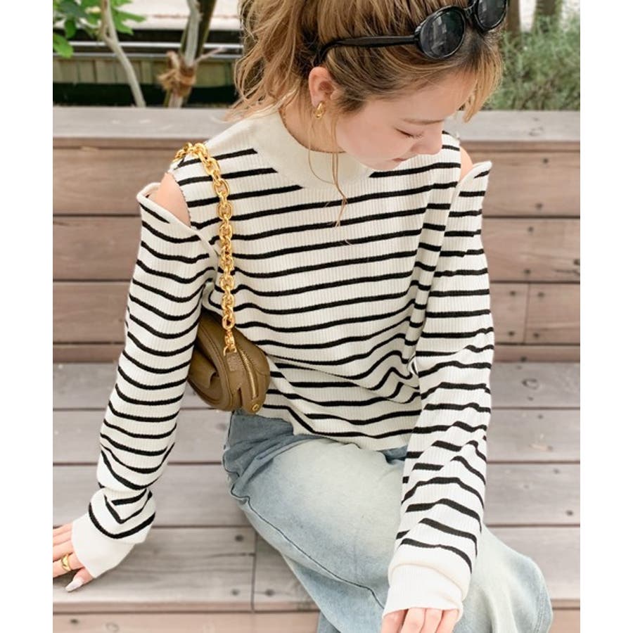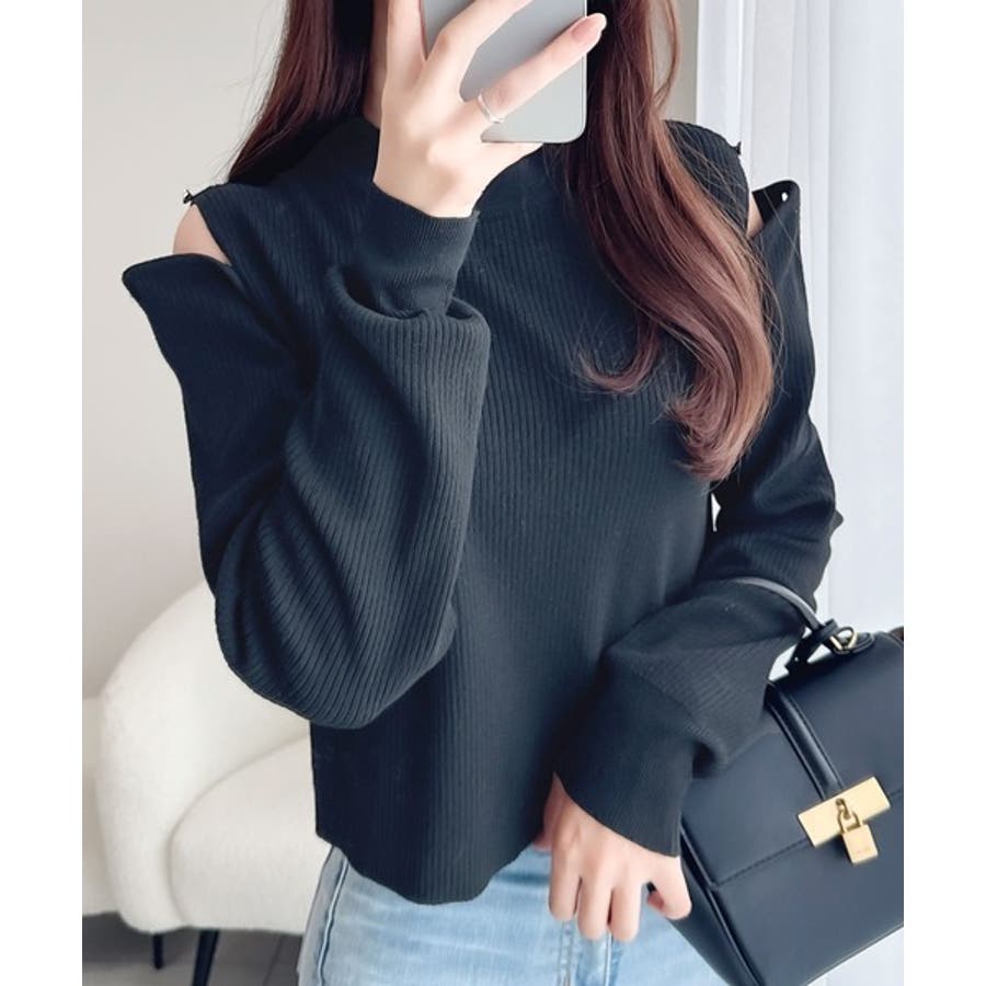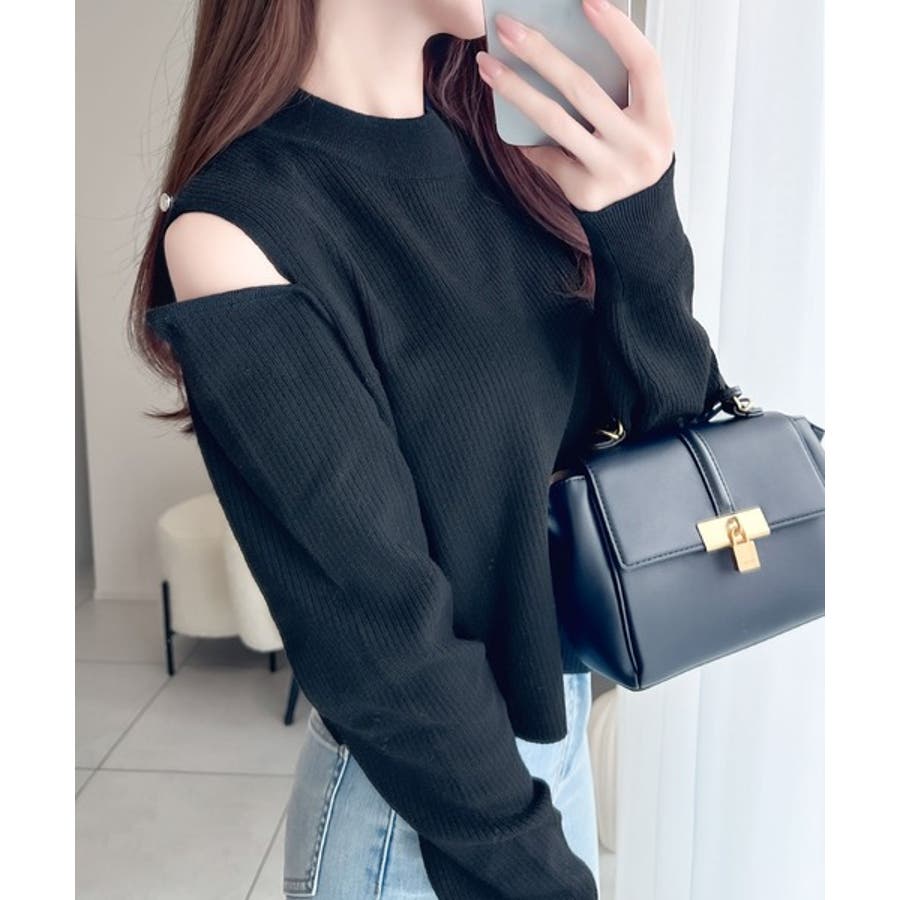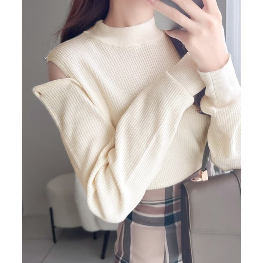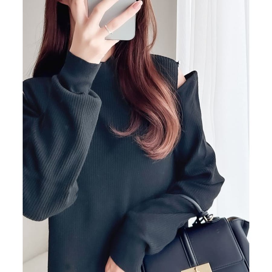 【mily bilet】秋冬も肌見せ。2wayオープンショルダーリブニットトップ…