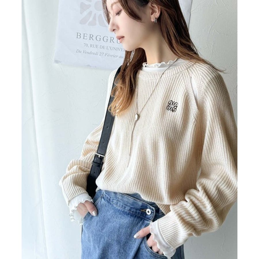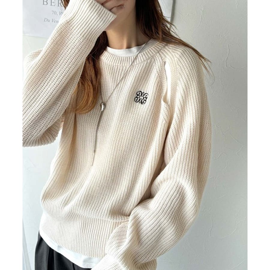 ヴィンテージライクな刺繍が映えるニットトップス。