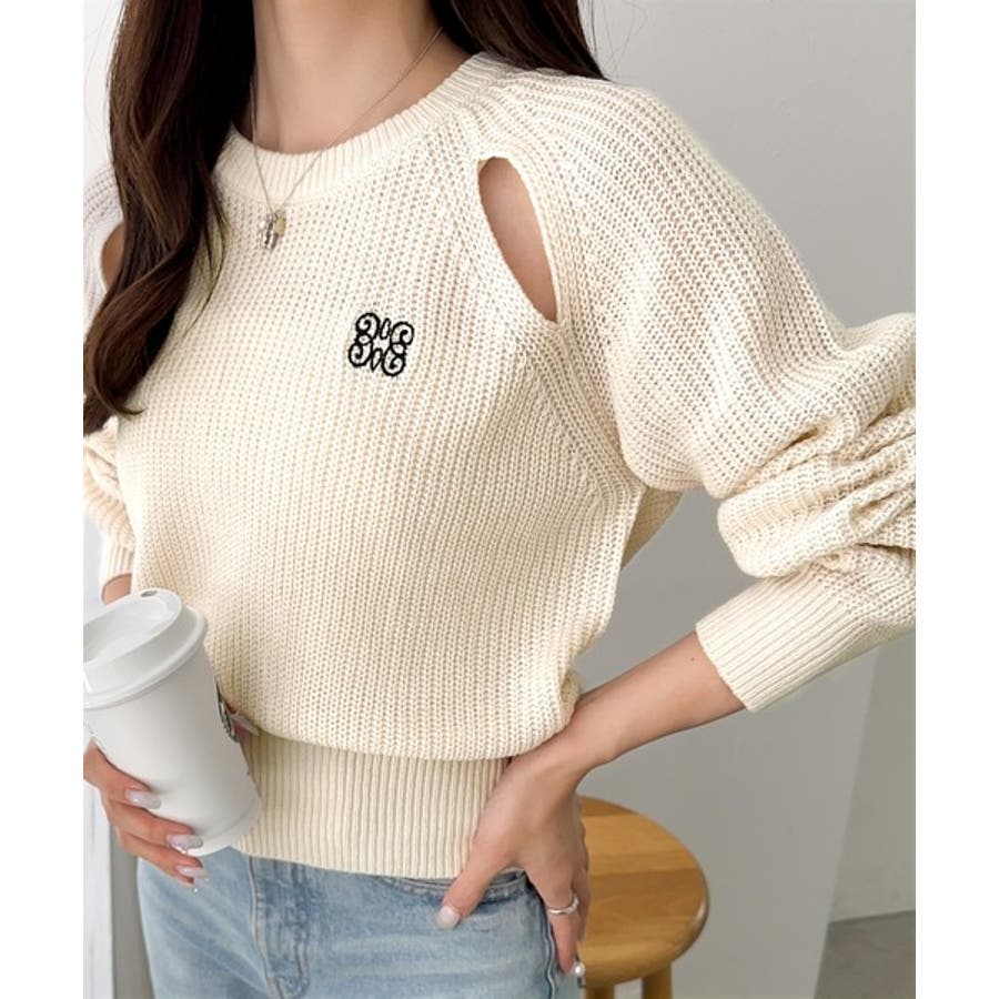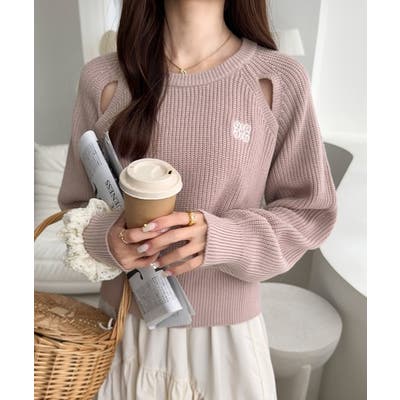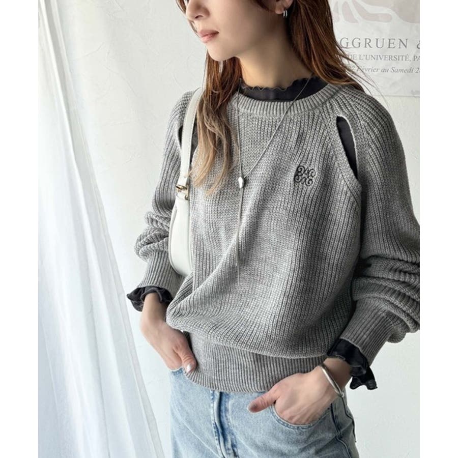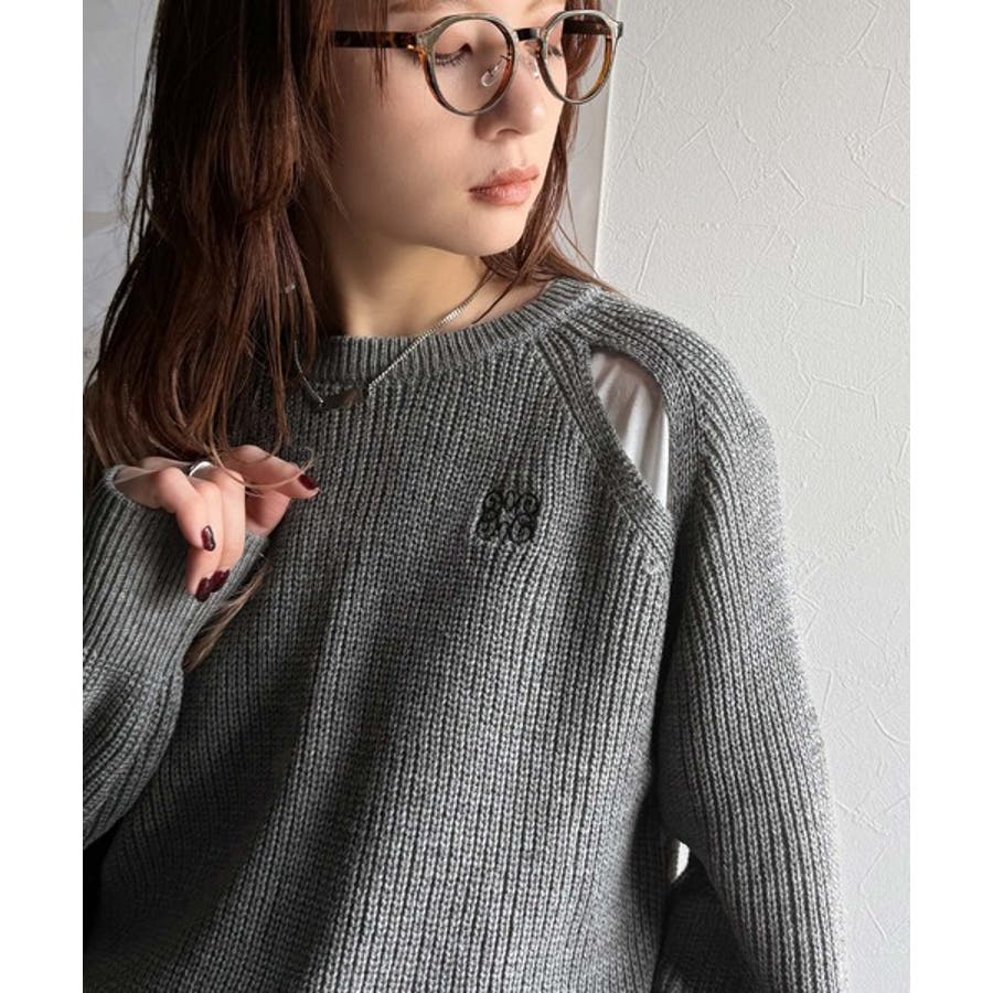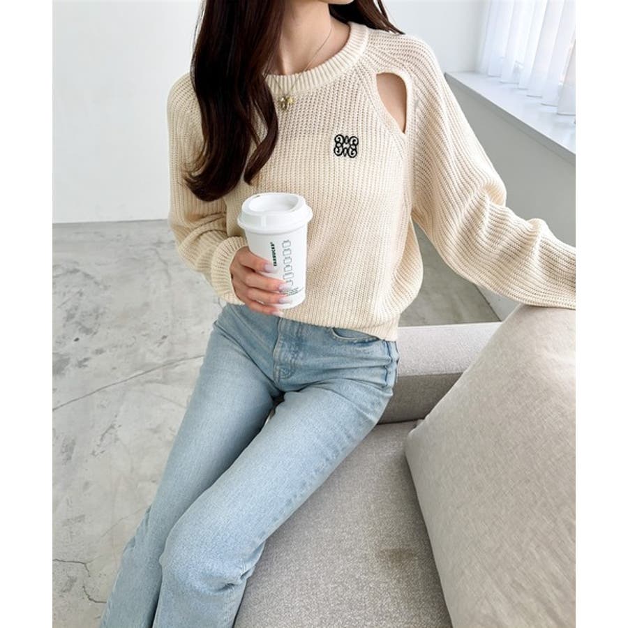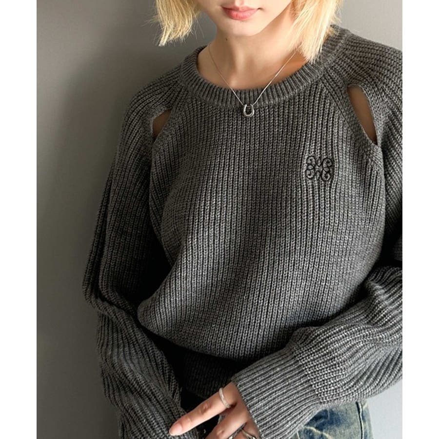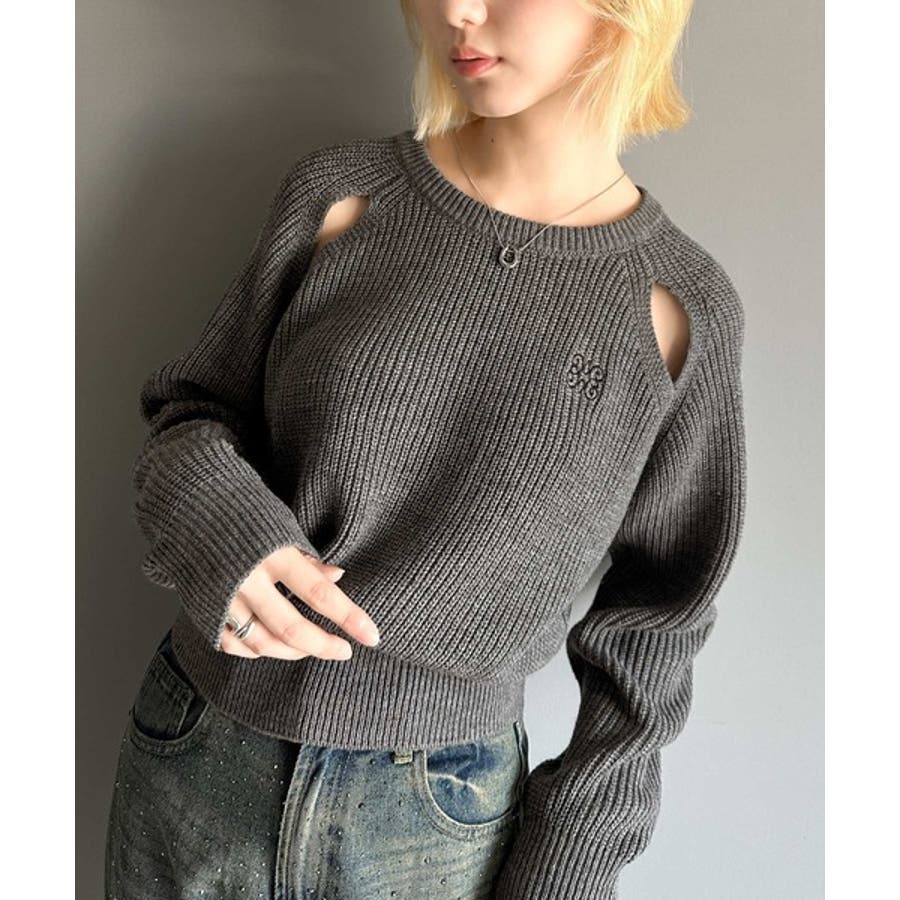 ヘルシーな肌見せで抜け感をプラス。肩スリット胸刺ニットプルオーバー