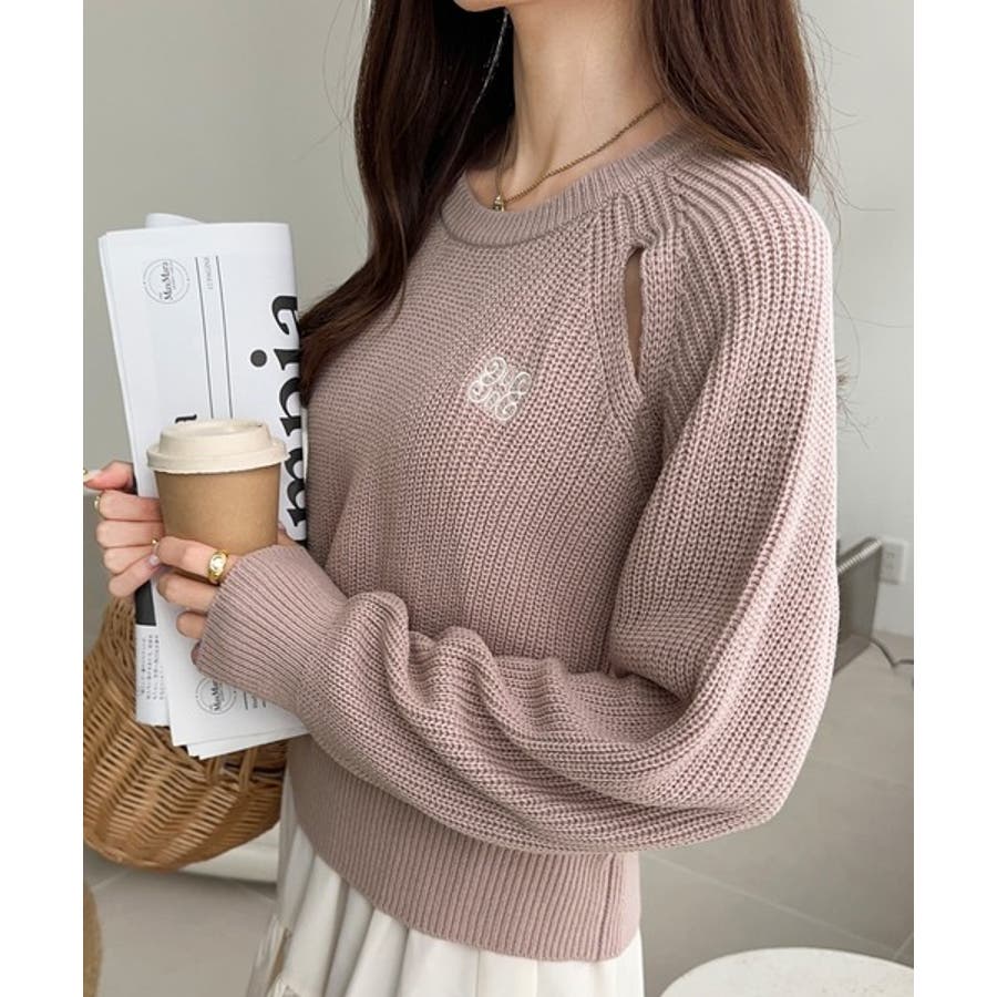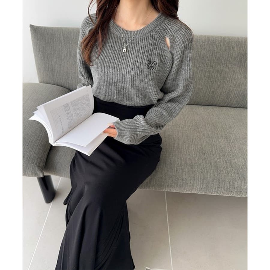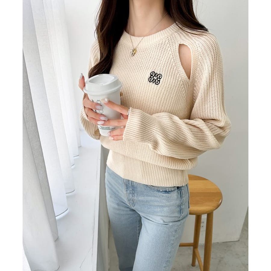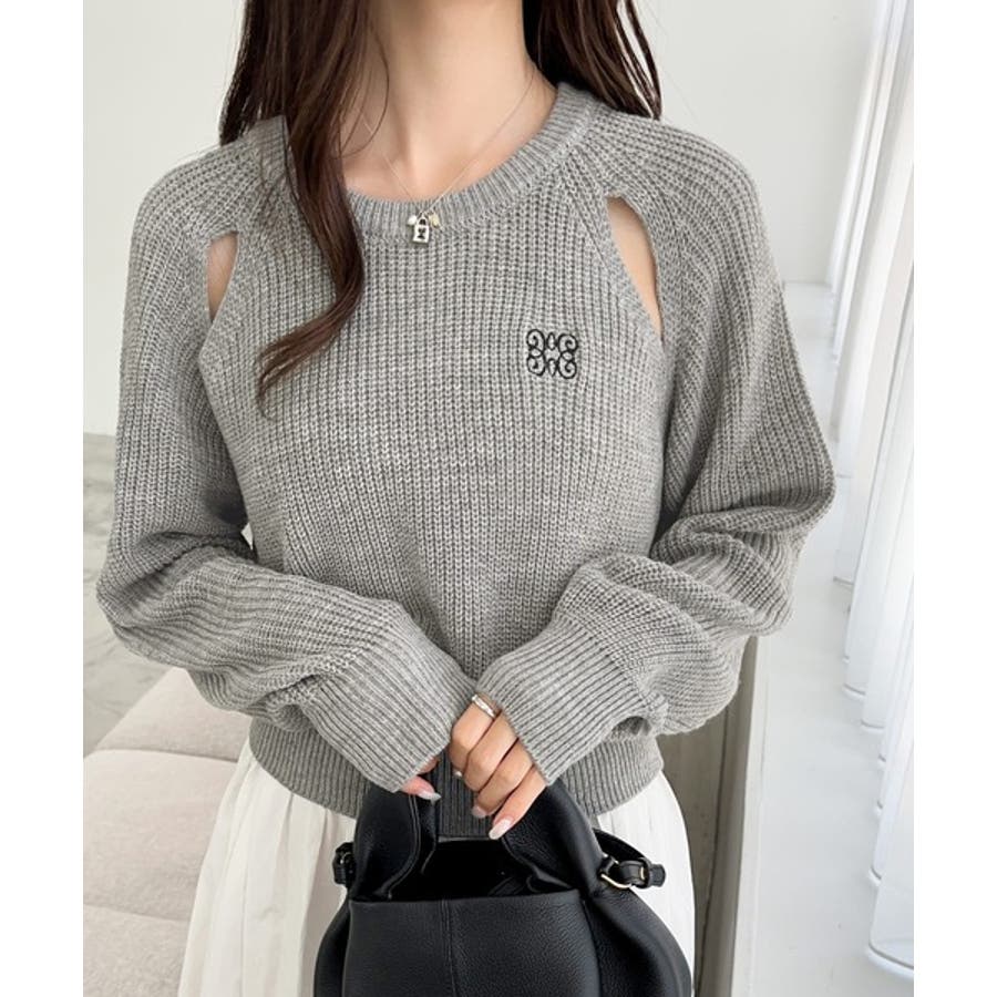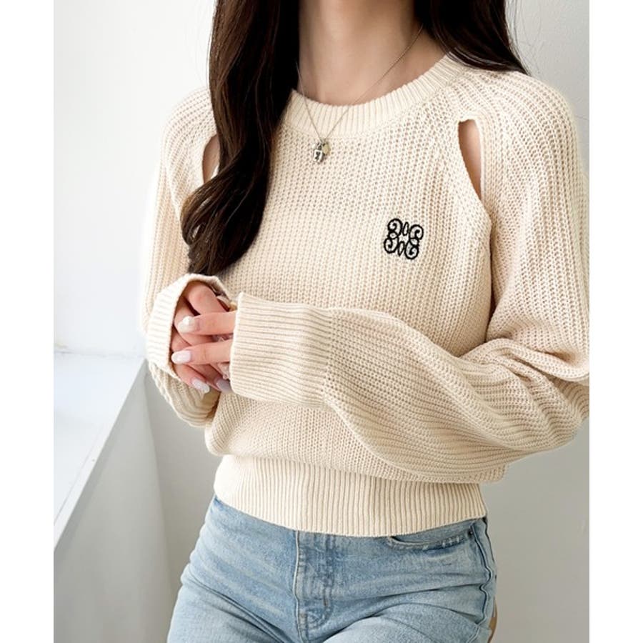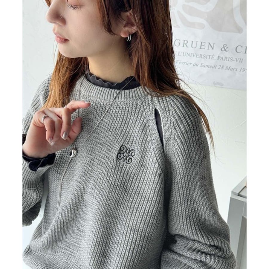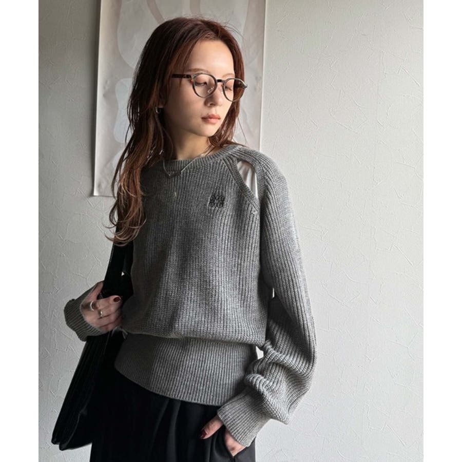 ヘルシーな肌見せで抜け感をプラス。肩スリット胸刺ニットプルオーバー