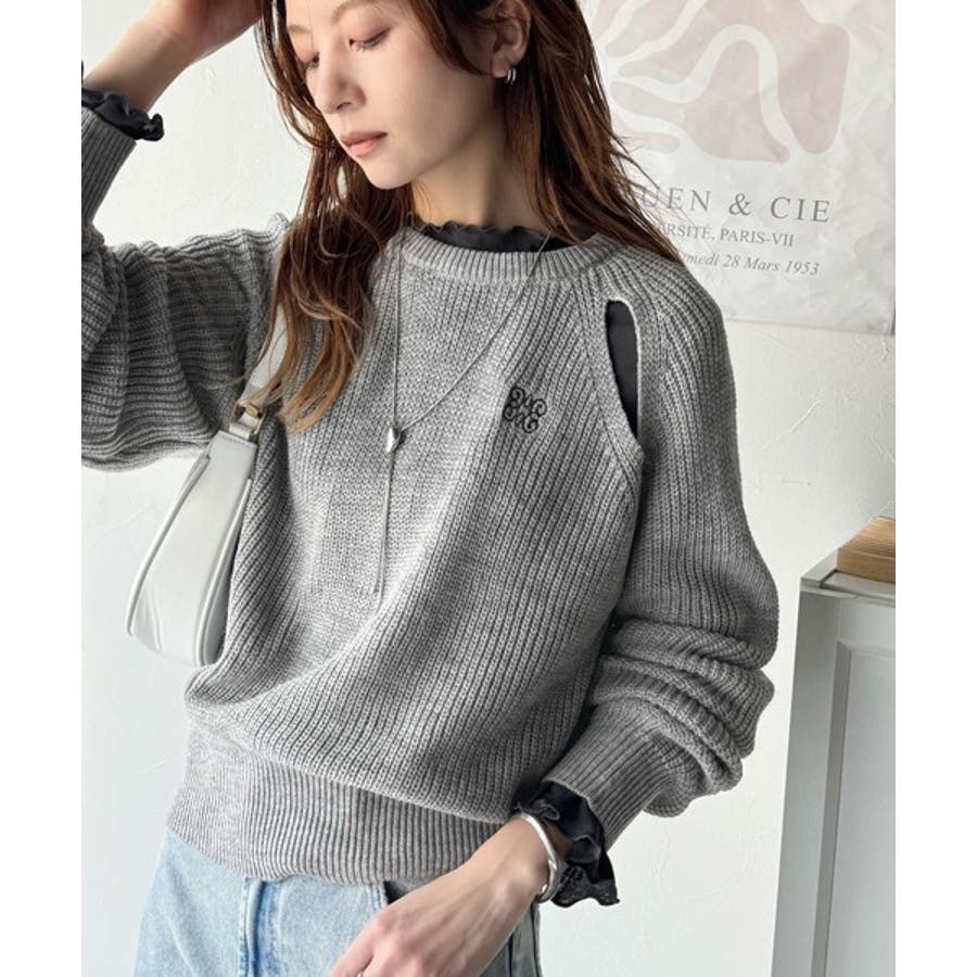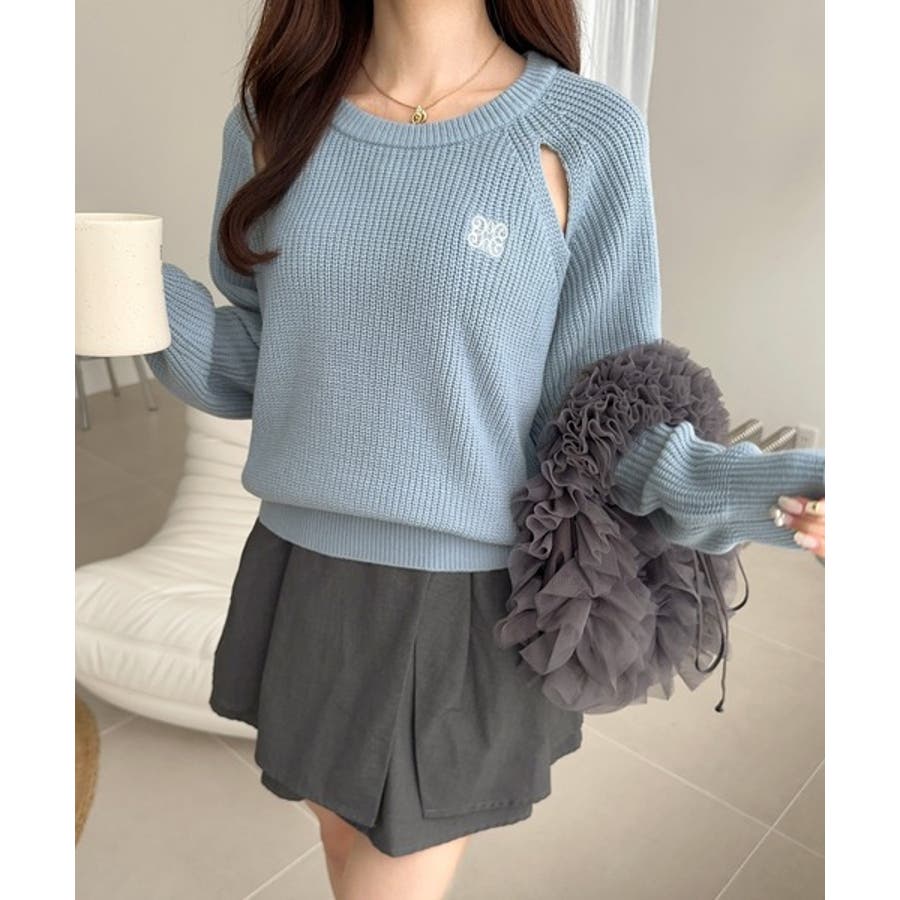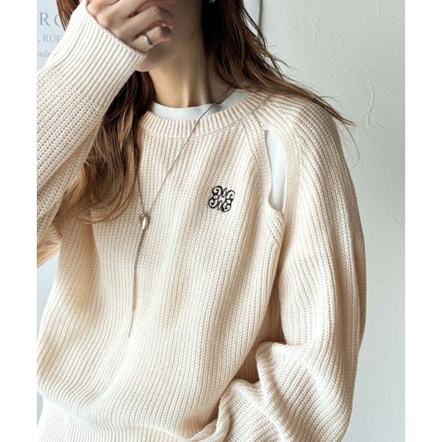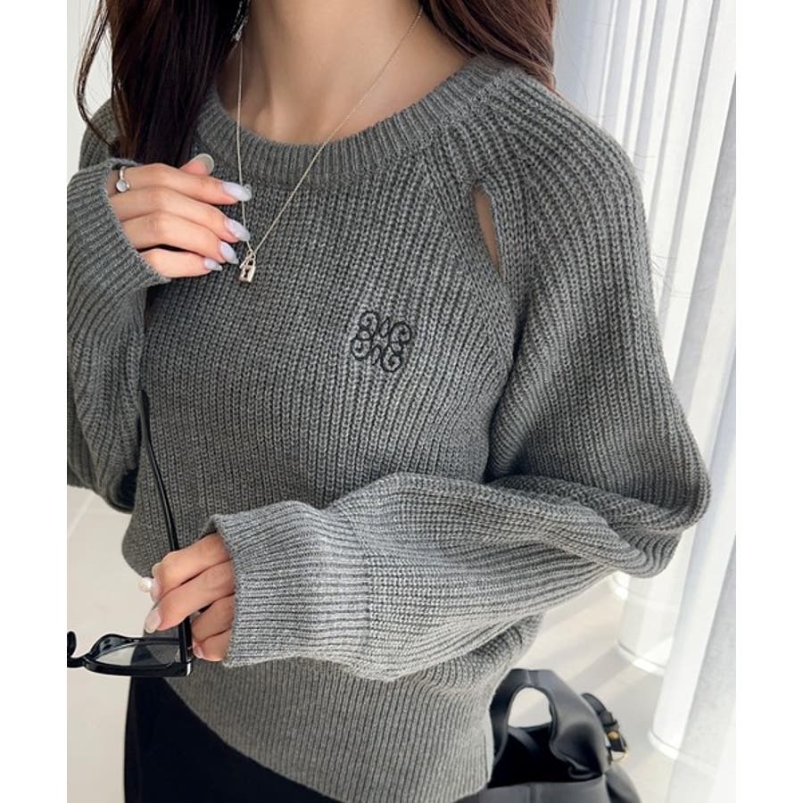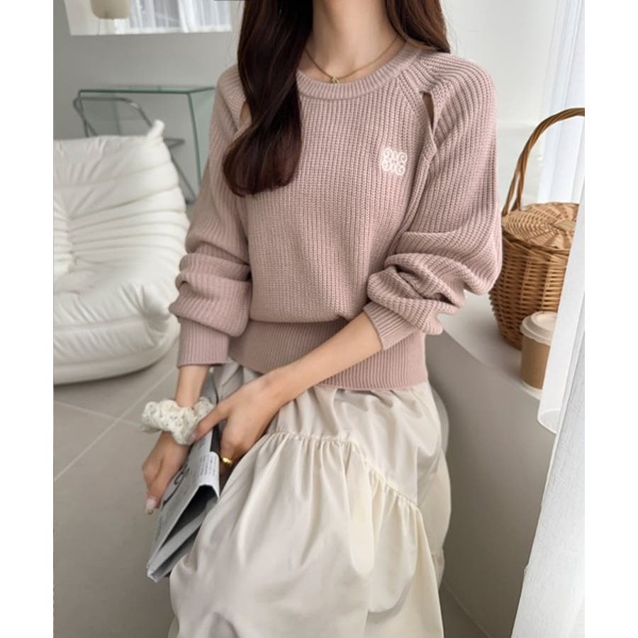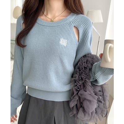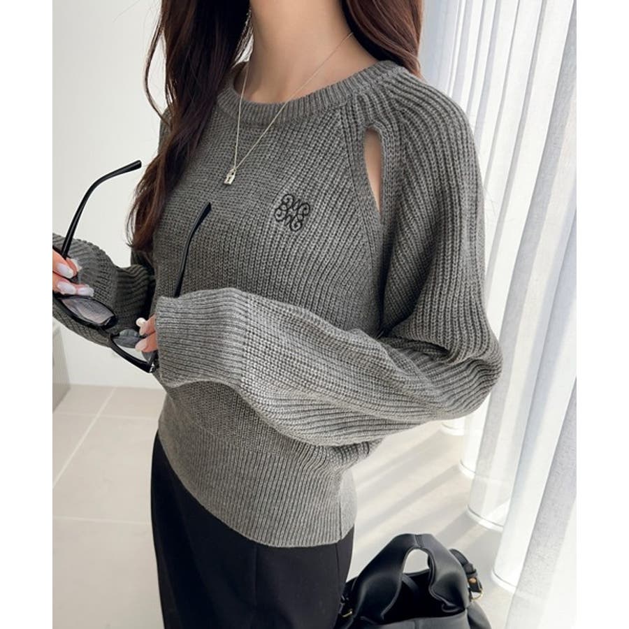 ヘルシーな肌見せで抜け感をプラス。肩スリット胸刺ニットプルオーバー