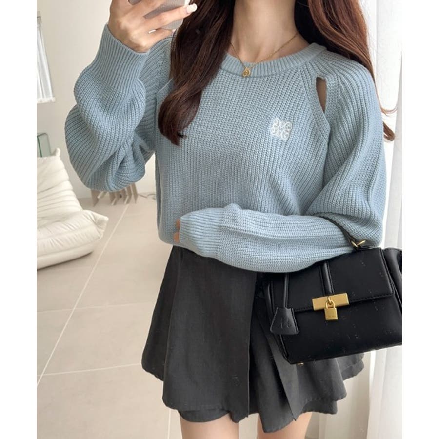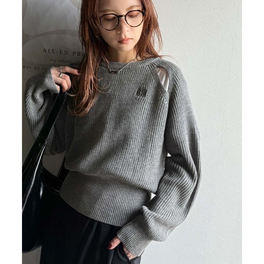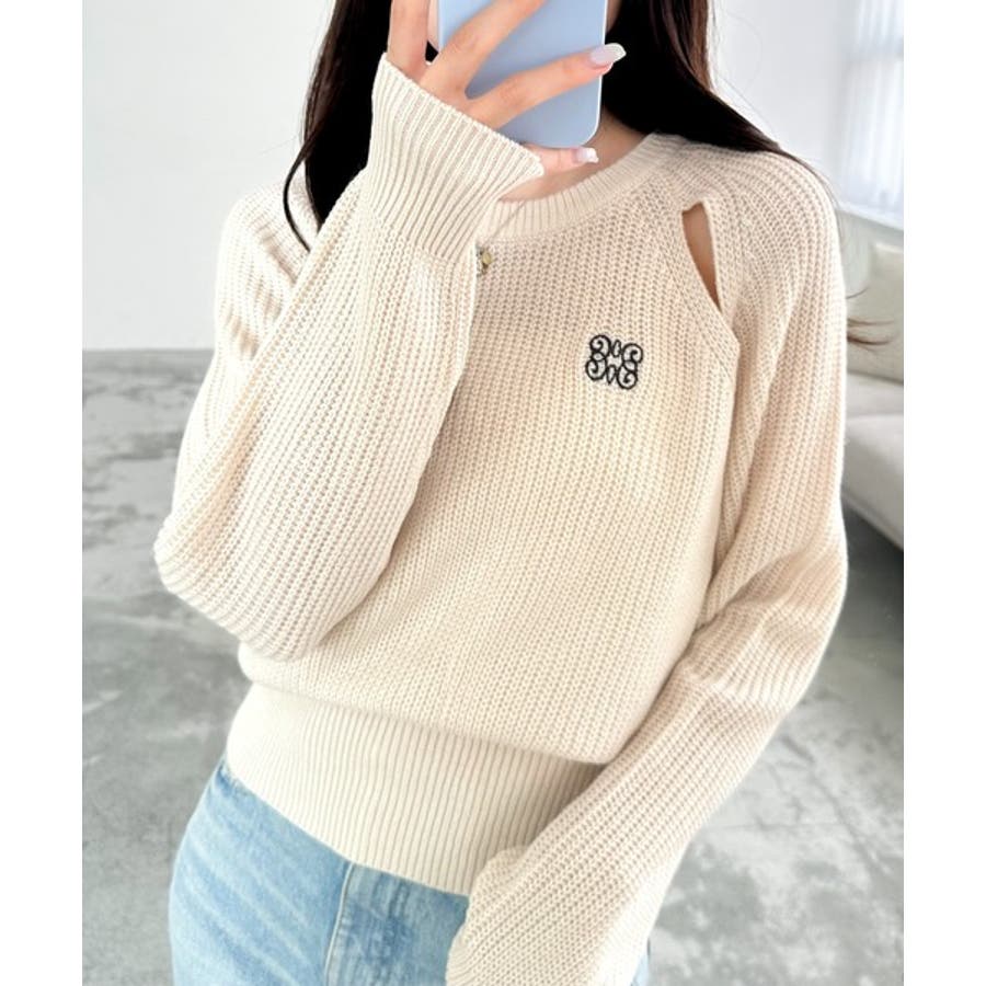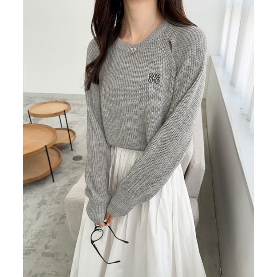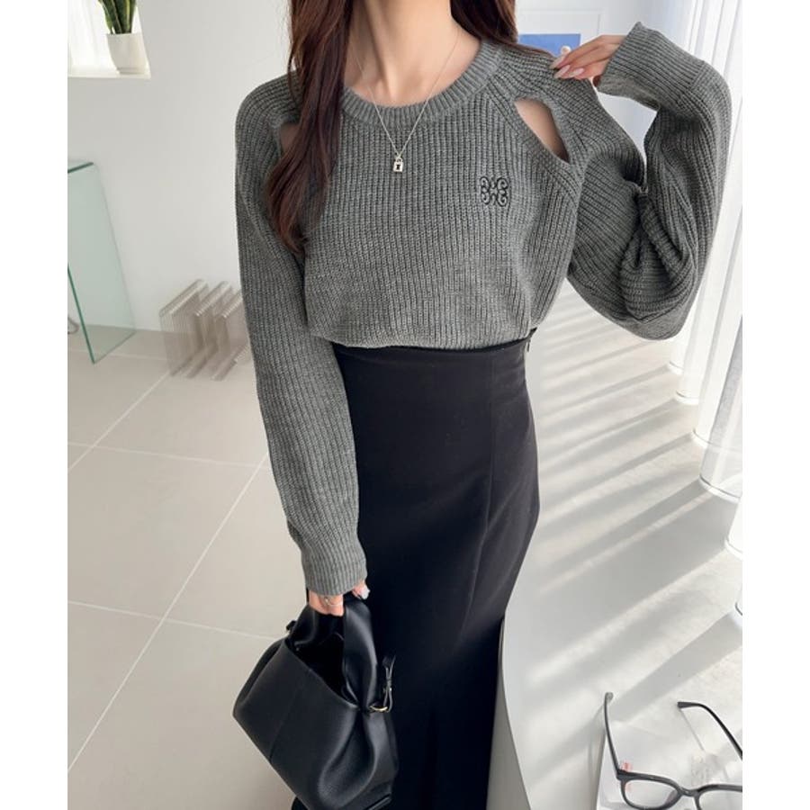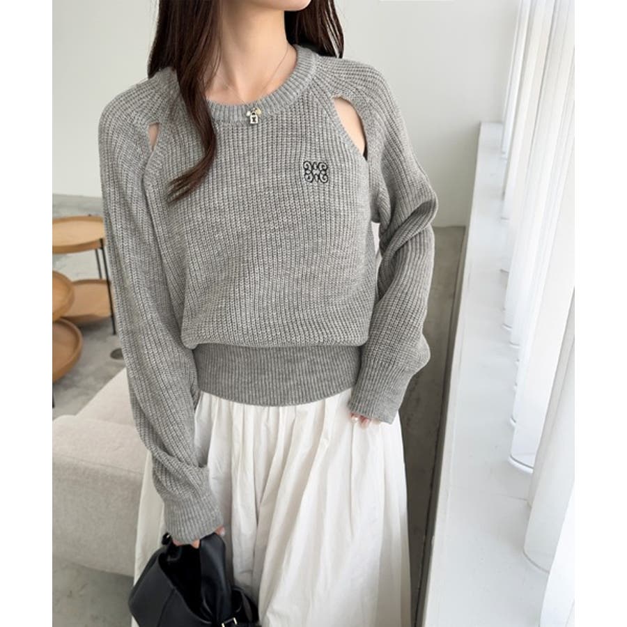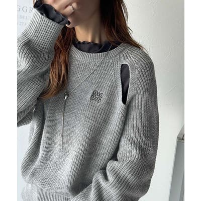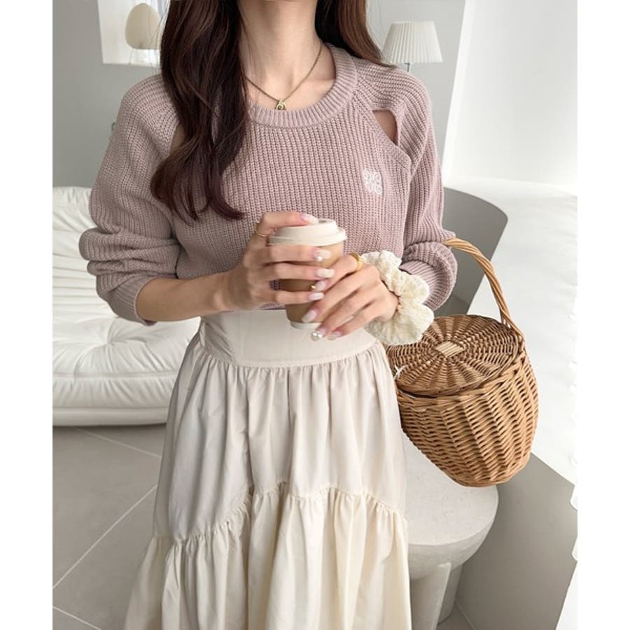 ヘルシーな肌見せで抜け感をプラス。肩スリット胸刺ニットプルオーバー