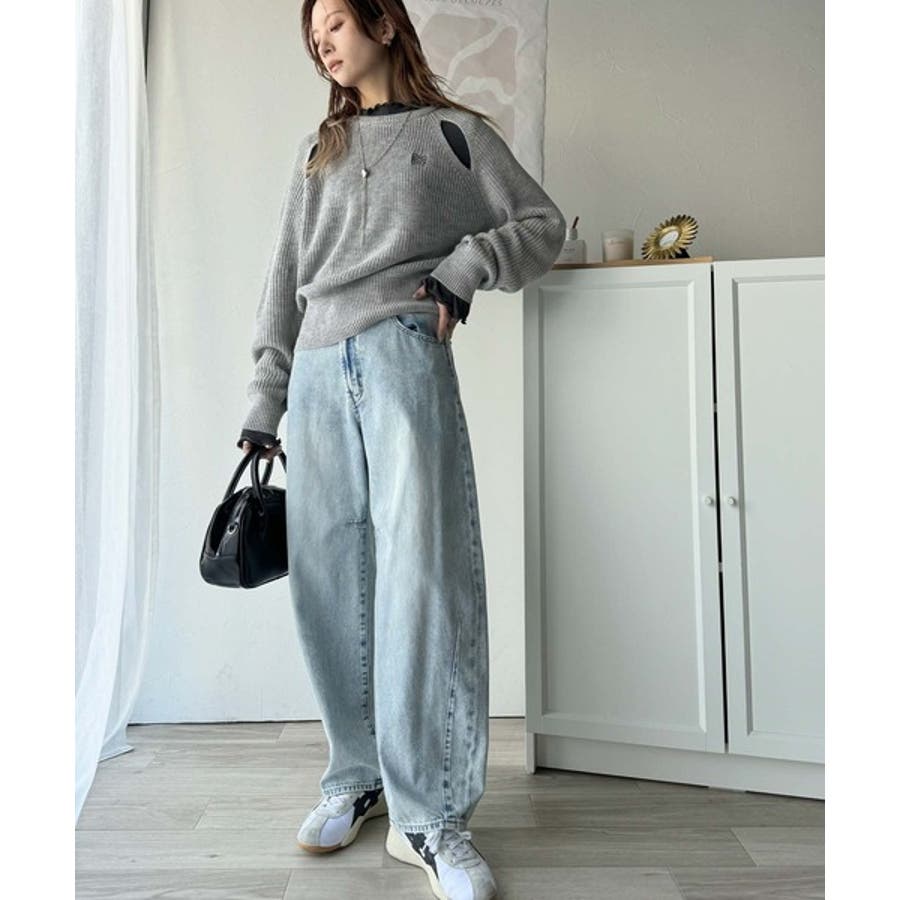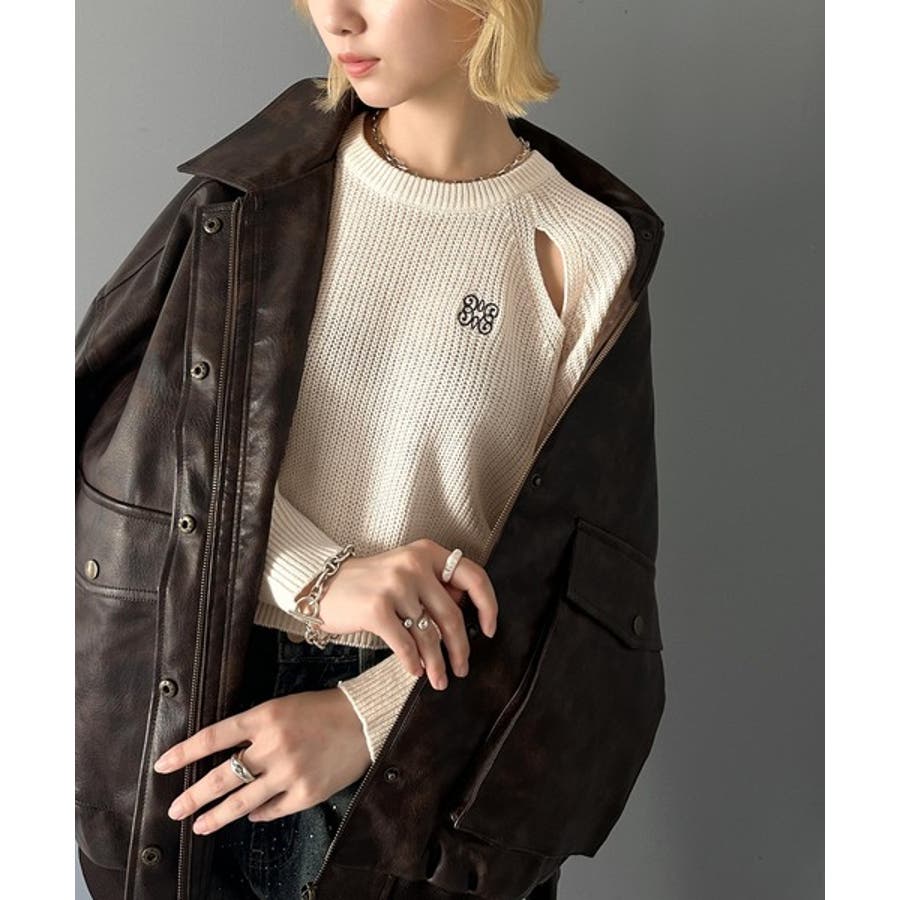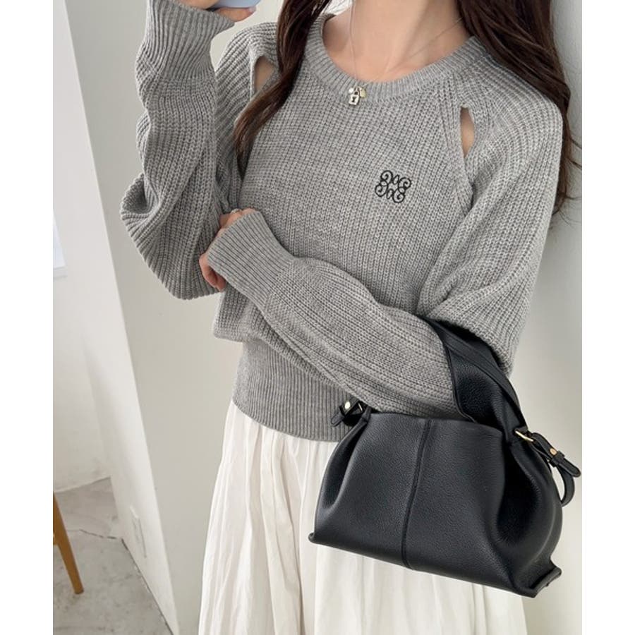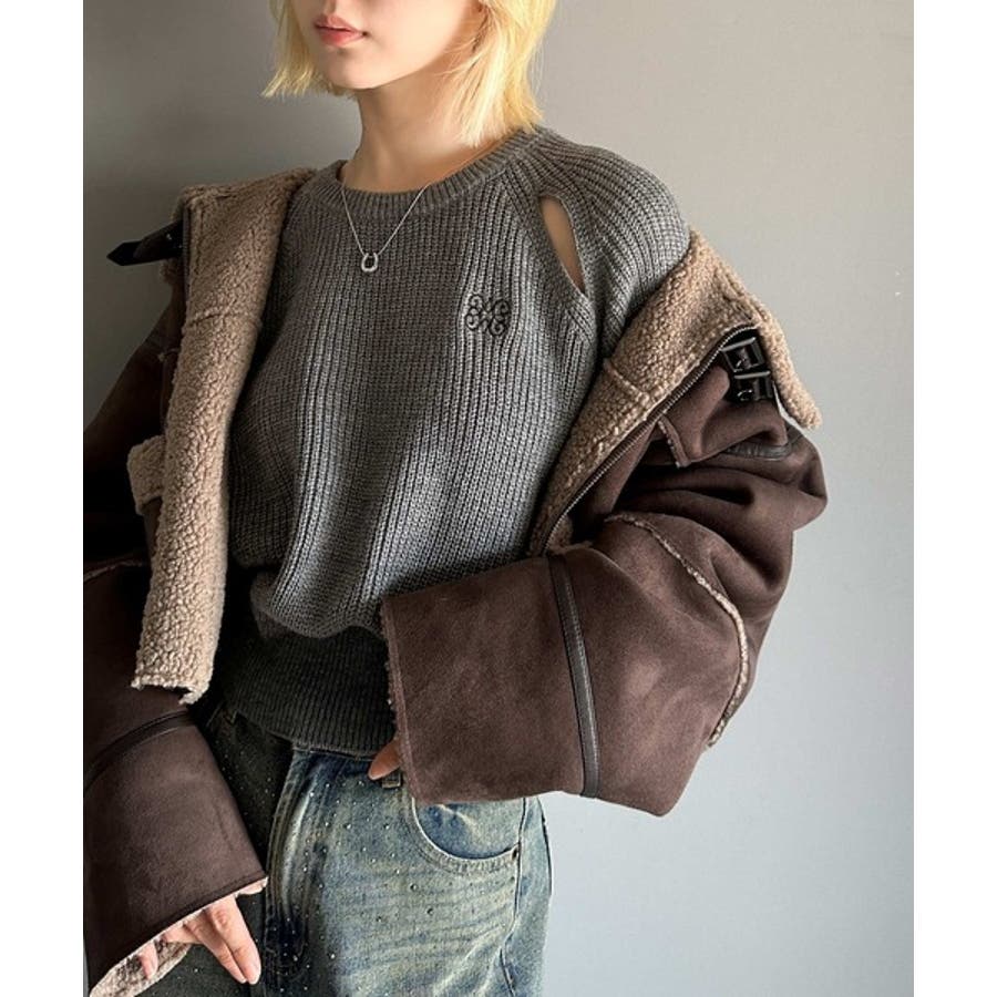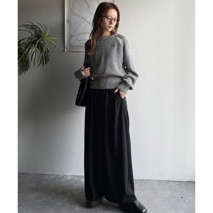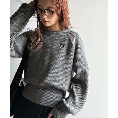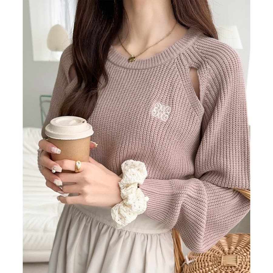 ヘルシーな肌見せで抜け感をプラス。肩スリット胸刺ニットプルオーバー