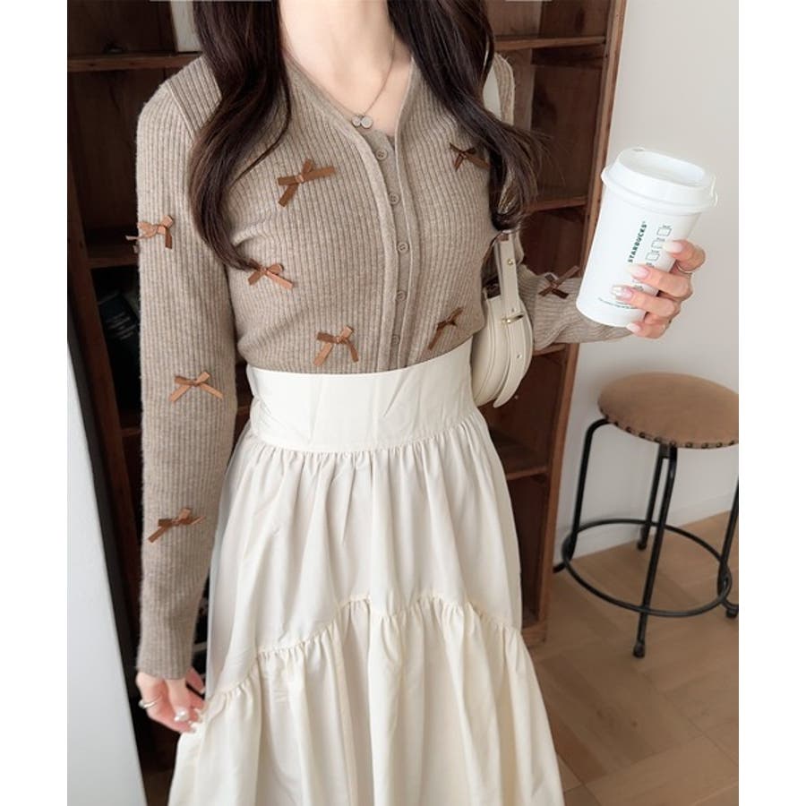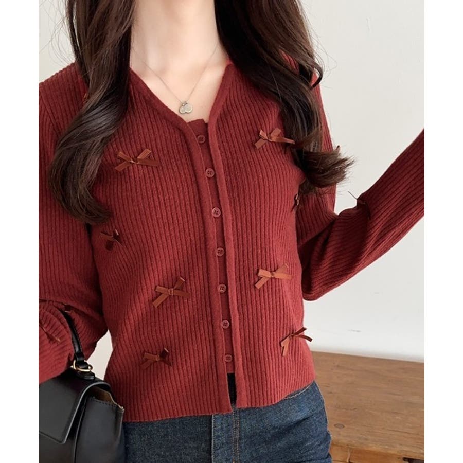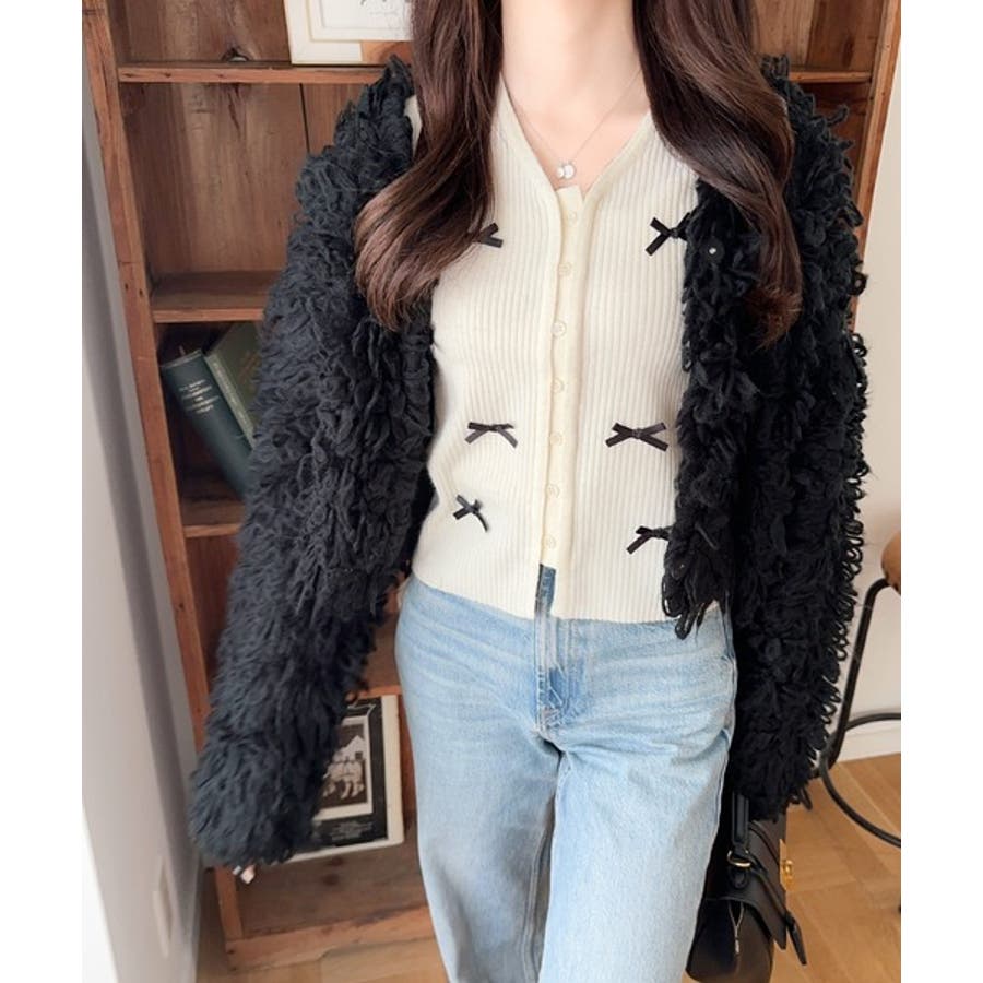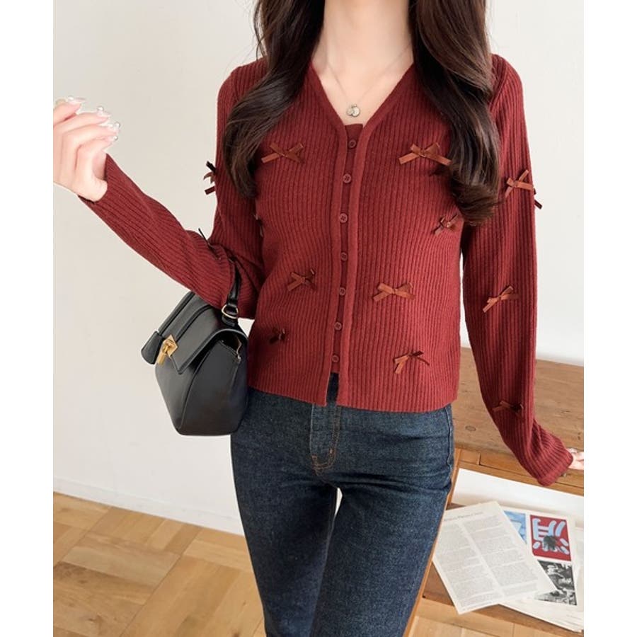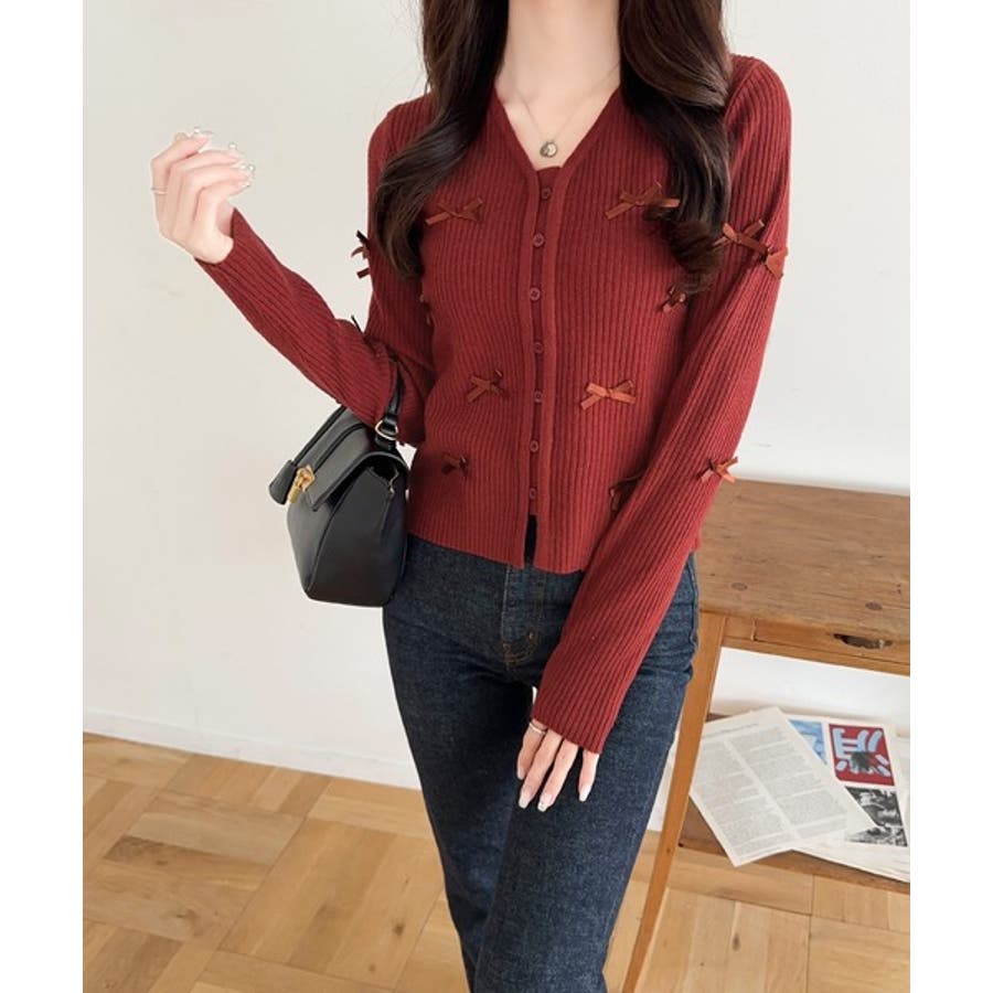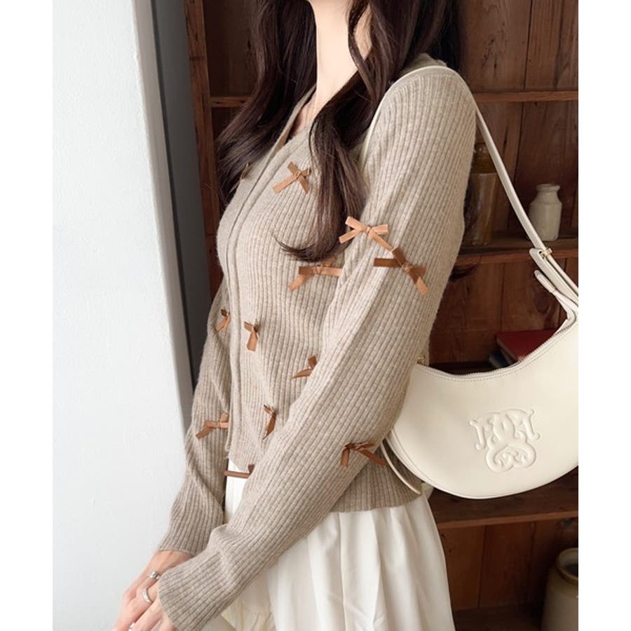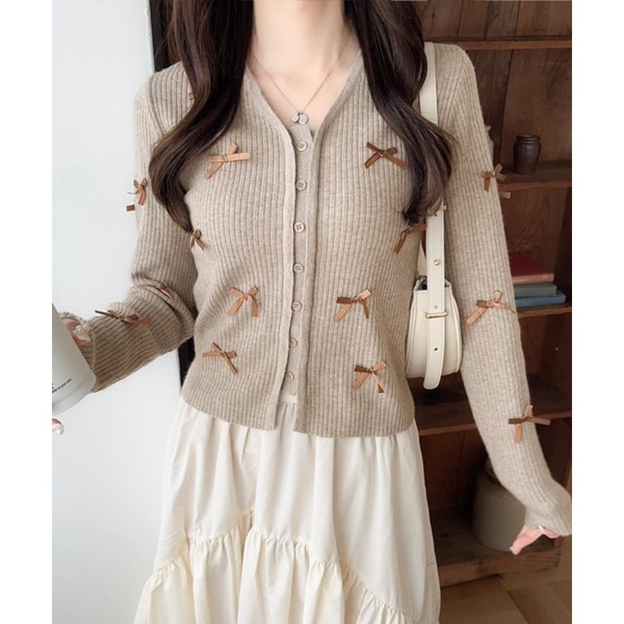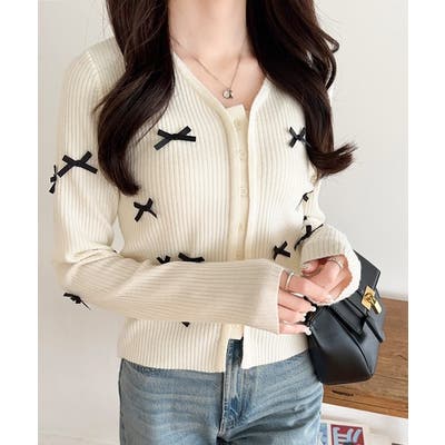 【mily bilet】程よい甘さで大人フェミニン。リボン使いVネックカーディガ…