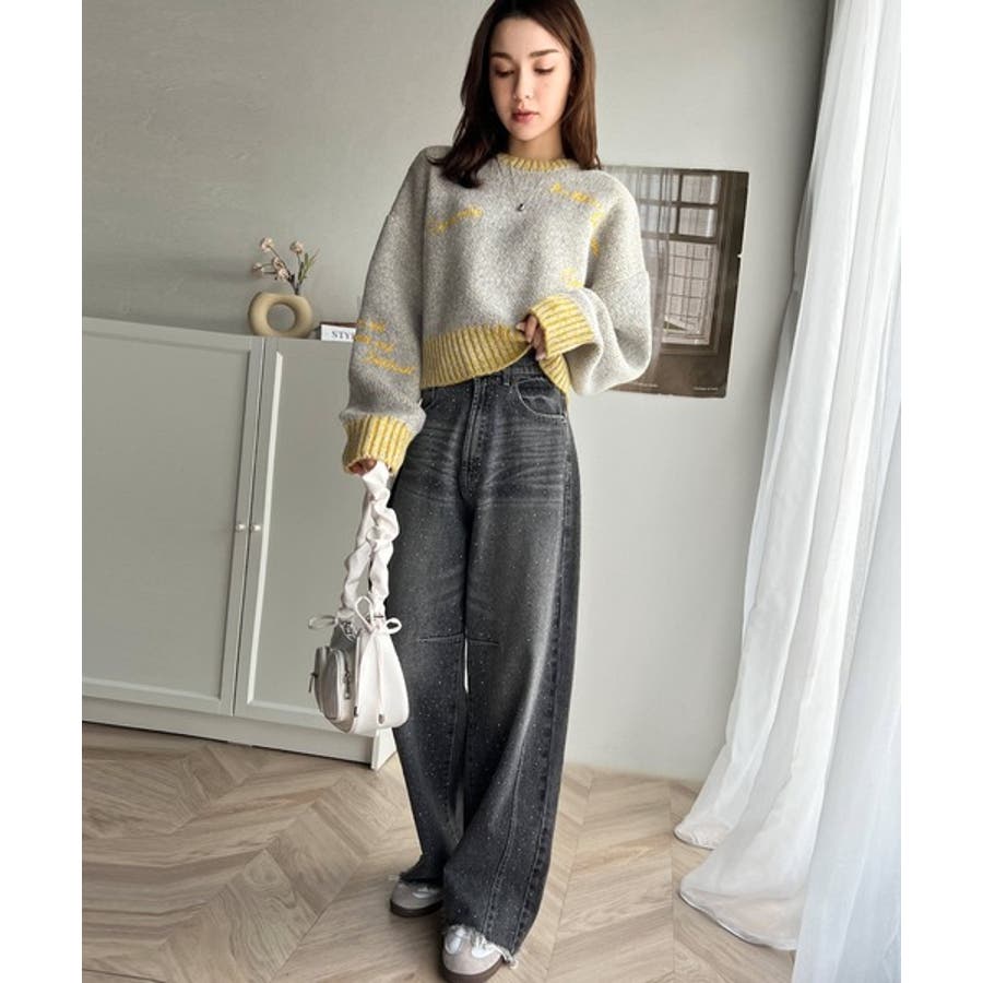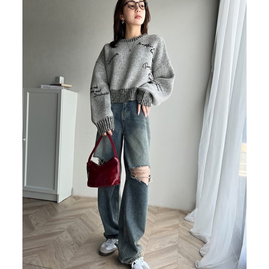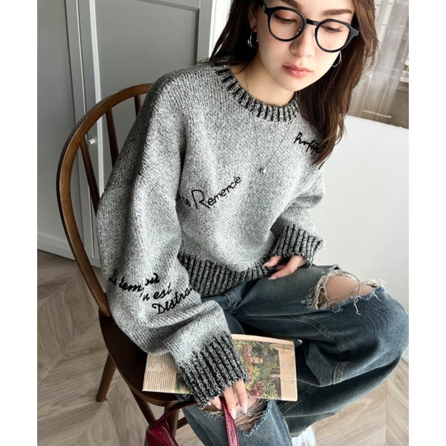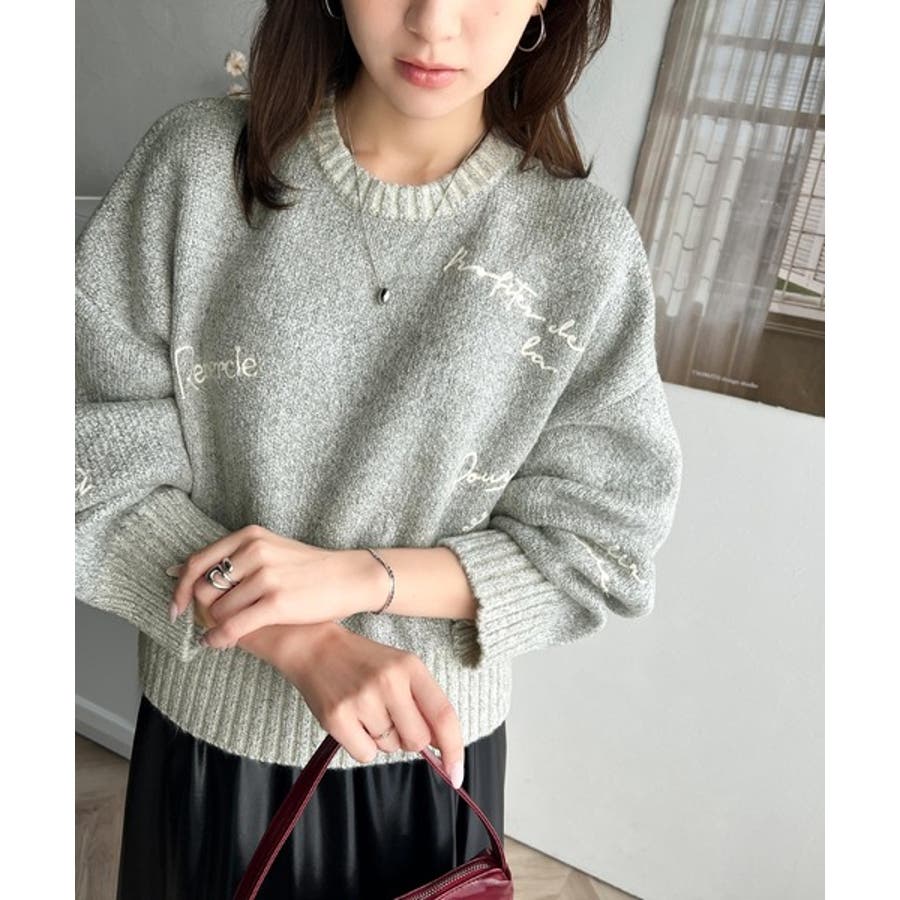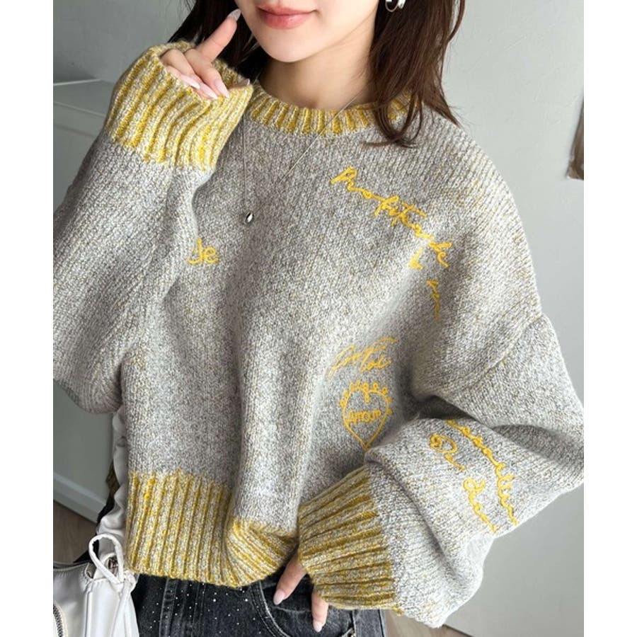 大人の個性派ニット。ランダム刺繍クロップドニットプルオーバー