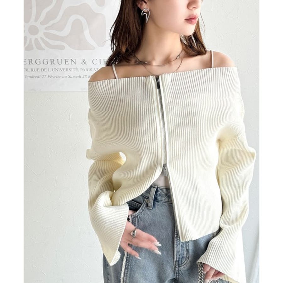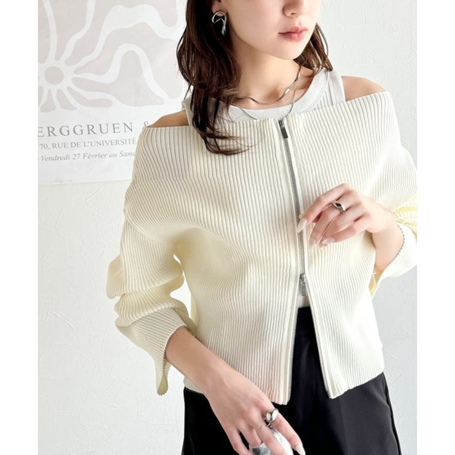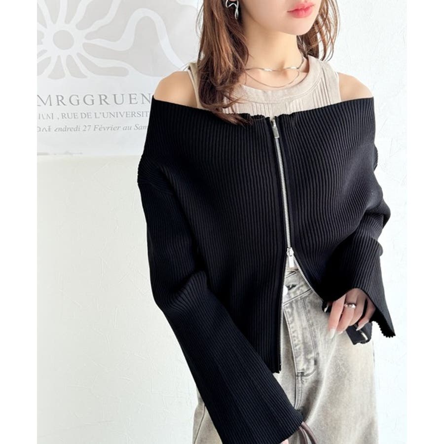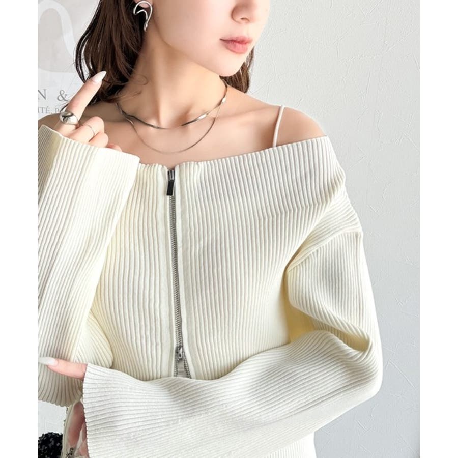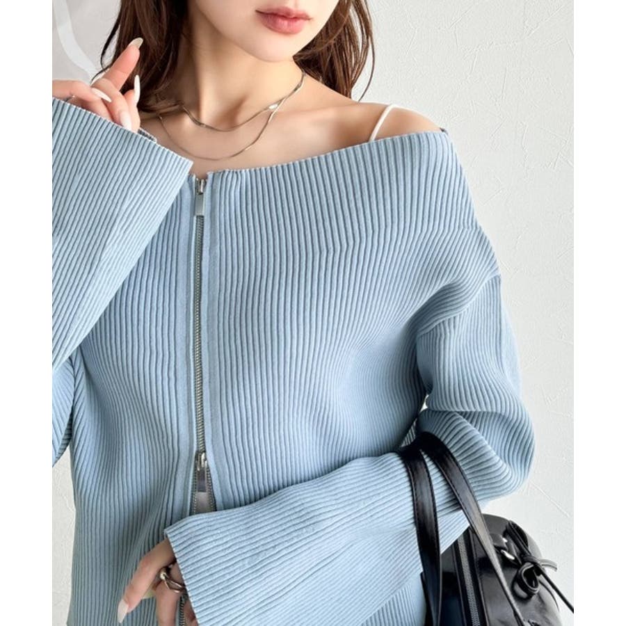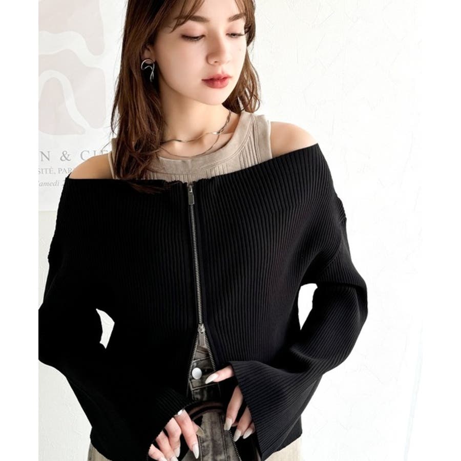 オフショル2WAYダブルジップニットカーディガンは、