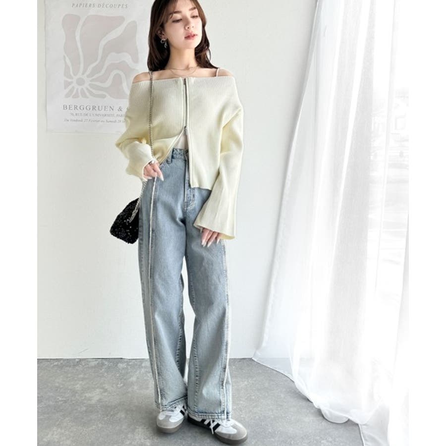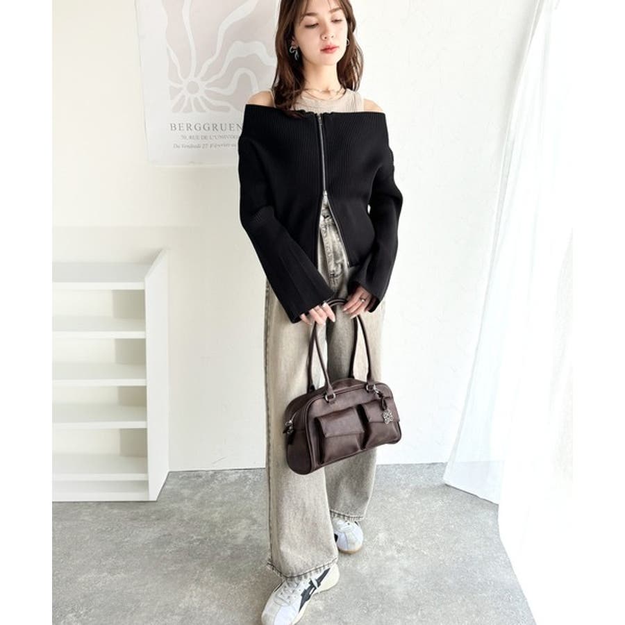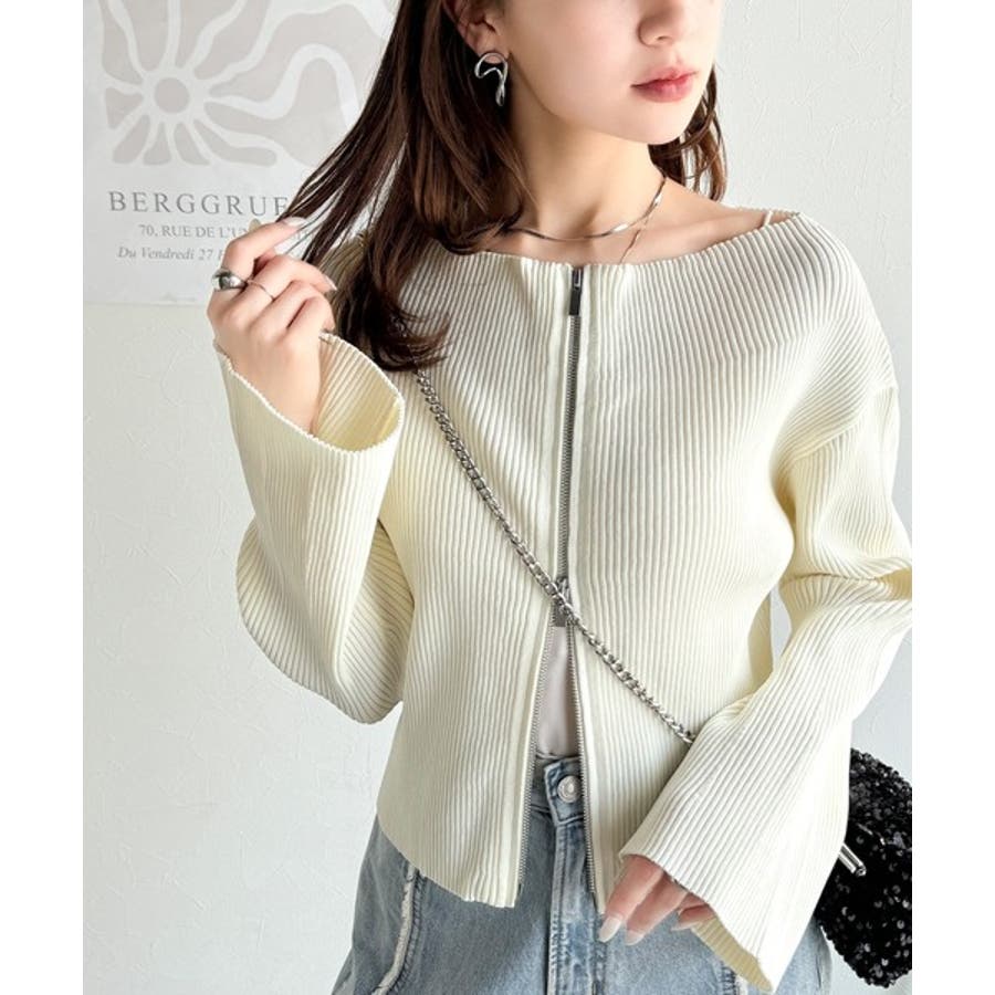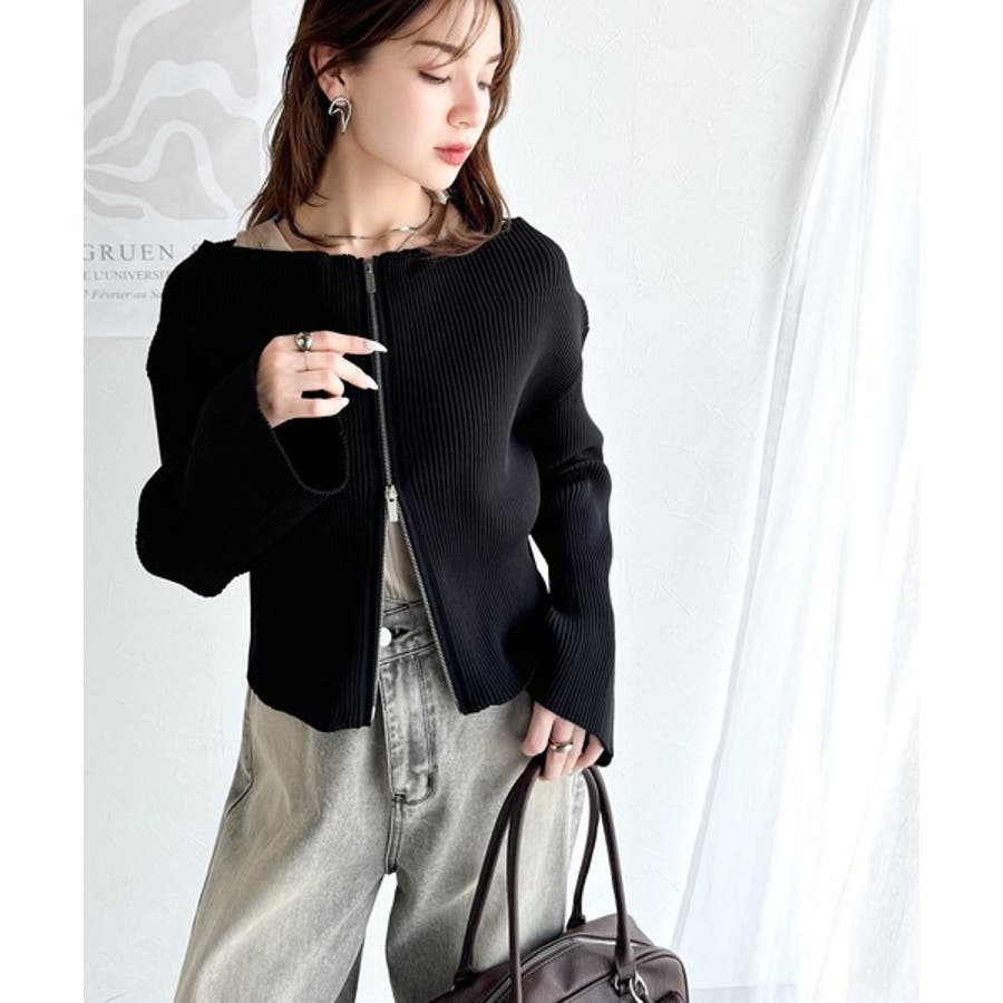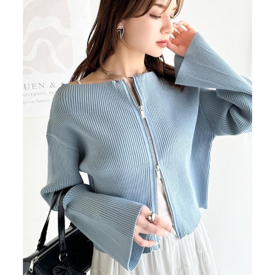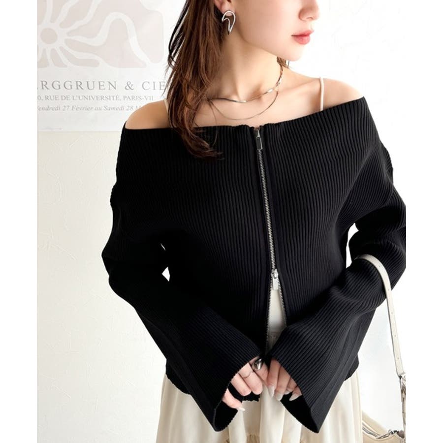 オフショル2WAYダブルジップニットカーディガンは、