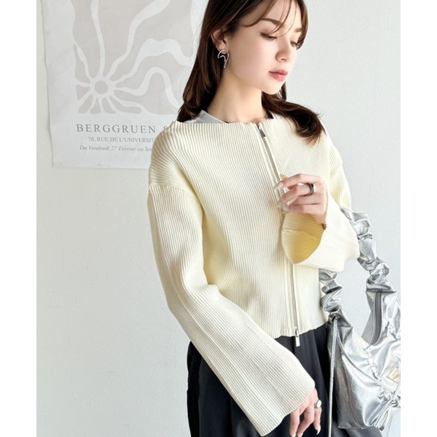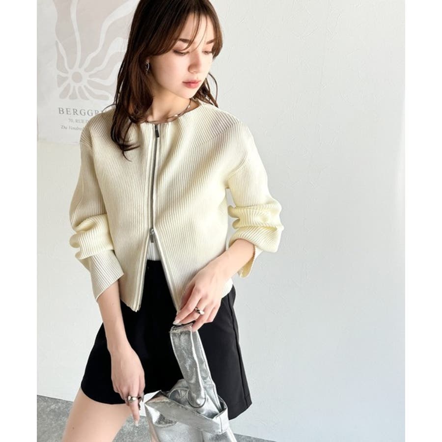 コンパクトなショート丈のダブルジップニットカーディガン。