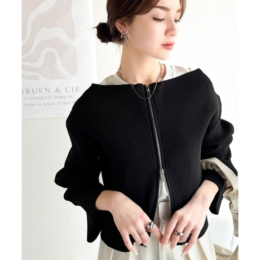 【mily bilet】大人の愛されカーデ。オフショル2WAYダブルジップニット…