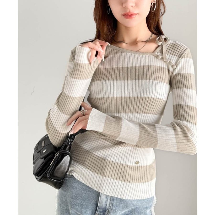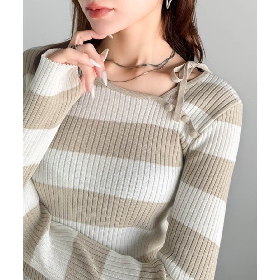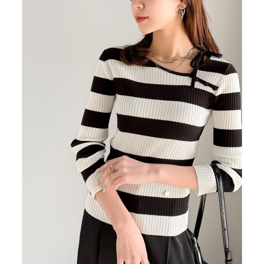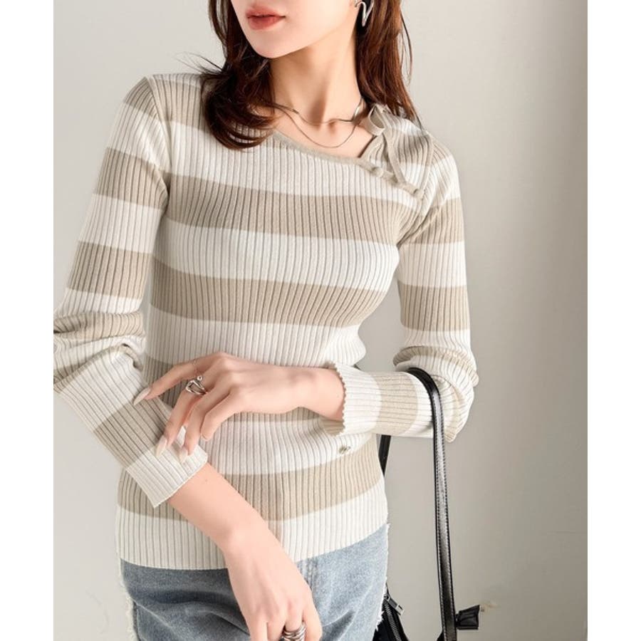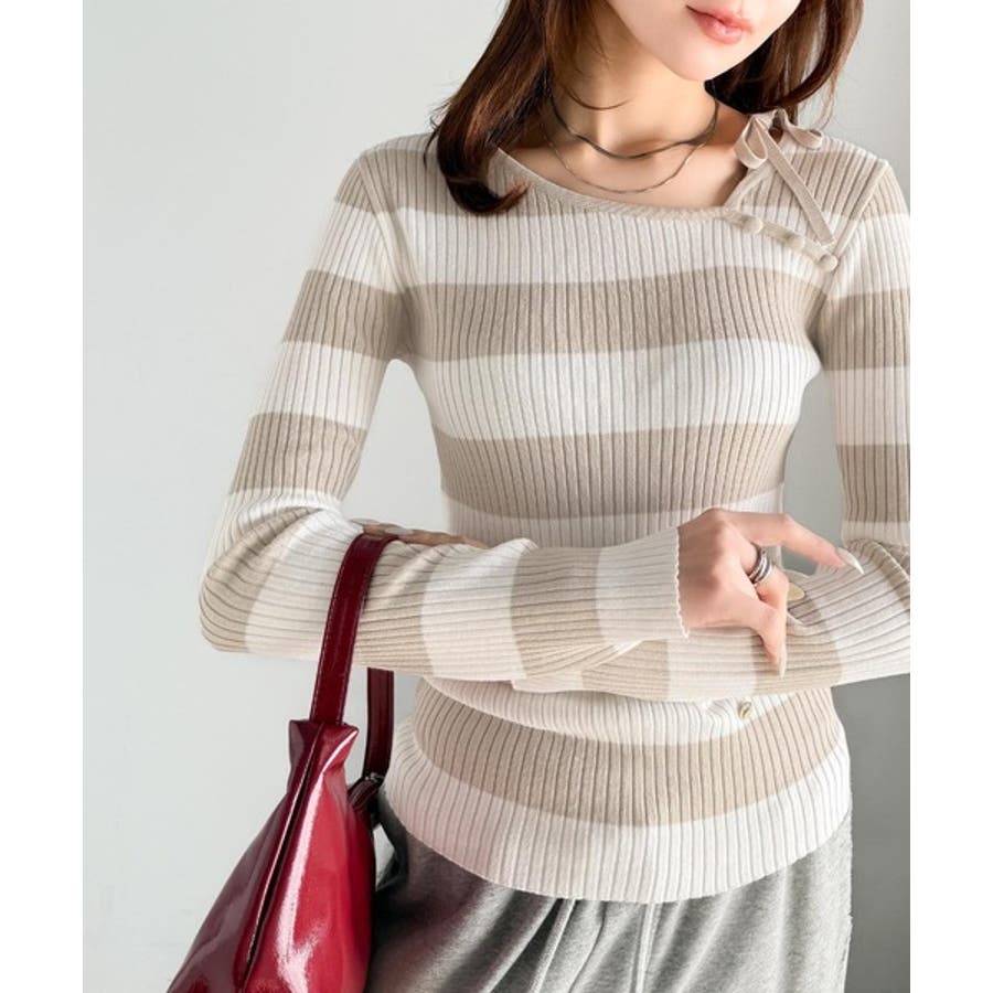 くるみボタンボーダーリブニットは、