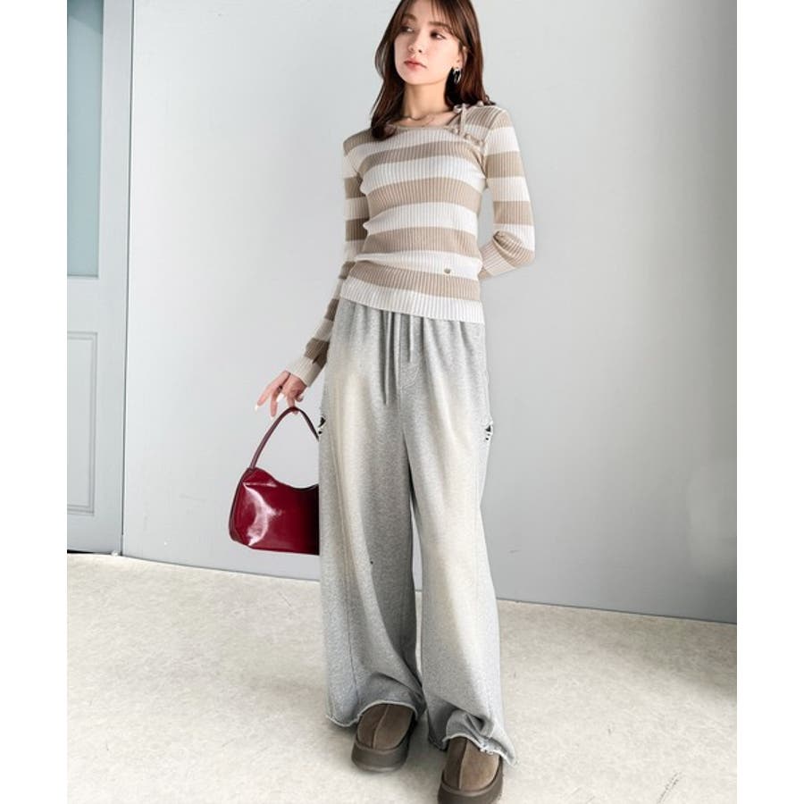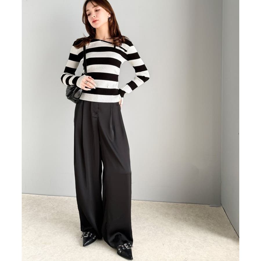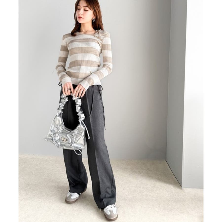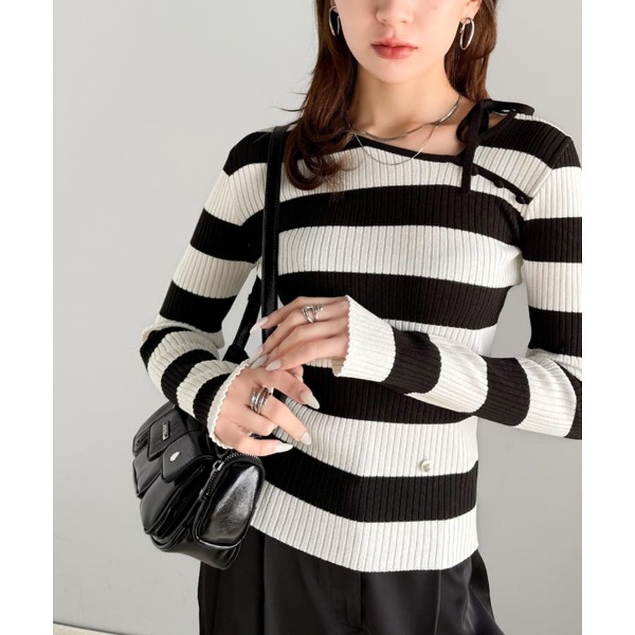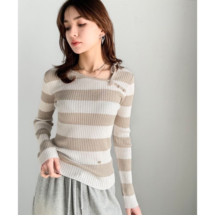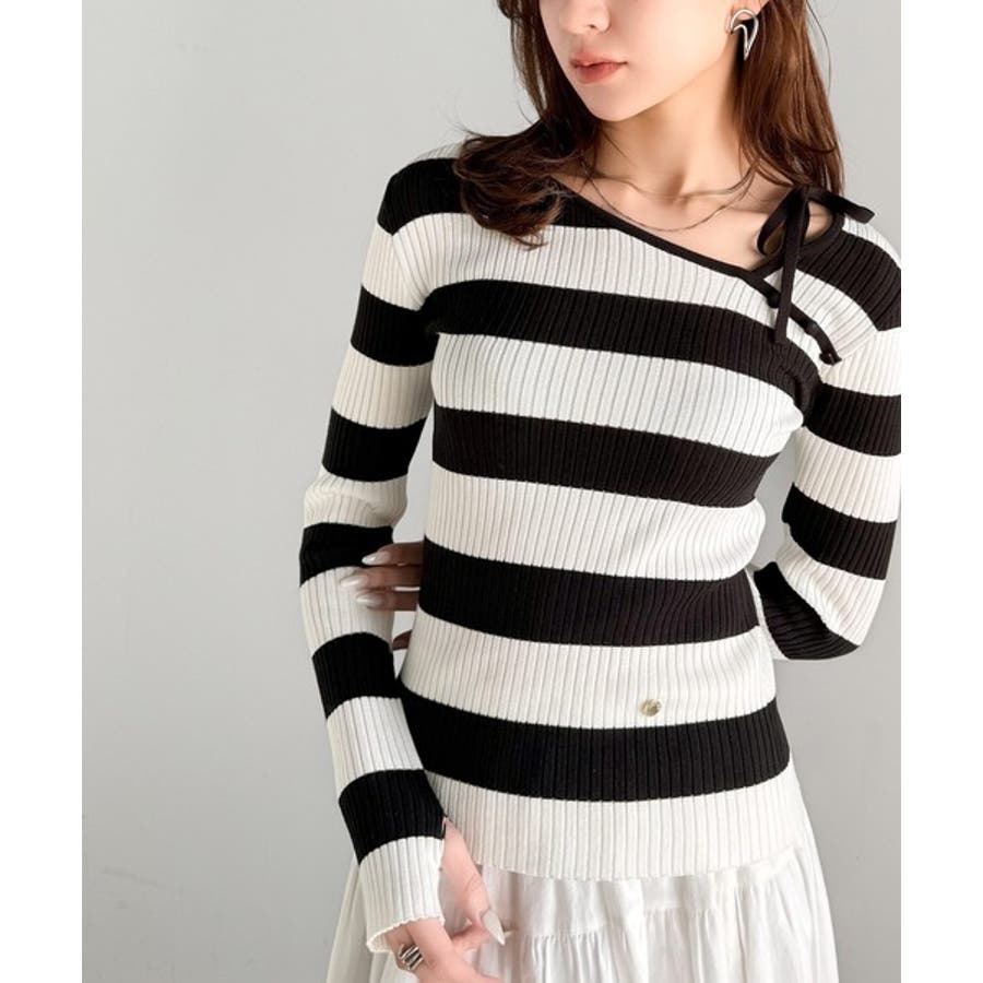くるみボタンボーダーリブニットは、